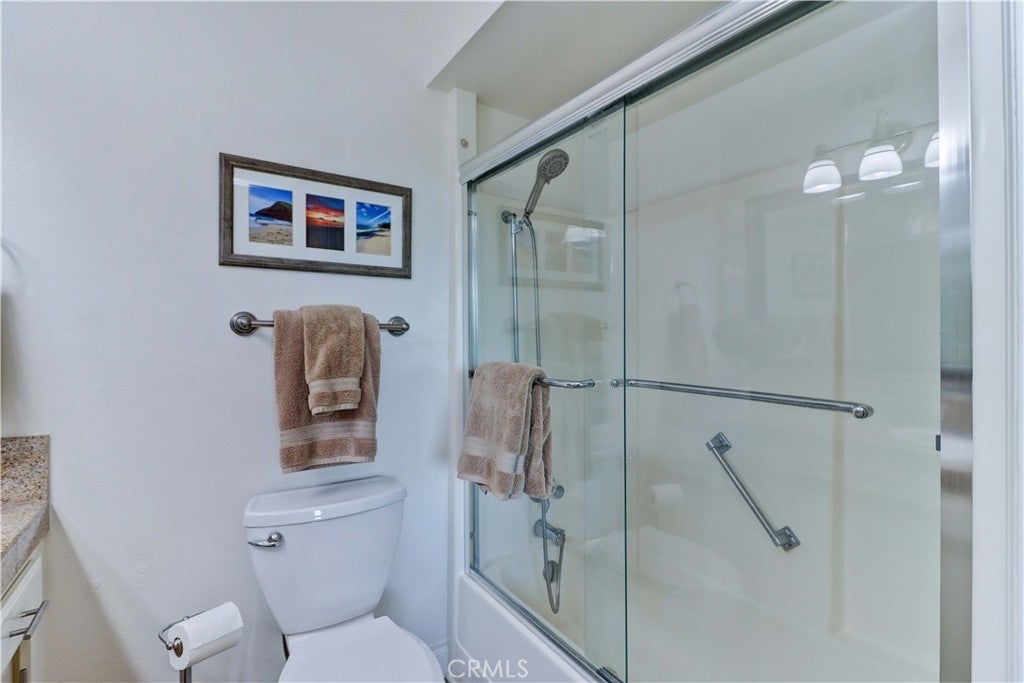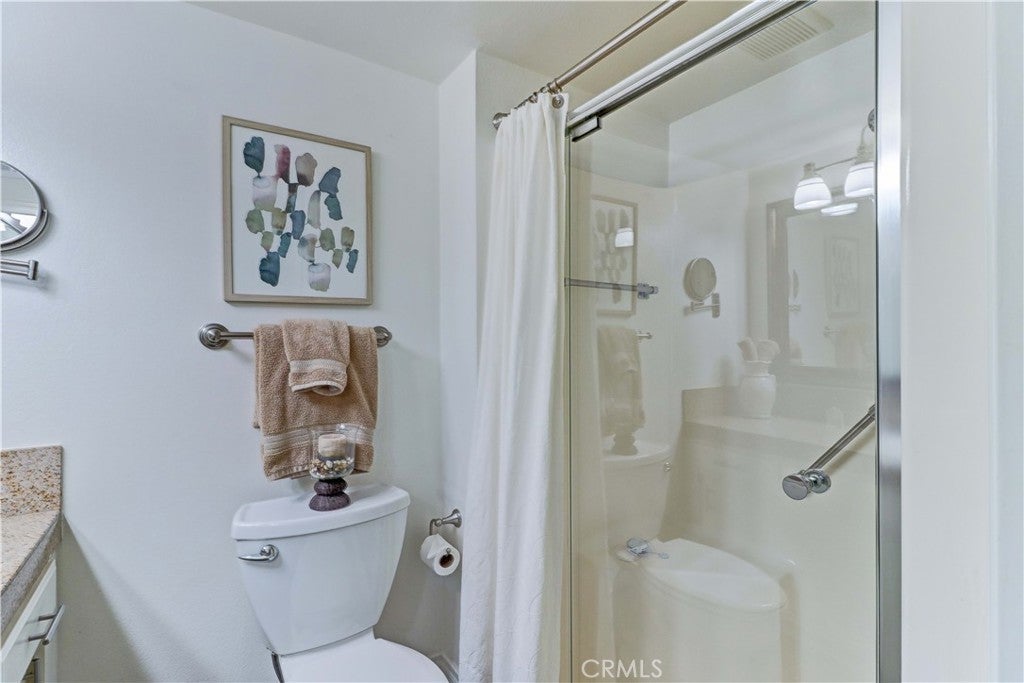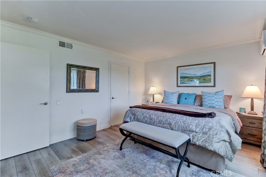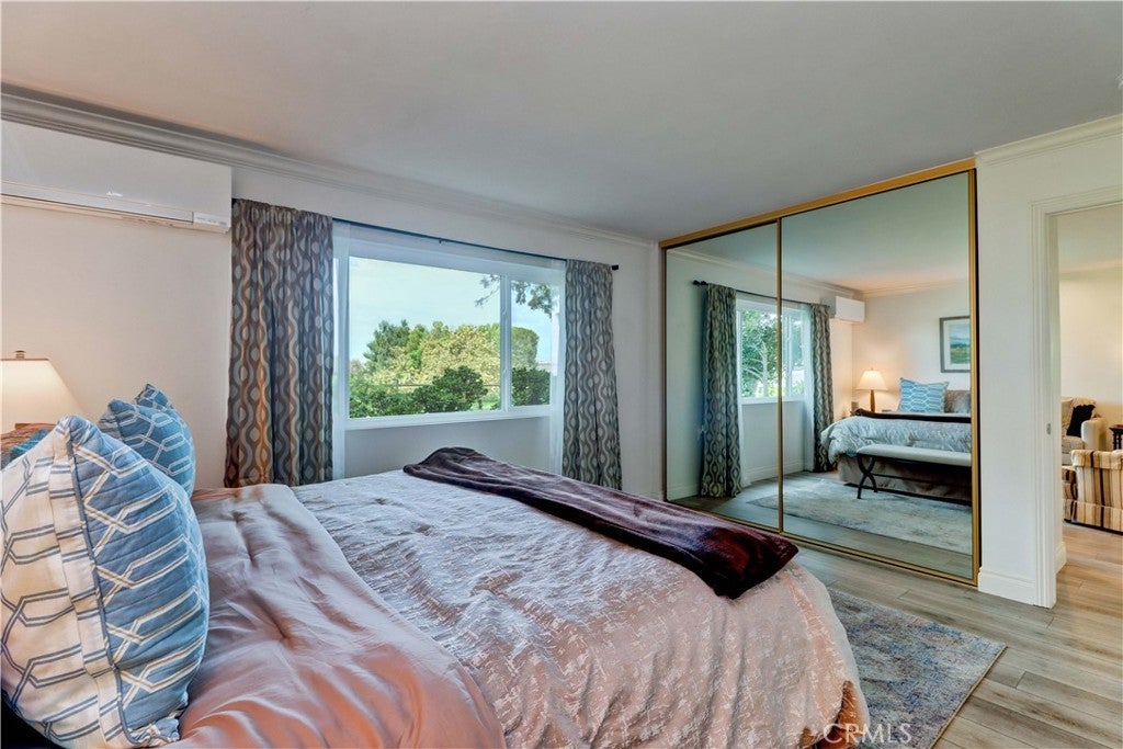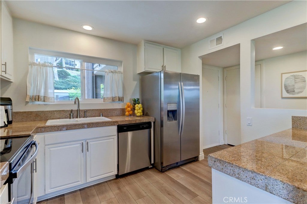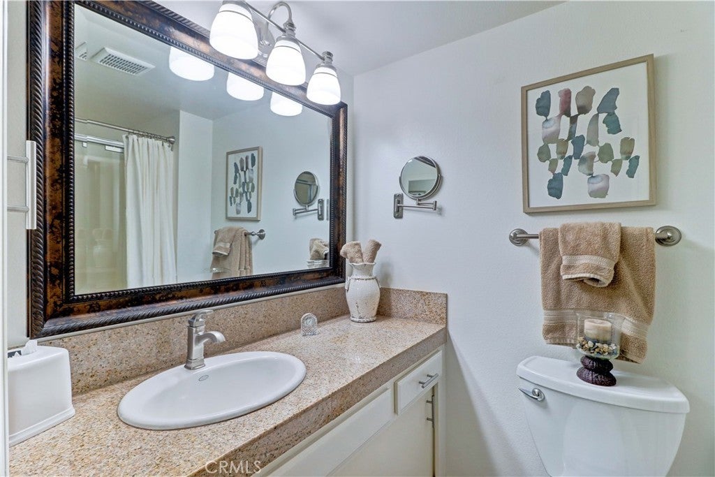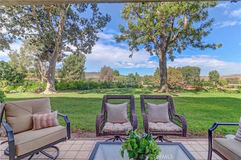 AMAZING VIEW! Ground level updated, end unit condo with bluff-top mountain view + peek-a-boo view of city lights and orange balloon! Check out the Matterport walk-through tour that includes interior and exterior areas. This condo can be purchased furnished for a truly move-in ready home! Located on a private cul-de-sac with just one building, very close to Clubhouse 6, and carport right in front. Airy and bright floorplan featuring dual pane windows/slider, mini split central zoned HVAC, vinyl plank flooring and smooth ceilings. Walk right in a be wowed by the natural beauty through every window! Updated and opened kitchen features granite tile countertops, recessed lights, stainless appliances and lovely window over the kitchen for morning sun. Great room area enjoys recessed lights, crown molding, mini-split, extra window plus sliding doors leading out to the mostly covered patio - gorgeous views and nice sized greenbelt area for your pets or grandkids to play. Primary bedroom is on the view side and brightened with mirrored closet doors, large window and finished off with crown molding. This room has its own mini-split for comfortable sleeping temperature and en suite bathroom housing glass enclosed tub/shower, nice sized granite topped vanity and updated fixtures. Guest bathroom features a walk-in shower with glass door, similar granite-topped vanity and updated bathroom fixtures. Guest bedroom is separated by the 2 bathrooms, has southeast facing window and mirrored closet doors. You'll love this inviting and beautifully upgraded home! Laguna Woods Village residents enjoy a 27-hole championship golf course, a 9-hole executive par 3 course, pickleball and tennis courts, lawn bowling, gyms, clubhouses, swimming pools, horse stables, gardening centers, artist studios, computer workrooms and classes + over 200 clubs and organizations. EXPERIENCE THIS HOME IN THE WALK-THRU VIRTUAL TOUR - CLICK ON THE WHITE CIRCLES TO WALK-THRU, 360 ICON TO GO OUTSIDE AND WALKING PERSON ICON TO COME BACK IN!
