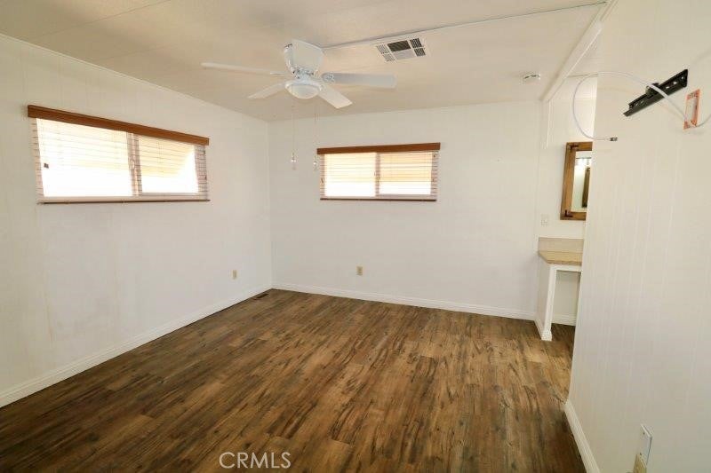 Senior Park Community 55+... What a perfect opportunity to own this bright, spacious 2-bedroom, 2 bath home with a GREAT LOCATION on the perimeter of the community! We begin our tour of this lovely home with the spacious living room dining room combination that features a fireplace that will remain with the home. This room also has plantation shutters on all the windows to bring in that nice bright sunshine. Looking past the living room, we see the large dining room with built-in cabinet with lighting. As we start down the hall, you will have the separate laundry to the right along with an updated/remodeled guest bathroom. Are you looking for that soaker tub? This tub is for you! The den is off the kitchen with access to that great sunroom. This room would make a great craft room, office or entertaining space. Just past the den area we see the lovely guest bedroom with its own access to that updated guest bath. We enter the large master suite with 2 large, mirrored closets, great dressing area with a vanity. The primary has its own bathroom with updated features. This home has newer double pane windows, copper plumbing, newer furnace and A/C unit, ceiling fans, recessed lighting and new laminate flooring throughout. Homes in this move-in ready condition are not lasting long on the market at this price! Look no further, come and see it today!