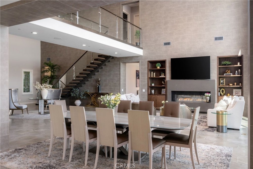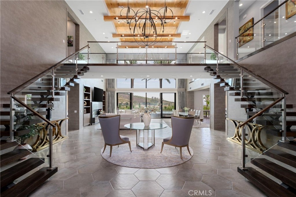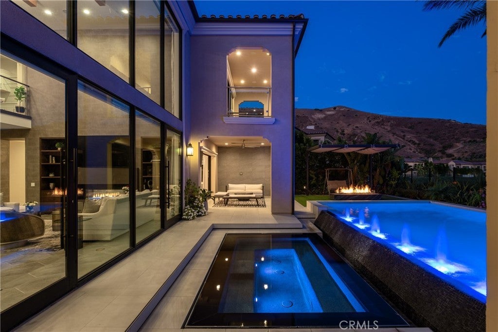 Nestled in the prestigious guard-gated enclave of Alta Vista within Orchard Hills, this masterfully designed 6,288-square-foot estate is a rare blend of Northern Italian elegance and contemporary resort-style luxury. Appointed with millions in designer upgrades, this residence embodies sophistication at every turn—from its grand chandelier entry to its meticulously curated interior finishes. Step inside the soaring grand entry with floor-to-ceiling glass and seamless indoor-outdoor transitions that define upscale California living. The heart of the home is a true chef’s dream: a state-of-the-art kitchen featuring a Wolf appliance suite, a spacious butler’s pantry, and a fully equipped prep kitchen. An entry-level mother-in-law suite with built-in kitchenette and separate entrance offers the ideal private retreat for guests or extended family. Entertain effortlessly in expansive living spaces, highlighted by a custom illuminated built-in bar and dedicated entertaining area, before stepping outside to a completely custom-built backyard oasis. Outside, discover a private resort-like sanctuary featuring a designer pool with tranquil water features, a sleek outdoor kitchen, a stylish lounging area, and a stunning fire pit—offering dramatic ambiance and refined luxury. Enjoy breathtaking views of avocado orchard–lined hillsides, providing a sense of serenity, privacy, and connection to nature. Every element of the estate is designed to deliver comfort, elegance, and effortless entertaining. Additional features include a private bar area, a 4-car garage, spa-inspired bathrooms, en suite bedrooms, full smart home integration and multiple bonus rooms. Beyond the home, Orchard Hills offers residents an elevated lifestyle: Gated privacy and 24-hour security for peace of mind. Resort-inspired recreation with sparkling pools, spas, and family-friendly parks. Preserved open space and scenic tranquility throughout the neighborhood. Miles of nearby biking and hiking trails for active outdoor living, barbecue areas, tennis and basketball courts. Private community clubhouses and elegant gathering spaces. Convenient access to world-class shopping, dining, and entertainment. Simply, this one-of-a-kind residence in Alta Vista at Orchard Hills is not just a home—it’s a lifestyle of refined luxury, resort-caliber comfort, and exceptional community living.