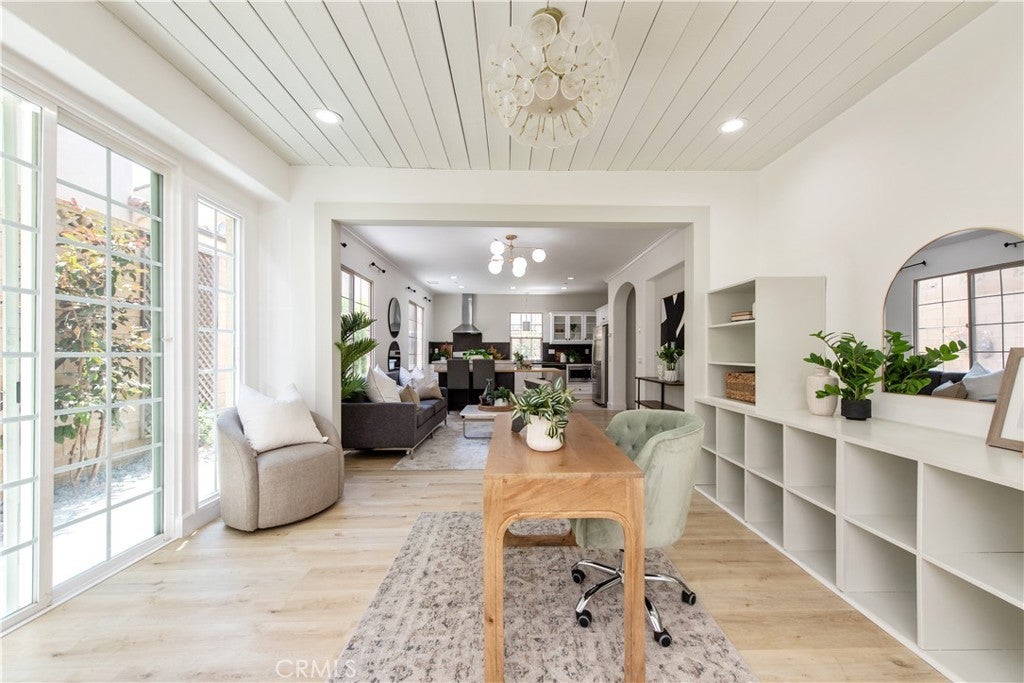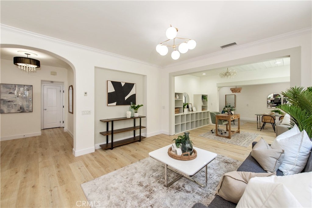 Welcome to 7 Nature, a charming 1,800 SF (inclusive of downstairs expansion), 3-bedroom, 2.5-bathroom DETACHED condo with NO COMMON WALLS in Irvine's highly desirable Woodbury community. This beautiful home features a fully customized and redesigned open-concept layout with wood flooring throughout, seamlessly connecting the living and dining areas perfect for entertaining. The gourmet kitchen is equipped with modern appliances, including a freezer, microwave, range/oven, and trash compactor. Upstairs, three well-appointed bedrooms provide ample space, with the master suite offering an en-suite bathroom for added privacy. Central air conditioning and forced-air heating ensure year-round comfort. The attached garage accommodates one vehicle, with additional parking available within the community. Residents enjoy access to Woodbury's resort-style amenities, including parks, pools, and recreational facilities, all within walking distance. Located in the award-winning Irvine Unified School District, this home is just steps from Woodbury Elementary School. Nearby shopping centers, dining options, and easy access to major highways make this an unbeatable location. Experience the perfect blend of convenience, style, and community at 7 Nature. Buyer to verify additional square footage.