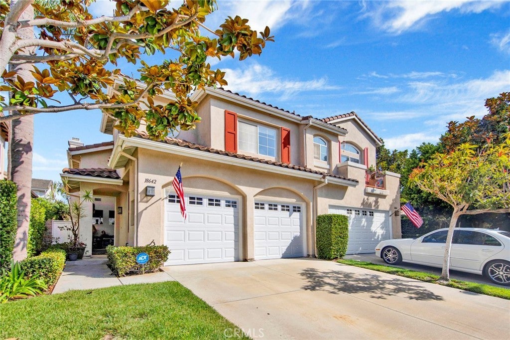 Welcome to 18642 Park Glen Ln, situated in the highly desirable gated community of Greystone Keys in Huntington Beach. Tucked away on a quiet cul-de-sac, this well-maintained home offers 3 bedrooms, 2.5 bathrooms, and 1,778 sq. ft. of living space, along with an attached 2-car garage. The inviting interior is filled with natural light and features vaulted ceilings, a comfortable family room with fireplace, and a dedicated dining area. The kitchen provides plenty of cabinet storage, counter space, and a convenient breakfast bar. Upstairs, the spacious primary suite includes its own balcony and a large en-suite bathroom with dual sinks, soaking tub, and separate shower. Two additional bedrooms share a full bath, and a laundry area is conveniently located upstairs. The private backyard patio offers the perfect space for relaxing or entertaining outdoors. One of the best features of this home is its prime location just steps from the resort-style community pool and spa, making it easy to enjoy the very best of Greystone Keys. Ideally located across from Peter Green Park with tennis, basketball, volleyball, playgrounds, and a dog park, this home is also minutes from Trader Joe’s, Five Points Plaza, Pacific City, award-winning schools, and the world-famous Huntington Beach Pier. With low HOA dues and no Mello Roos, this home combines comfort, convenience, and coastal living in one of Huntington Beach’s most sought-after gated neighborhoods.