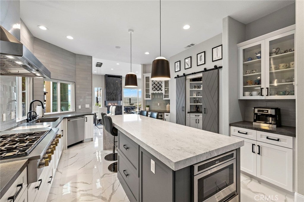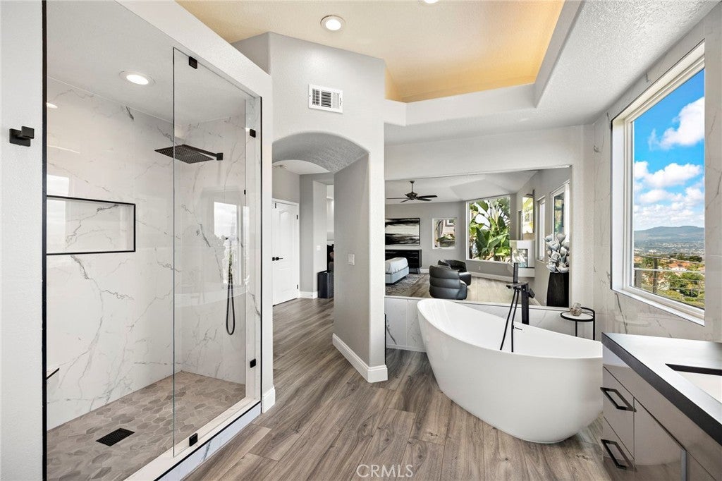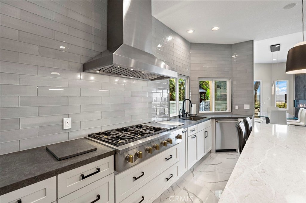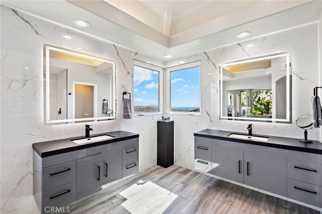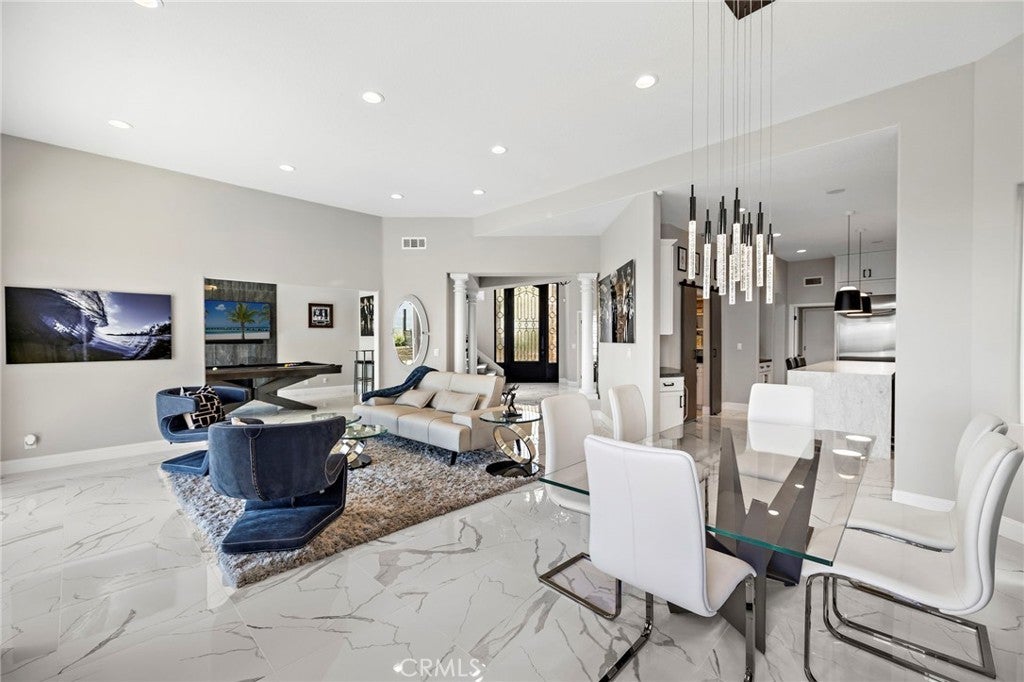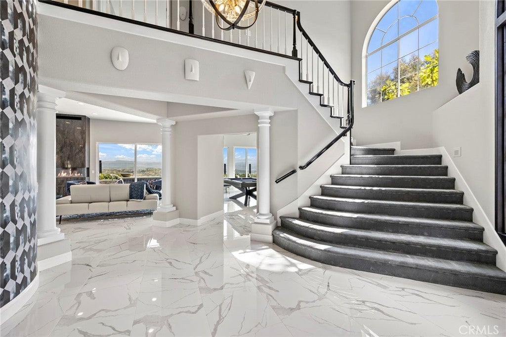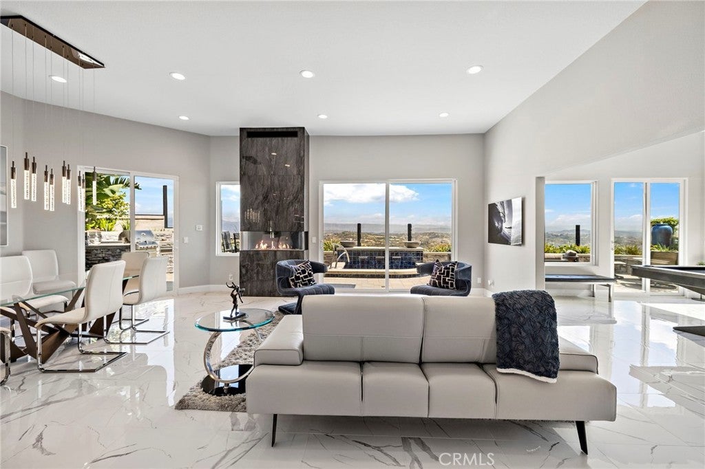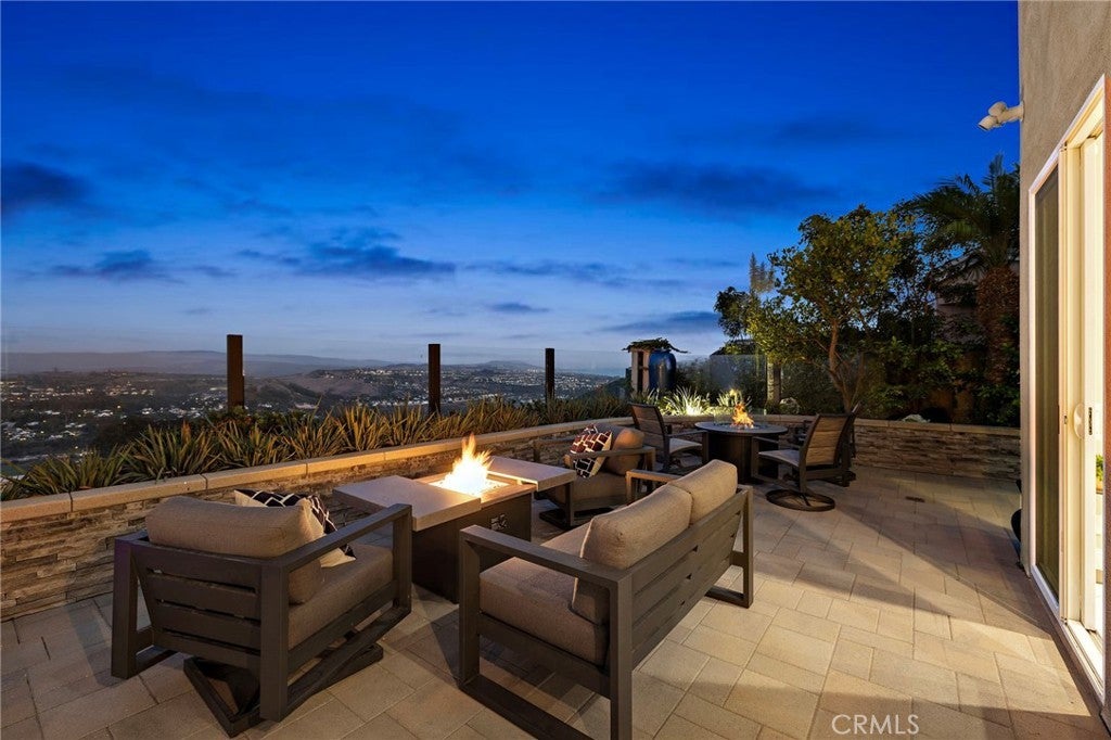 Experience coastal California living at its finest. Welcome to this highly remodeled, state-of-the-art smart home showcasing over $600,000 in high-end upgrades and offering unparalleled 180° views that stretch from the Pacific Ocean to the mountains and twinkling city lights below. Nestled in one of Laguna Niguel’s most prestigious communities, this stunning residence blends modern elegance with effortless indoor-outdoor living. Enter through the massive, custom, wrought iron front door with smart keyless entry, & be greeted by a grand, foyer featuring soaring ceilings, polished porcelain flooring, & a sweeping staircase that immediately sets the tone for the home’s elevated design & craftsmanship. Open concept with expansive windows that fill the home with natural light while framing breathtaking panoramic vistas from nearly every room. The chef-inspired kitchen is a true showpiece, boasting a massive waterfall island, custom cabinetry, professional-grade stainless steel appliances, and elegant pendant lighting. Seamlessly connected to the sophisticated dining and living areas, this space invites both relaxation and entertainment. The floor-to-ceiling tiled fireplace adds warmth and contemporary style, while the additional fireplace in the family room/game room provides another cozy gathering spot for family and friends. Upstairs, the luxurious primary suite offers a private retreat like no other, complete with jaw-dropping panoramic views, a sitting area with a modern, linear fireplace, a private balcony, & a spa-like bathroom featuring dual vanities, a soaking tub, & a separate glass-enclosed shower. The home also includes a versatile office/bonus room with built-ins, perfect for a dedicated home office, guest suite, or additional bedroom to fit your lifestyle needs. Step outside to your private outdoor oasis, where coastal breezes and endless views set the tone for relaxation and entertaining. Enjoy multiple lounge areas, a fire pit, custom-built BBQ station, LED-lit spa, and elegant fire bowls—all positioned to capture the incredible ocean & city light views that define this exceptional property. This home has been transformed into a state-of-the-art smart home, allowing you to control temperature, lighting, sound, door entry, and security with the touch of a button, offering both convenience and peace of mind. Located just minutes from world-class beaches, dining, shopping, & award-winning schools.