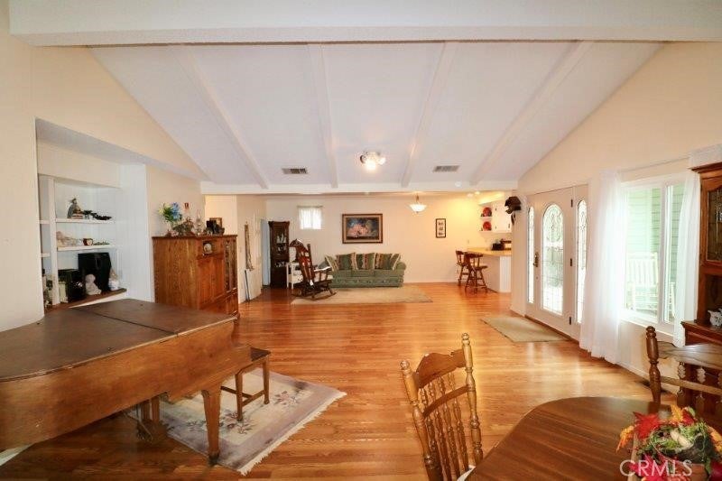 Beamed Ceilings, Built-in Features, Ceiling Fan(s), Cathedral Ceiling(s), Granite Counters, Open Floorplan, Pantry, Recessed Lighting, Bedroom on Main Level, Main Level Primary, Walk-In Closet(s)
