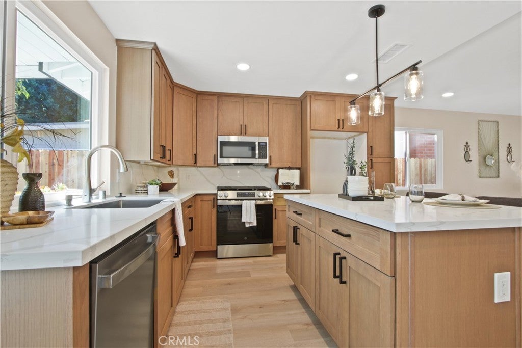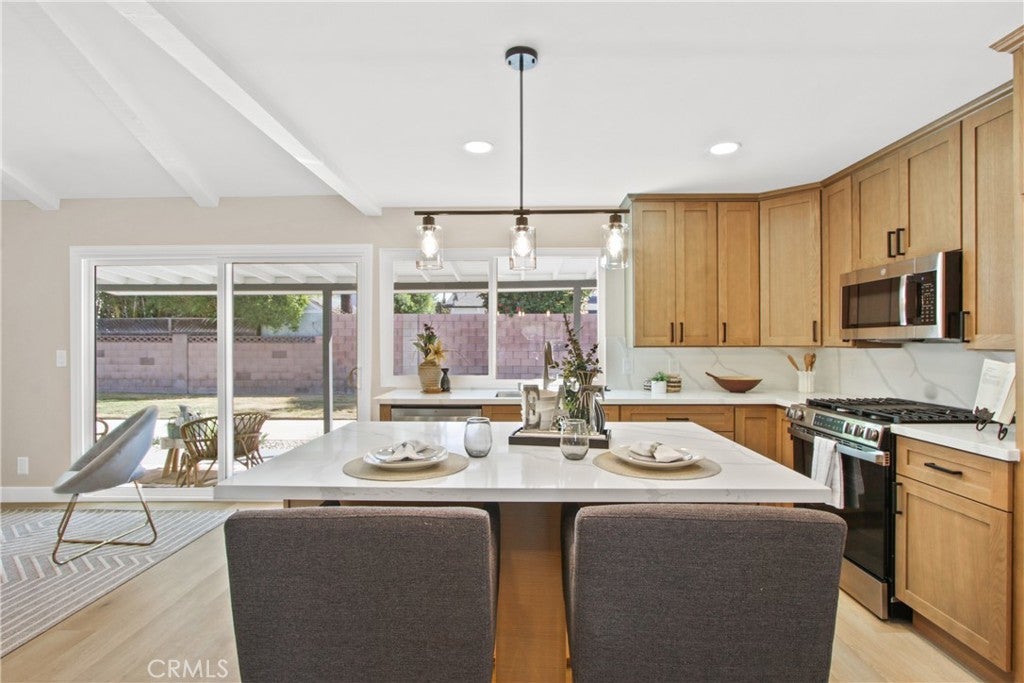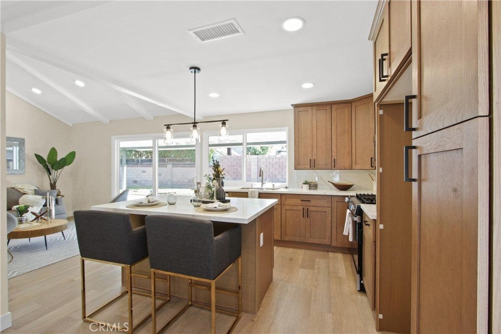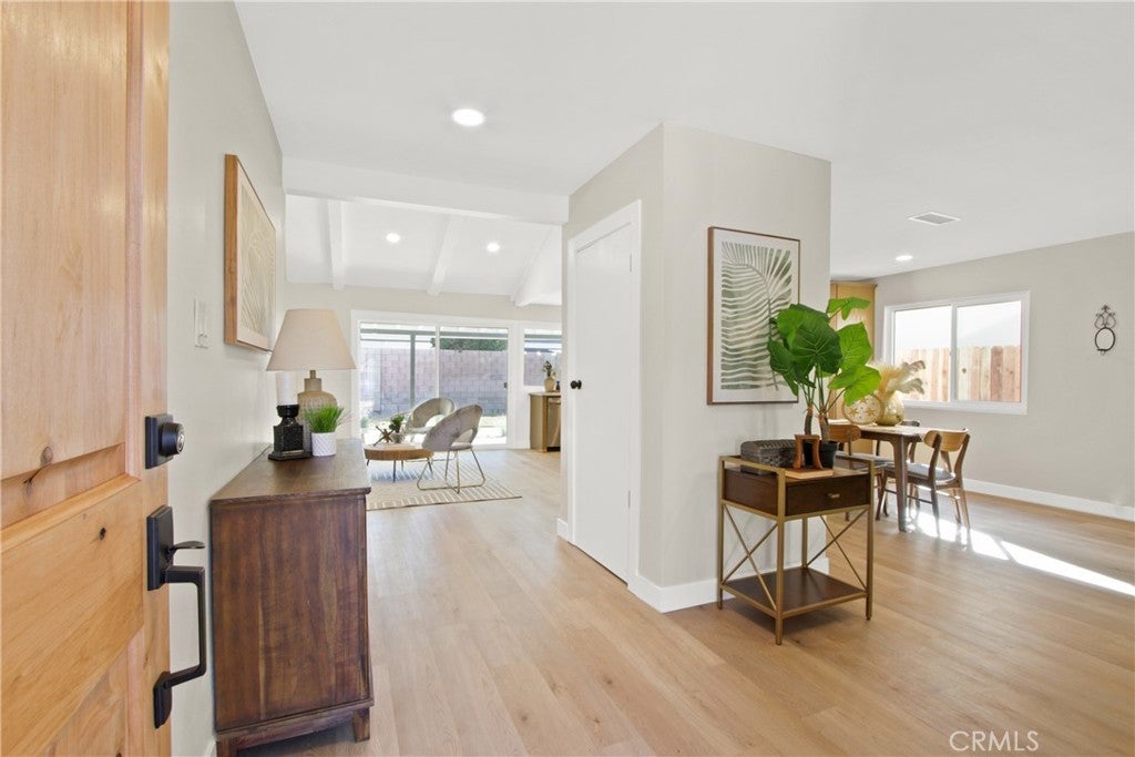 Welcome to 2717 Dayna Street, a stunning 4 bedroom 2 bathroom home that has been fully remodeled from top to bottom and sits in one of the most desirable neighborhoods on the border of Tustin and Orange. Step inside to find an open concept floor plan with vaulted ceilings, warm natural light, and beautiful new flooring throughout. The spacious kitchen features brand new cabinetry, quartz countertops, stainless steel appliances, and an oversized island perfect for entertaining. Both bathrooms have been completely redesigned with modern finishes and designer tile. The primary suite offers a serene retreat with a private ensuite bathroom showcasing a walk-in shower and elegant fixtures. Enjoy the seamless indoor outdoor flow through sliding doors that open to a large backyard, perfect for gatherings or relaxation. With easy freeway access and a prime location near Old Town Orange, shopping, dining, and award-winning schools, this move-in ready home combines comfort, style, and convenience. 6000 sq ft lot with a two car garage completes this ideal Southern California residence.