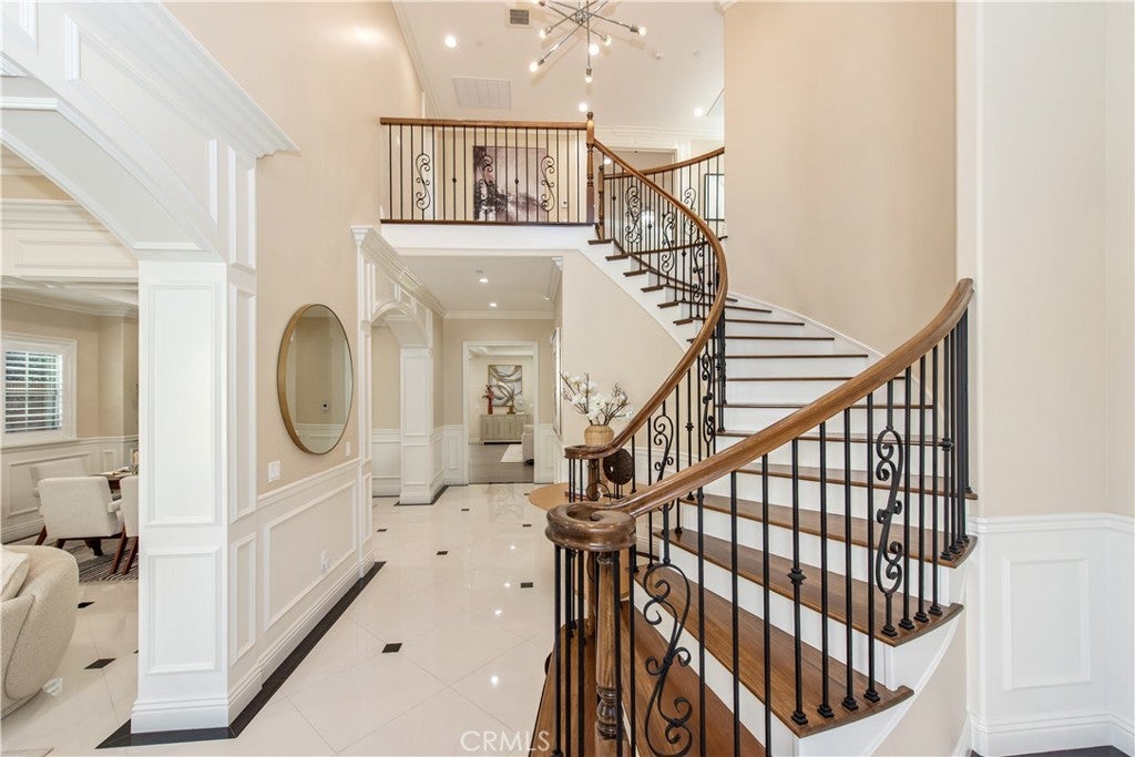 LOCATION! JUST A WALL AWAY FROM ARCADIA. Built in 2022, this distinguished Spanish-style residence is located in North Temple City, just a wall away from Arcadia. Behind the stately wrought-iron gates lies an exquisitely landscaped front courtyard with a welcoming outdoor fireplace, setting the tone for elegance and warmth. Step through the impressive double doors into a grand foyer with soaring 20-foot ceilings, where natural light cascades across the space in a stunning display of scale and sophistication. Intricate ceiling moldings, expansive door frames, and custom wall paneling throughout the home highlight exceptional craftsmanship and timeless design. To the left, a bright formal living room opens to the front courtyard lounge; to the right, a gracefully curved staircase with ornate railings captures both grandeur and artistry. The formal dining room flows seamlessly into a light-filled open layout, leading to a gourmet chef’s kitchen adorned with a waterfall island, designer backsplash, and a separate prep kitchen—blending luxury with everyday functionality. Adjacent to the kitchen, the sun-drenched breakfast area overlooks the private backyard, offering a serene setting to enjoy the morning light with family. Opposite the breakfast area, the family room connects through sliding glass doors to the expansive yard, creating a perfect balance between indoor comfort and outdoor tranquility. This remarkable residence stands out for its generous layout, refined architectural detailing, and exceptional privacy. Every inch of the home exudes sophistication and elevated living, offering a new residence that combines artistic elegance and luxurious lifestyle with warmth and comfort.