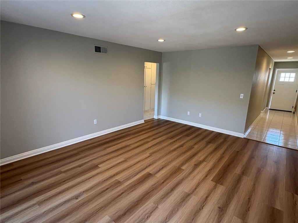 Beautifully remolded 2 bedroom / 2 bath 2nd floor apartment in quiet 4-plex in a highly sought after Huntington Beach. No one above you. AMENITIES INCLUDE: * New paint throughout, new luxury hardwood vinyl plank flooring in living areas and custom tile in kitchen, dining and bathrooms, scaped ceilings and recessed lighting. * Upgraded kitchen with quartz countertops, custom tile backsplash, dark wood cabinetry with chrome pulls, stainless steel appliances & sink, breakfast bar and recessed lighting. * Very spacious living room with recessed lighting and sliding glass door to balcony area. * Separate dining area off kitchen with ceiling fan and window. * Large bedrooms with generous closet space. Primary bedroom features remodeled ensuite bathroom with walk-in shower. * Main hallway bath is completely remodeled with new cabinetry and quartz countertops, full shower/tub combo, new light fixtures. Very clean. * Built-in storage closets in hallway between bedrooms. * Huge deck off front entrance. * Single car garage and street parking - no work trucks permitted. * Individual laundry hook ups in garage. * Close to award winning schools, restaurants, shopping & entertainment, world famous beaches and many freeways. OTHER DETAILS: * Available now for immediate occupancy! * Minimum of one year lease required * Sorry, NO pets or animals permitted. * NO smoking or vaping of any kind permitted. * Water & trash services included. Tenant responsible for gas & electricity. * Common area gardening services provided by owner. LEASING REQUIREMENTS: 1) All adults (18 or older) who will reside in the home must submit an online application with copy of their ID and proof of income (if any). 2) Gross combined household income should be a minimum of 3x the rent. 3) We will run a credit report and we require good credit.