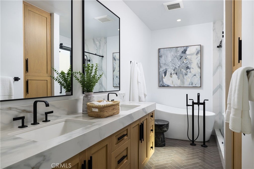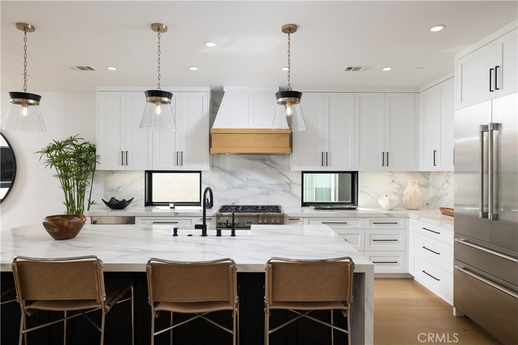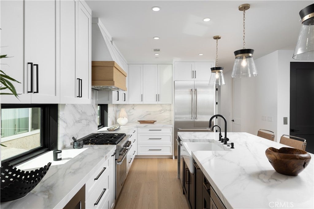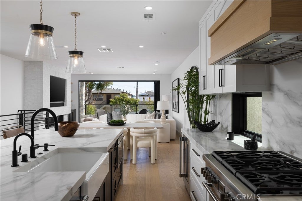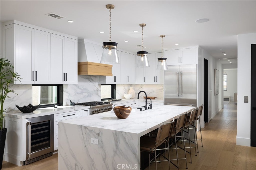1313 Ocean Avenue is a striking blend of coastal sophistication and modern design, ideally located just steps from the sand and the vibrant boutiques and cafés of Main Street. This newly constructed 3-bedroom, 4-bathroom residence spans 2,796 square feet and showcases a reverse floor plan that elevates the main living areas to capture natural light and ocean breezes. A chef’s kitchen with Thermador appliances, a waterfall-edge island, and custom cabinetry flows seamlessly into expansive living and dining spaces, where 14-foot stacking glass doors open to a covered terrace with built-in heaters for effortless indoor-outdoor living. The primary suite offers a spa-like bath with a soaking tub, dual vanities, and a generous walk-in closet. Downstairs, a glass-and-steel staircase leads to two additional en suite bedrooms and a versatile bonus room ideal for a media space, home gym, or optional fourth bedroom. Atop the home, an 800-square-foot rooftop deck offers panoramic views stretching from the coastline to Catalina Island. Smart home wiring, solar panels, and a private elevator serving the two main floors add convenience, while the 462-square-foot garage features a 400-amp electrical system ready for EV charging, high ceilings for car lifts, and plumbing for a secondary laundry and outdoor shower. Ideally located in Seal Beach, Orange County’s northernmost coastal town, these homes offer convenient access to both Los Angeles and Orange County. Just minutes from the 405 freeway, Seal Beach is adjacent to Huntington Harbor, Seal Beach Marina, Long Beach Harbor, and Long Beach Airport. Whether you’re commuting, boating, or traveling, this location connects you seamlessly to it all - while still offering the charm, privacy, and walkability of a classic beach town.