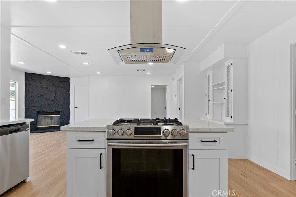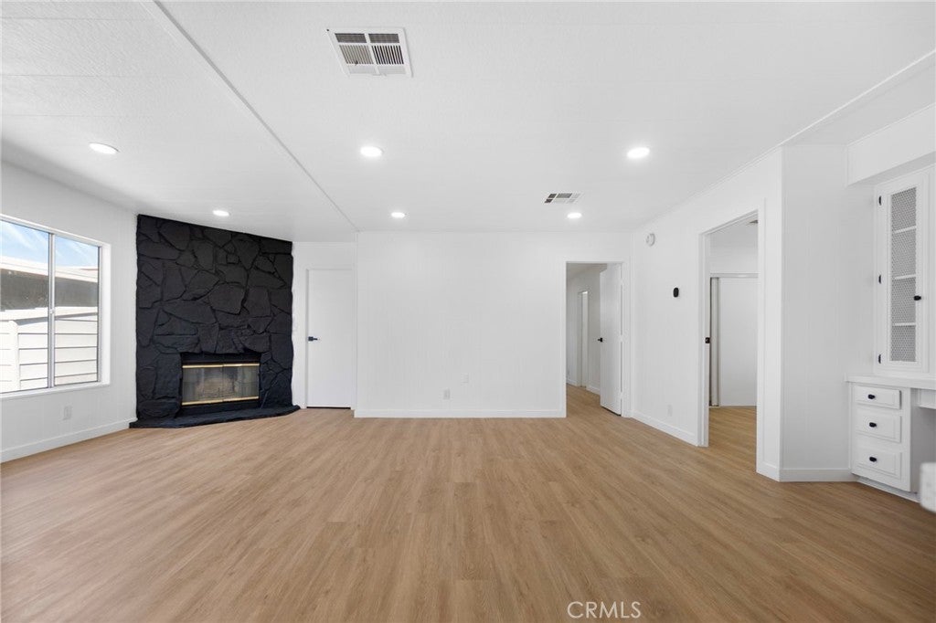 Welcome to this beautifully fully remodeled and spacious home offering over 2,000 sq. ft. of comfortable living space in 55+ Senior Community. Featuring two bedrooms and two full bathrooms, this property blends modern updates with a bright, open layout that’s perfect for entertaining or everyday living. Step inside to a large living room that flows seamlessly into the formal dining area. The expansive family room is a true highlight - featuring a stunning decorative stone wood-burning fireplace, a built-in desk with cabinetry, and a massive walk-in closet for extra storage. A sliding glass door opens to the large covered front patio, creating an ideal space to relax and enjoy the breeze. The modern kitchen boasts a gas stove top, dishwasher, refrigerator, and a breakfast bar, perfect for casual dining and gatherings. The individual laundry room offers plenty of storage, counter space, and a pantry area, with convenient access to the side exit. The primary suite features a large wood-paneled walk-in closet and a luxurious en suite bathroom with custom cabinetry, double sinks, a vanity area, a walk-in shower, and a separate soaking tub for ultimate comfort. Located in a prime area close to shopping, restaurants, churches, and the new Groves Center, everything you need is just steps away. This move-in-ready, fully remodeled home is a rare find - come see it today!