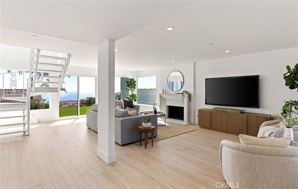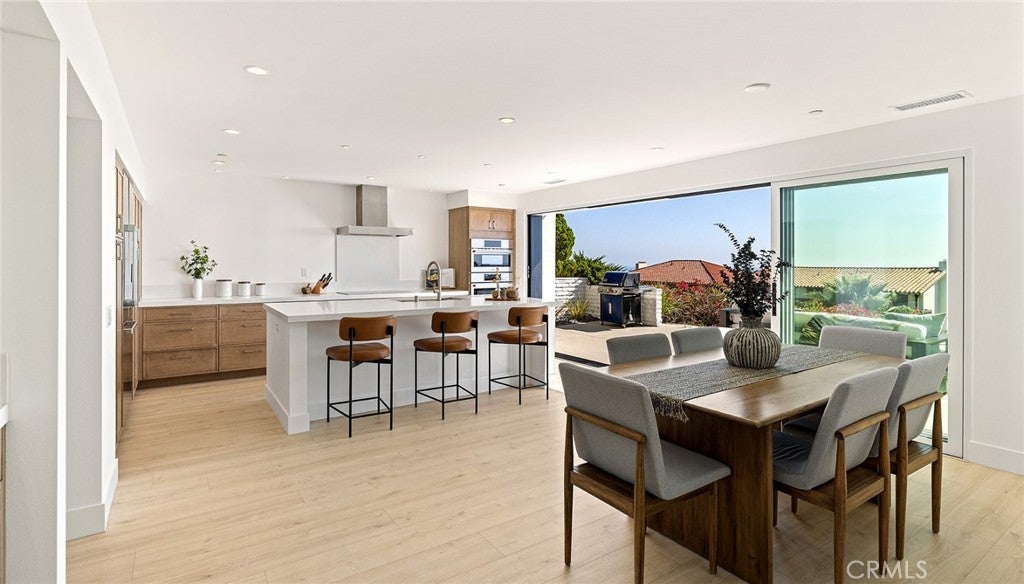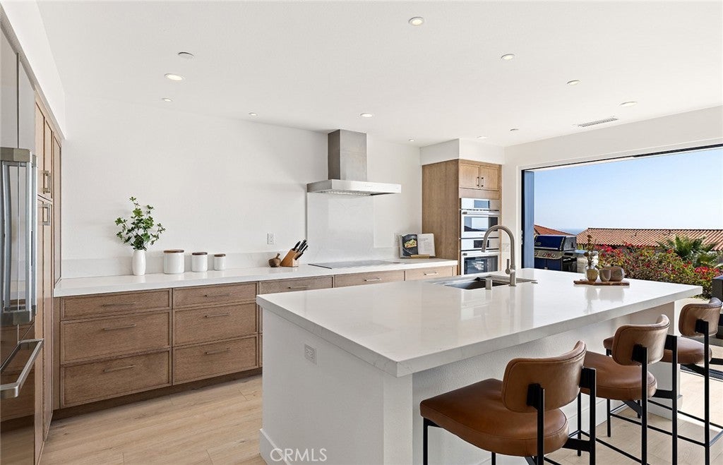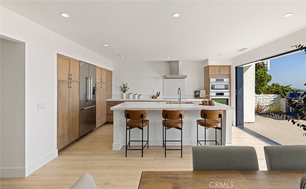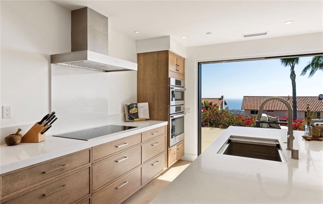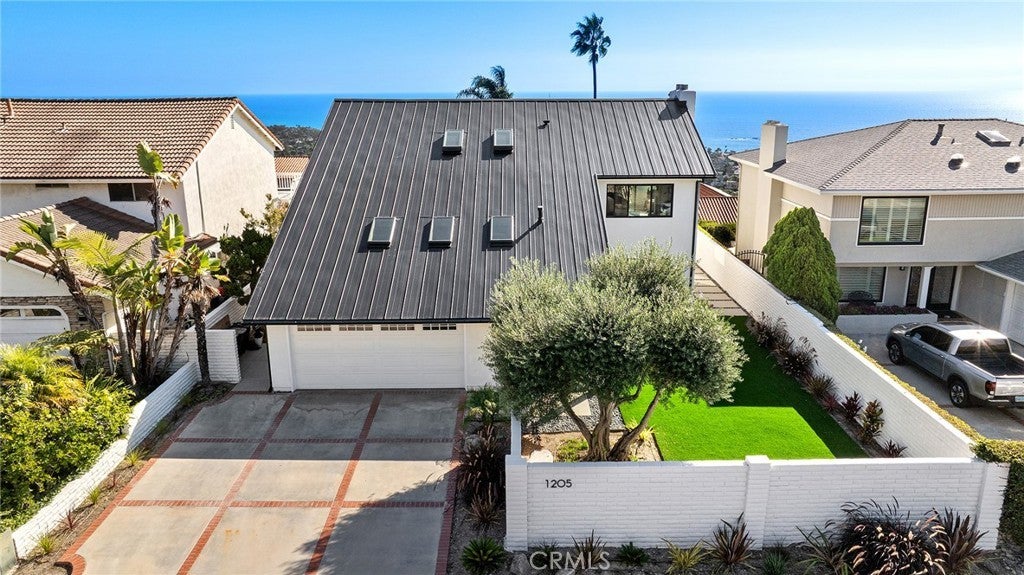 Perched high above the Pacific, this fully permitted luxury custom home offers one of the most commanding panoramic views in San Clemente. From Catalina and San Clemente Island to La Jolla, the horizon stretches endlessly, with white water at Seal Rock visible in the distance, a front-row seat to glowing sunsets, rolling surf, and twinkling coastline lights after dark. Set along one of the city’s premier elevated streets, this five-bedroom, three-bath coastal masterpiece was rebuilt from the studs up in 2024, blending refined modern design with the warmth of coastal living. Inside, natural light filters through new Milgard windows and a La Cantina multi-slide door, opening the living spaces to ocean breezes and uninterrupted views. Every element has been reimagined, all-new electrical including a 200-amp panel and EV outlet, PEX plumbing, HVAC, internal fire sprinklers, and a standing-seam metal roof provide peace of mind for years to come. The chef’s kitchen showcases Bosch and Fisher & Paykel appliances, custom rift-cut oak cabinetry, and Neolith-style countertops, complemented by a wet bar with Zephyr wine fridge, perfect for entertaining as the sun dips below the horizon. Upstairs, the primary suite opens to a rebuilt view deck capturing some of the most dramatic panoramas in all of San Clemente and Catalina Island. Vaulted ceilings, a walk-in rain shower, and designer finishes create a spa-like retreat. The secondary bath reflects the same elevated quality, with LED mirrors, designer fixtures, and operable skylights that fill each space with natural light. Outdoors, the property has been fully regraded and landscaped with drought-tolerant plantings, new turf, hardscape, and a natural-gas firepit, ideal for gathering under the stars. Prewiring for a future barbecue and hot tub offers flexibility for additional outdoor living. Just minutes from San Clemente’s world-famous beaches, coastal trails, historic pier, and charming Avenida Del Mar, this home perfectly embodies elevated design and the effortless rhythm of beachside living. For those seeking a panoramic ocean view residence that’s truly turnkey, 1205 Via Catalina stands in a class of its own.