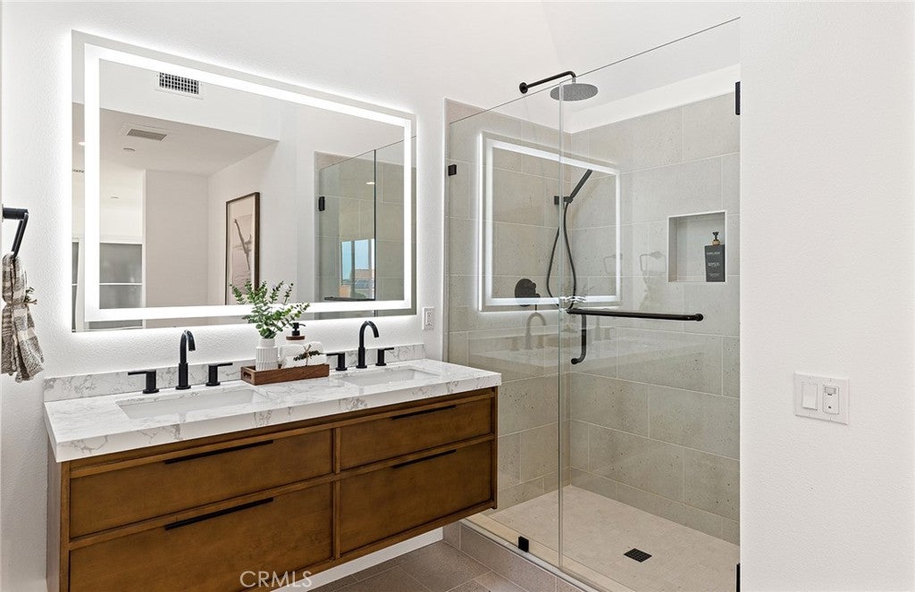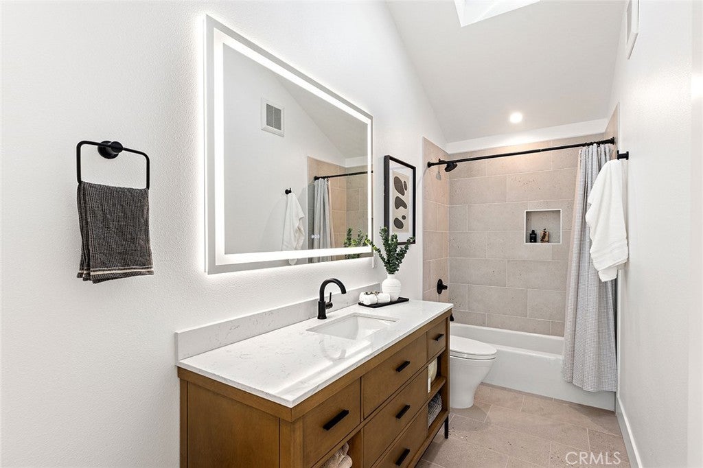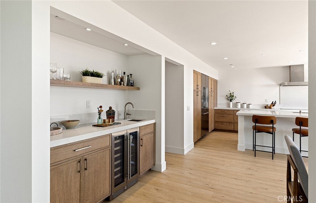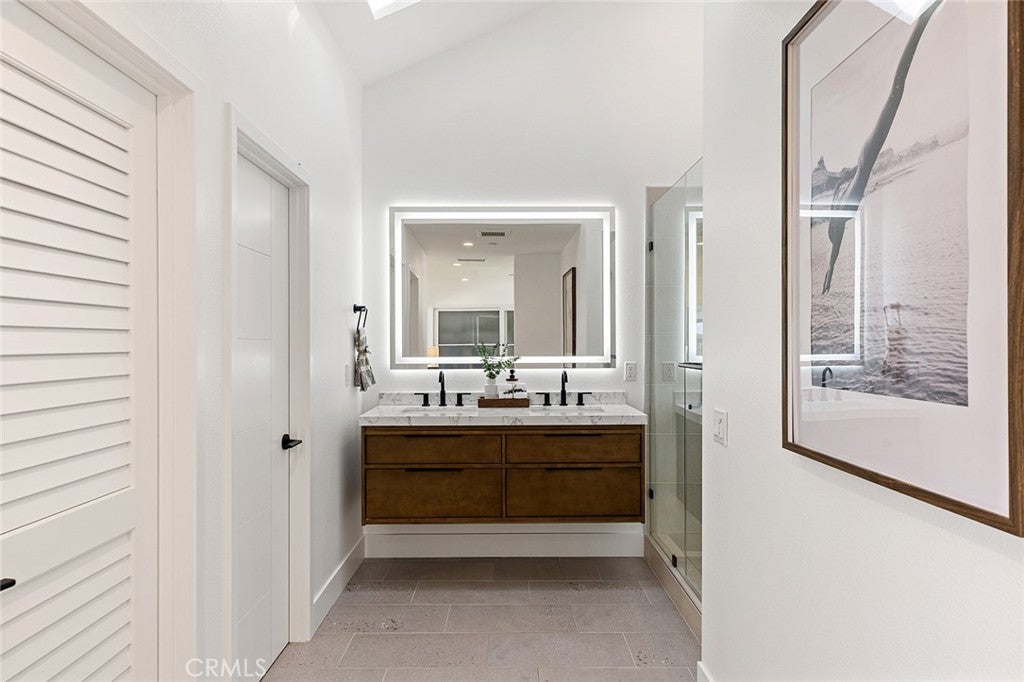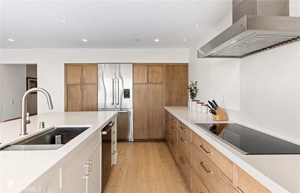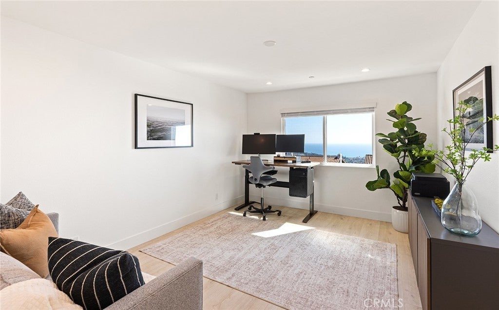 Perched high above the Pacific, this fully permitted luxury custom home offers one of the most commanding panoramic views in San Clemente. From Catalina and San Clemente Island to La Jolla, the horizon stretches endlessly, with white water at Seal Rock visible in the distance, a front-row seat to glowing sunsets, rolling surf, and twinkling coastline lights after dark. Set along one of the city’s premier elevated streets, this five-bedroom, three-bath coastal masterpiece was rebuilt from the studs up in 2024, blending refined modern design with the warmth of coastal living. Inside, natural light filters through new Milgard windows and a La Cantina multi-slide door, opening the living spaces to ocean breezes and uninterrupted views. Every element has been reimagined, all-new electrical including a 200-amp panel and EV outlet, PEX plumbing, HVAC, internal fire sprinklers, and a standing-seam metal roof provide peace of mind for years to come. The chef’s kitchen showcases Bosch and Fisher & Paykel appliances, custom rift-cut oak cabinetry, and Neolith-style countertops, complemented by a wet bar with Zephyr wine fridge, perfect for entertaining as the sun dips below the horizon. Upstairs, the primary suite opens to a rebuilt view deck capturing some of the most dramatic panoramas in all of San Clemente and Catalina Island. Vaulted ceilings, a walk-in rain shower, and designer finishes create a spa-like retreat. The secondary bath reflects the same elevated quality, with LED mirrors, designer fixtures, and operable skylights that fill each space with natural light. Outdoors, the property has been fully regraded and landscaped with drought-tolerant plantings, new turf, hardscape, and a natural-gas firepit, ideal for gathering under the stars. Prewiring for a future barbecue and hot tub offers flexibility for additional outdoor living. Just minutes from San Clemente’s world-famous beaches, coastal trails, historic pier, and charming Avenida Del Mar, this home perfectly embodies elevated design and the effortless rhythm of beachside living. For those seeking a panoramic ocean view residence that’s truly turnkey, 1205 Via Catalina stands in a class of its own.