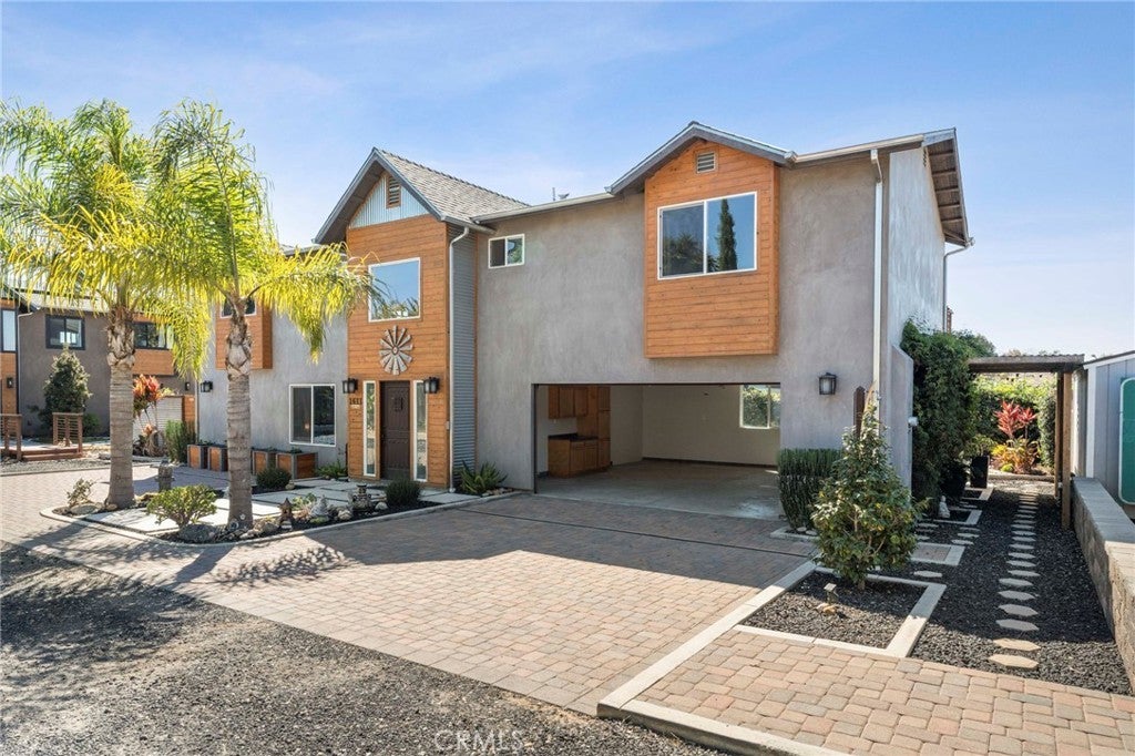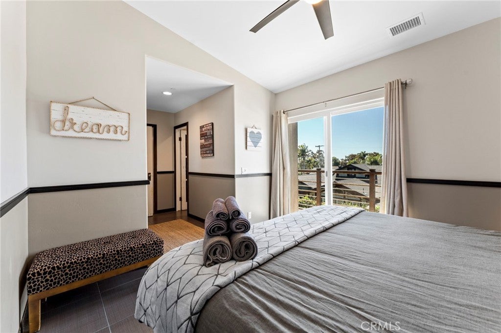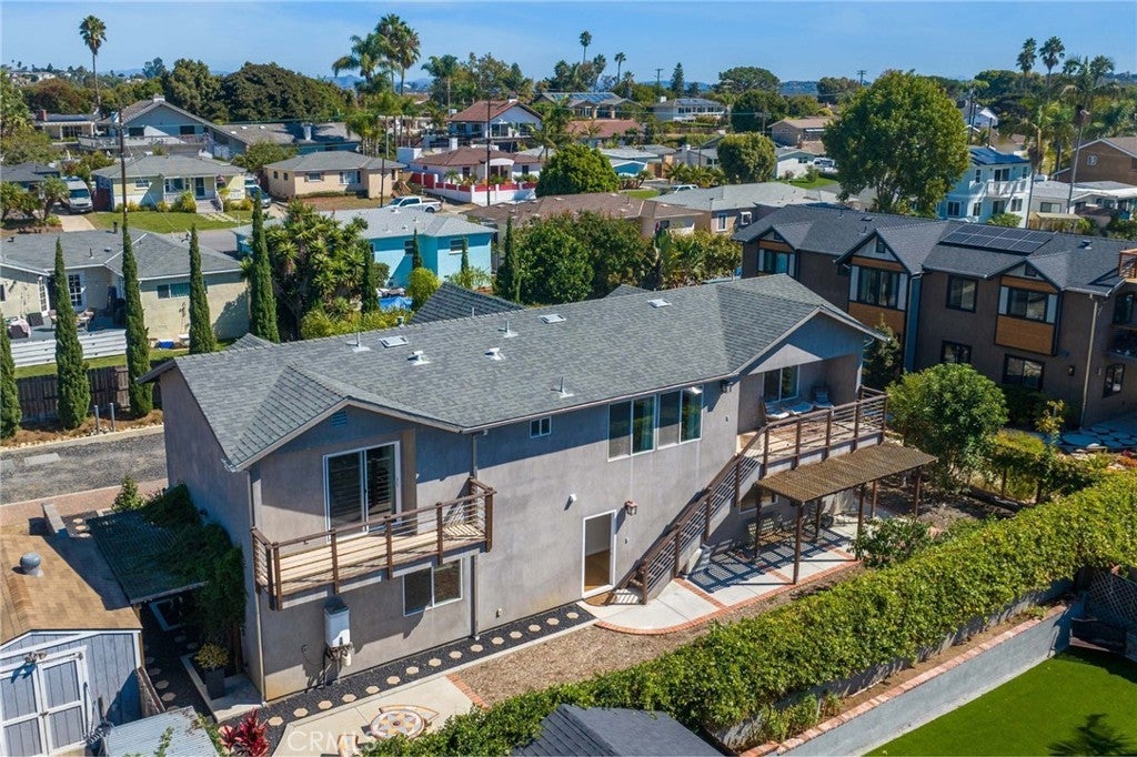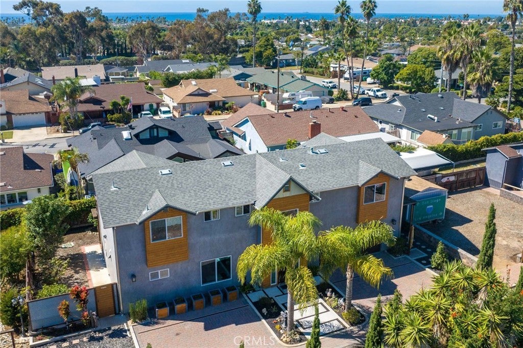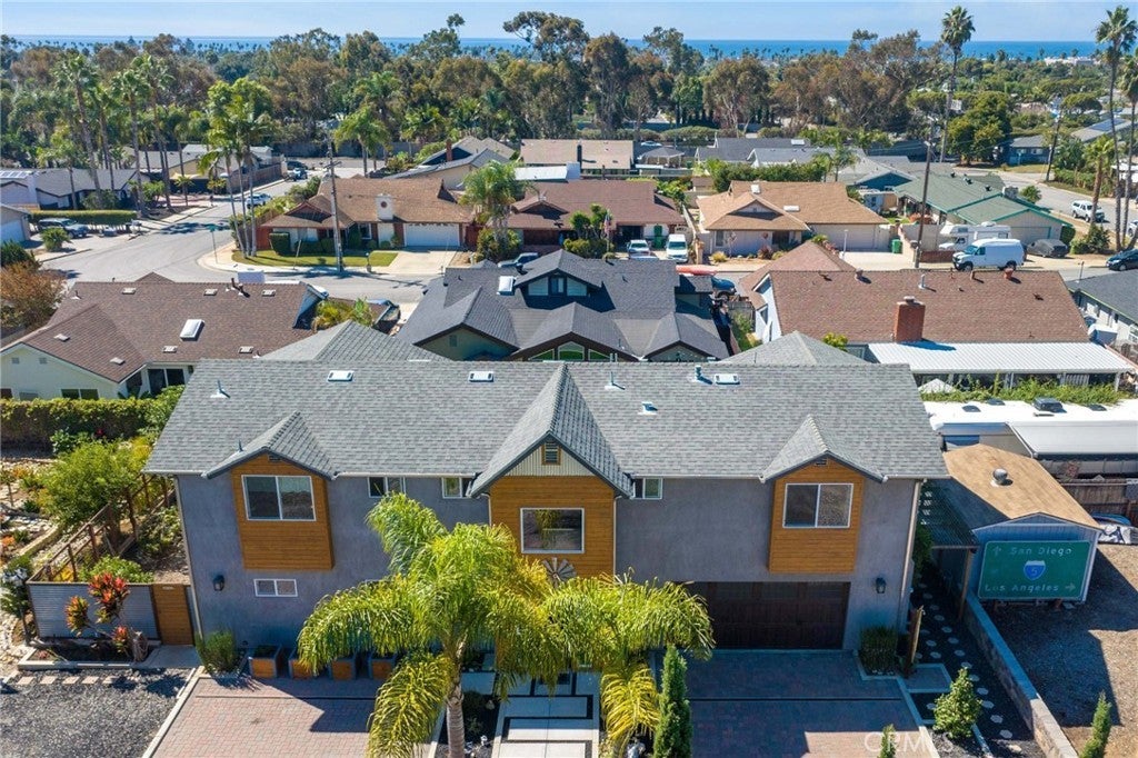 Welcome to 1611 Whaley Street, an exceptional coastal residence in Oceanside offering sophisticated modern living with direct facing peek-a-boo views of the Pacific Ocean. Built in 2017, this 2-bedroom, 2-bathroom home showcases a bright, open-concept single level floor plan designed for comfort, luxury, and indoor-outdoor living—plus a spacious attached 1-bedroom, 1-bathroom ADU studio apartment (built & permitted in 2025), ideal for multigenerational living or rental income. Step inside to porcelain tile flooring, vaulted ceilings, recessed lighting, ceiling fans, reclaimed wood accent walls, and custom Martha Stewart cabinetry. The gourmet kitchen is beautifully appointed with quartz and Dekton countertops, subway tile backsplash, stainless steel appliances, and a large island that flows effortlessly into the living and dining areas—perfect for entertaining. From the upper-level living room balcony, take in peaceful ocean views, enjoy stunning sunsets, and step down to a private backyard ideal for al fresco dining among lush fruit trees including nectarine, apple, peach, avocado, lemon, lime, and orange. Additional upgrades include Jeld-Wen dual pane energy-efficient vinyl windows, PEX plumbing, tankless water heater with water filtration system, custom repurposed doors and molding, and coaxial cabling throughout. The primary suite features a walk-in closet, ensuite bath with walk-in shower, private balcony, and ocean breezes. The guest bedroom also offers a walk-in closet, complemented by a beautifully appointed guest bath and a conveniently located laundry closet on the same level. The attached ADU has its own private entrance and features a full kitchen with stainless steel appliances, laundry room, oversized walk-in shower, epoxy flooring, recessed lighting, ceiling fans, mirrored closet, and mini-split unit for climate control—making it an ideal income-producing opportunity or guest quarters. Set back from the street with NO HOA, the home is accessed by a sprawling lava rock driveway providing added privacy. A paved 4-car driveway and 2-car direct access garage offer ample parking and storage. Located just over a mile from the beach and moments from downtown Oceanside, Carlsbad Village, beach trails, golf, restaurants, shopping, and major freeways (78 and 5), this property offers the ultimate blend of luxury, privacy, and coastal convenience.