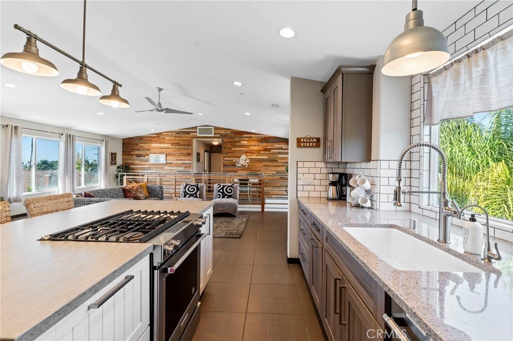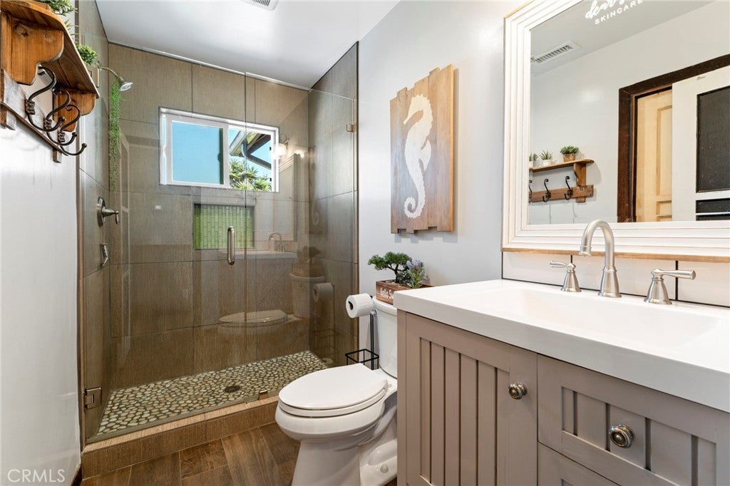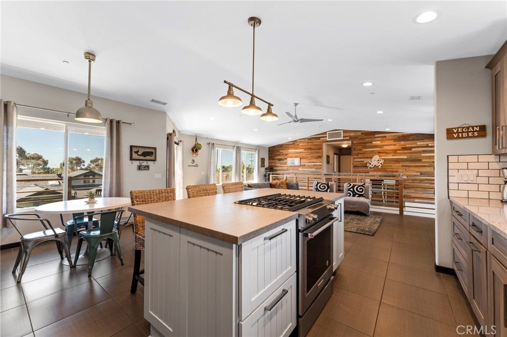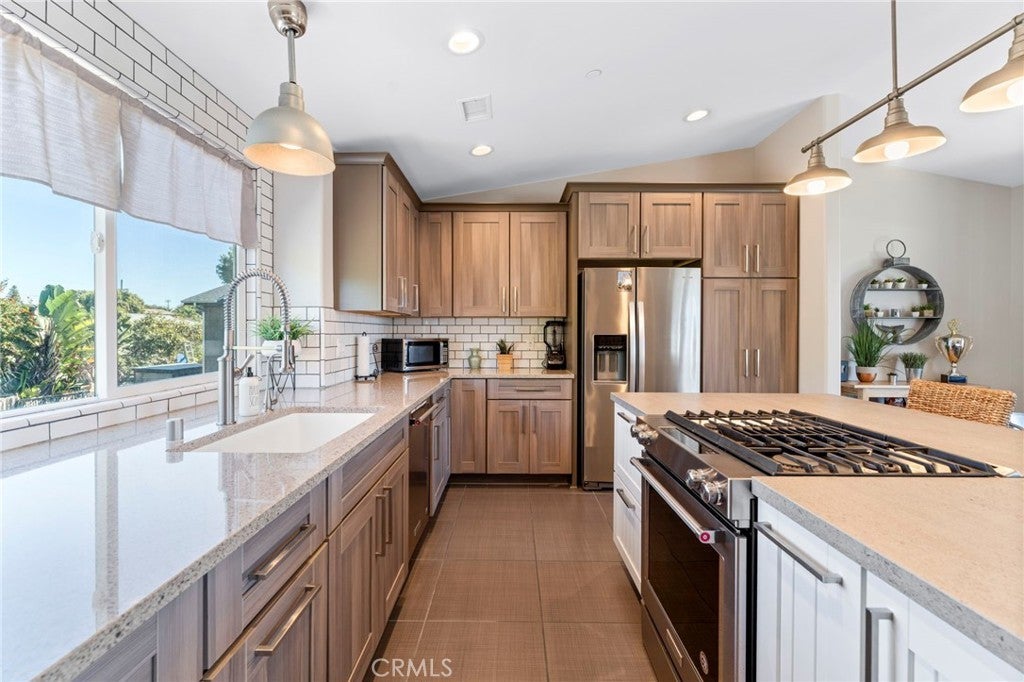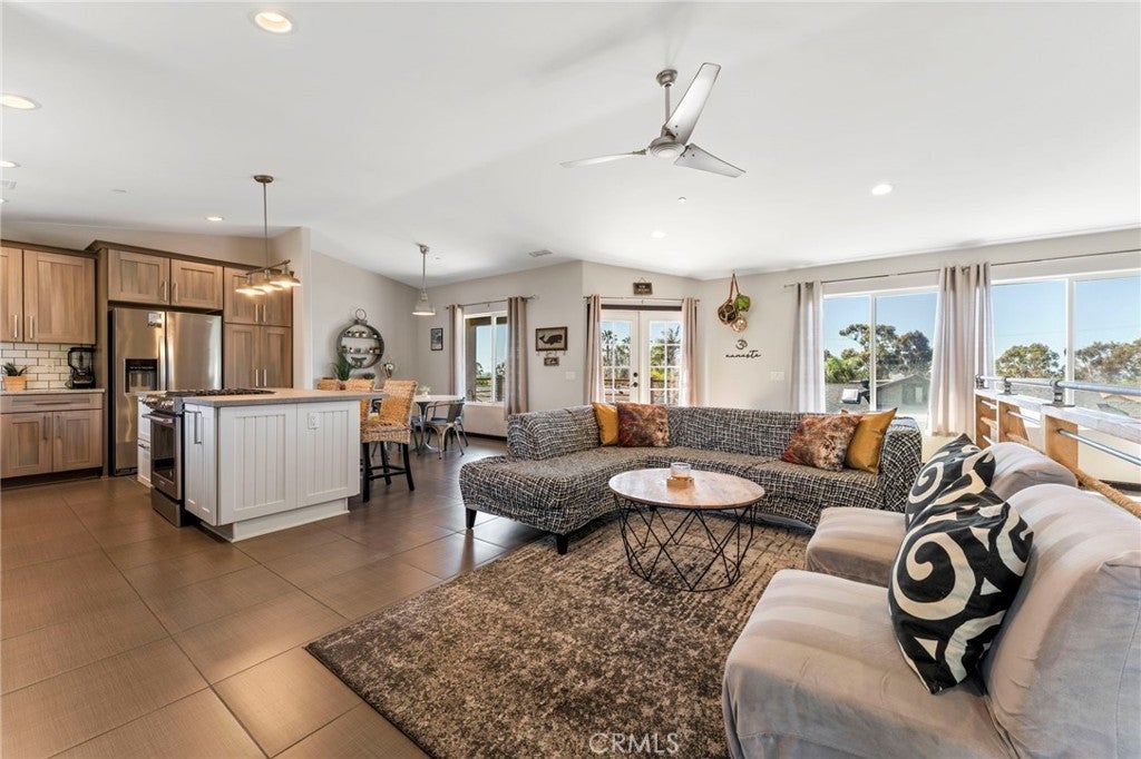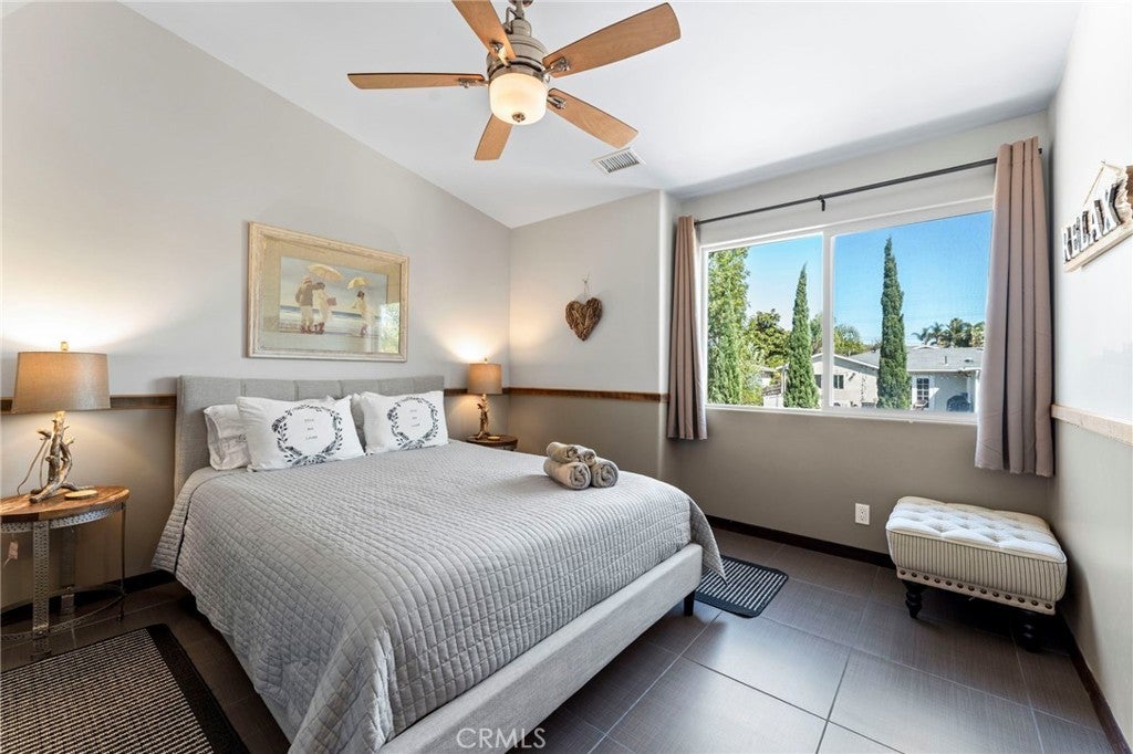 Welcome to 1611 Whaley Street, an exceptional coastal residence in Oceanside offering sophisticated modern living with direct facing peek-a-boo views of the Pacific Ocean. Built in 2017, this 2-bedroom, 2-bathroom home showcases a bright, open-concept single level floor plan designed for comfort, luxury, and indoor-outdoor living—plus a spacious attached 1-bedroom, 1-bathroom ADU studio apartment (built & permitted in 2025), ideal for multigenerational living or rental income. Step inside to porcelain tile flooring, vaulted ceilings, recessed lighting, ceiling fans, reclaimed wood accent walls, and custom Martha Stewart cabinetry. The gourmet kitchen is beautifully appointed with quartz and Dekton countertops, subway tile backsplash, stainless steel appliances, and a large island that flows effortlessly into the living and dining areas—perfect for entertaining. From the upper-level living room balcony, take in peaceful ocean views, enjoy stunning sunsets, and step down to a private backyard ideal for al fresco dining among lush fruit trees including nectarine, apple, peach, avocado, lemon, lime, and orange. Additional upgrades include Jeld-Wen dual pane energy-efficient vinyl windows, PEX plumbing, tankless water heater with water filtration system, custom repurposed doors and molding, and coaxial cabling throughout. The primary suite features a walk-in closet, ensuite bath with walk-in shower, private balcony, and ocean breezes. The guest bedroom also offers a walk-in closet, complemented by a beautifully appointed guest bath and a conveniently located laundry closet on the same level. The attached ADU has its own private entrance and features a full kitchen with stainless steel appliances, laundry room, oversized walk-in shower, epoxy flooring, recessed lighting, ceiling fans, mirrored closet, and mini-split unit for climate control—making it an ideal income-producing opportunity or guest quarters. Set back from the street with NO HOA, the home is accessed by a sprawling lava rock driveway providing added privacy. A paved 4-car driveway and 2-car direct access garage offer ample parking and storage. Located just over a mile from the beach and moments from downtown Oceanside, Carlsbad Village, beach trails, golf, restaurants, shopping, and major freeways (78 and 5), this property offers the ultimate blend of luxury, privacy, and coastal convenience.