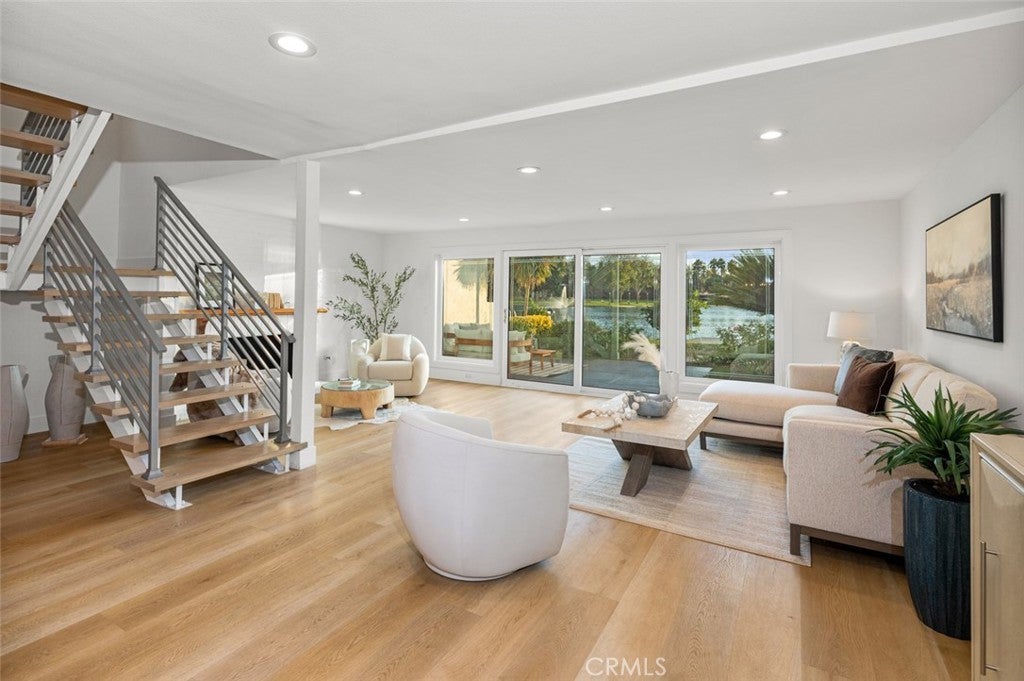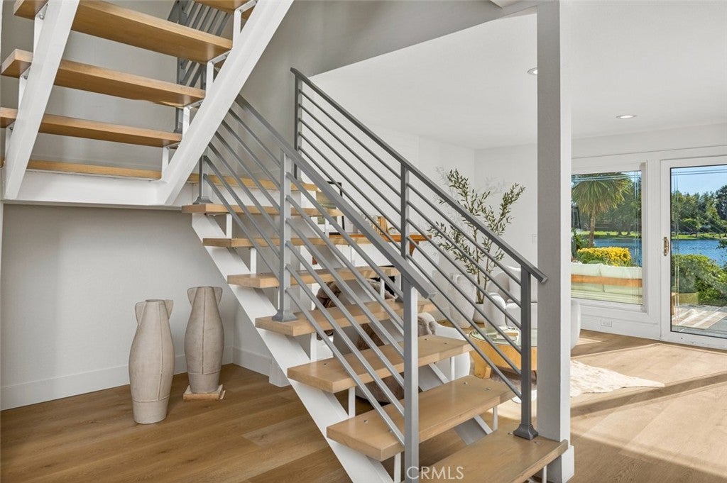 Soft light moves through the home from dawn to dusk, tracing reflections across its light floors and whitewashed walls. Every space within this fully redesigned lake house feels intentional, open, and shaped by its relationship to the water. What was once a traditional lakefront home has been transformed into a composition of clean lines and open volumes. Glass walls frame the water like a living artwork, while wide passages invite movement through the interior as if following the rhythm of the lake itself. The design captures that sense of quiet luxury while being simple, natural, and enduring. At the heart of the home, the floating staircase rises as a sculptural moment. Formed in steel and timber, it gives the interior a sense of weightlessness. The kitchen and living areas merge as one, designed for gathering without boundaries. White quartz counters and soft, textural finishes reflect light gently throughout the day, creating a setting that feels equally suited to morning stillness or an evening by the lake. Four bedrooms and three bathrooms complete the home, each conceived with an understated warmth that mirrors the tones of the surrounding landscape. Outside, the property opens toward one of the most striking views in all of the Keys. From the private dock, the water stretches endlessly down the channel, a rare perspective that captures the full character of lakefront living. The backyard, generous and green, becomes an extension of the home’s interior. A place where architecture, light, and nature are held in perfect balance. Here, life unfolds at its own pace. The sound of the water, the warmth of the afternoon sun, and the play of light across open spaces come together in quiet harmony, a home that feels timeless, effortless, and deeply connected to where it stands.