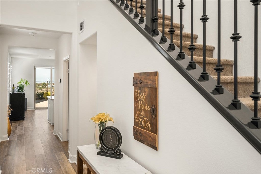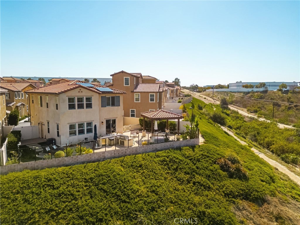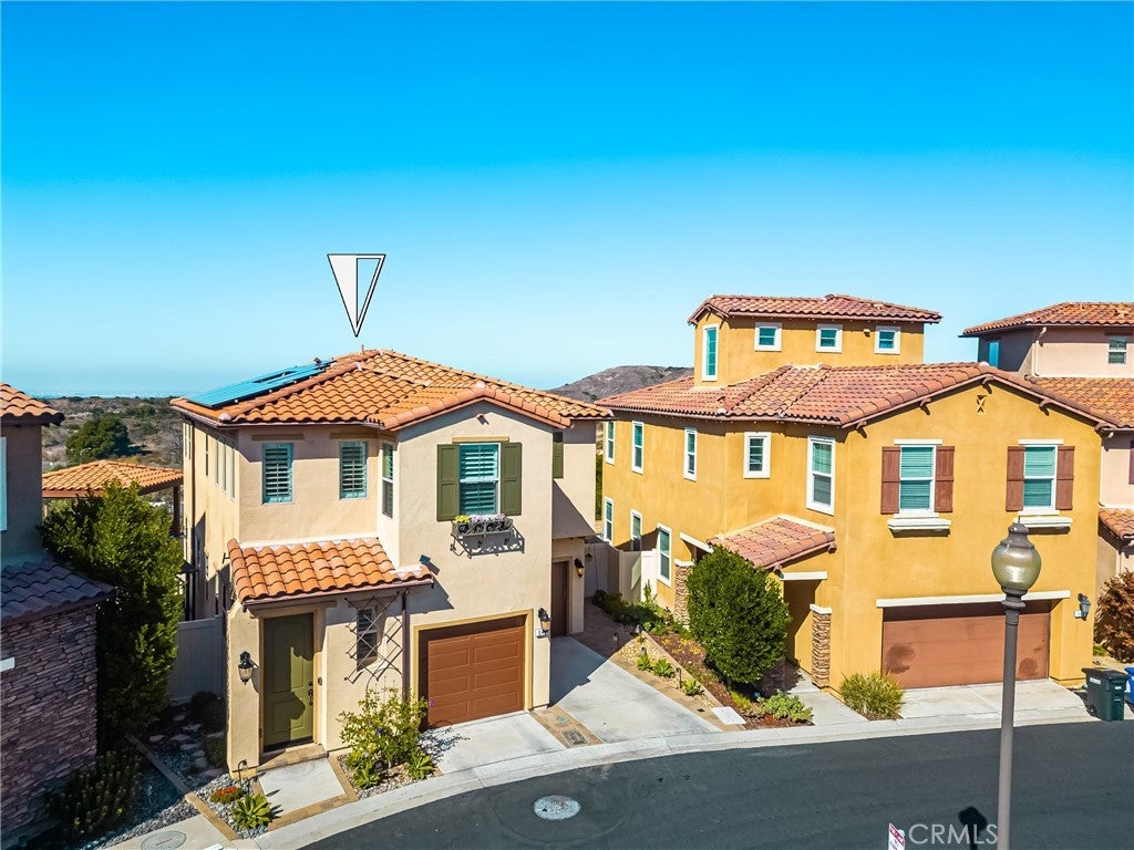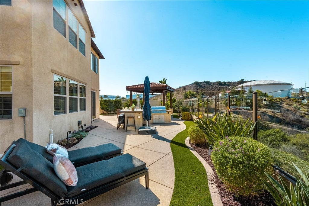 Panoramic canyon and sunset views define this modern Lake Forest residence, where contemporary design and thoughtful upgrades come together to capture the essence of California living. Every detail—from the light-filled entryway and elegant wrought-iron staircase to the open-concept layout—reflects sophisticated comfort and timeless appeal. At the heart of the home, the chef’s kitchen showcases a full backsplash, extended island with seating, custom cabinetry, and chic pendant lights that create a warm evening ambiance. The kitchen opens seamlessly to the dining and living areas with luxury vinyl plank flooring, plantation shutters, and effortless flow to the entertainer’s backyard. Step outside to a resort-style retreat overlooking rolling hills and glowing sunsets, complete with a built-in BBQ with sink, fire table, and covered cabana surrounded by beautiful turf—perfect for relaxing mornings or lively weekend gatherings. On the side of the home, a private dog run with its own shaded gazebo adds charm and function for pet owners. Upstairs, a stylish loft with built-in cabinetry and a custom desk offers the perfect setting for a home office, reading nook, or study space. All three bedrooms are conveniently upstairs, including a serene primary suite that frames hillside views and features a spa-inspired bath with dual sinks, a soaking tub, glass-enclosed shower, and spacious walk-in closet. Additional bedrooms are bright and inviting—one currently used as a fitness office—and share a full bath with dual vanities and modern finishes. A spacious laundry room with added cabinetry completes the upper level. Blending style and efficiency, the home also features a solar energy system, tankless water heater, water softener with reverse osmosis, ceiling fans, a living room surround speaker system, and an epoxy-finished garage. Every detail has been designed for comfort and convenience, from the 32 plantation-shuttered windows to the organized closets and cabinetry throughout. Ideally located near parks, trails, and award-winning schools—and just minutes from shopping, dining, and entertainment—this Encanto view home delivers the perfect balance of luxury, security, and modern California living. Enjoy all the benefits of life inside Encanto, Lake Forest’s premier gate-guarded community with serenity, sophistication, and style.