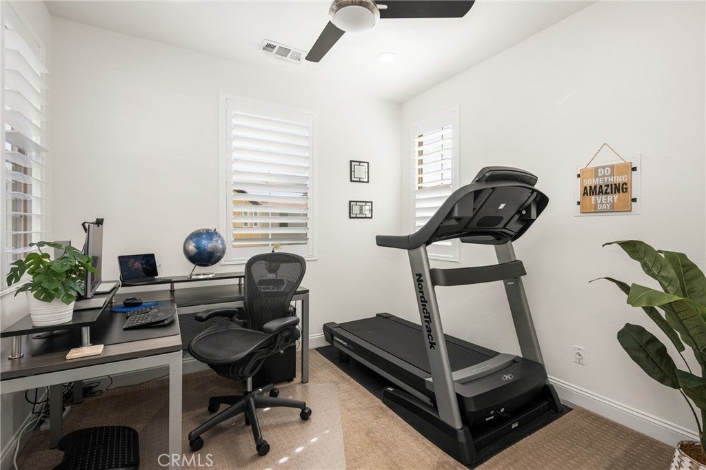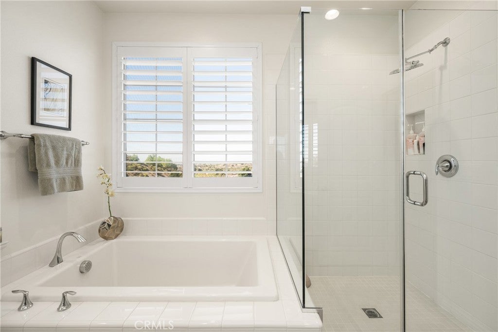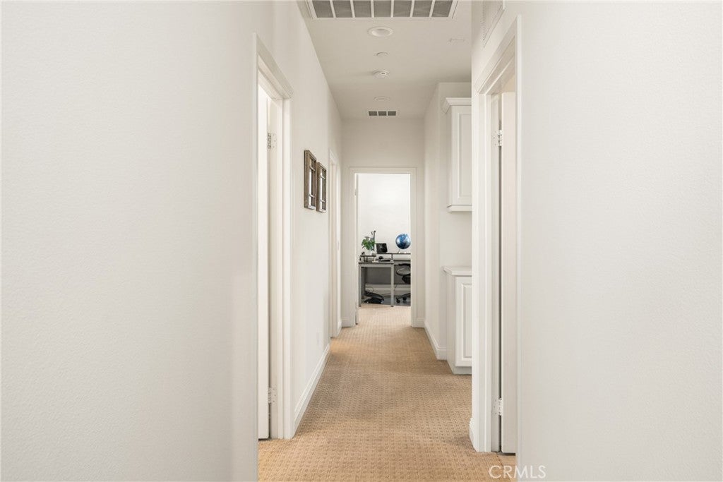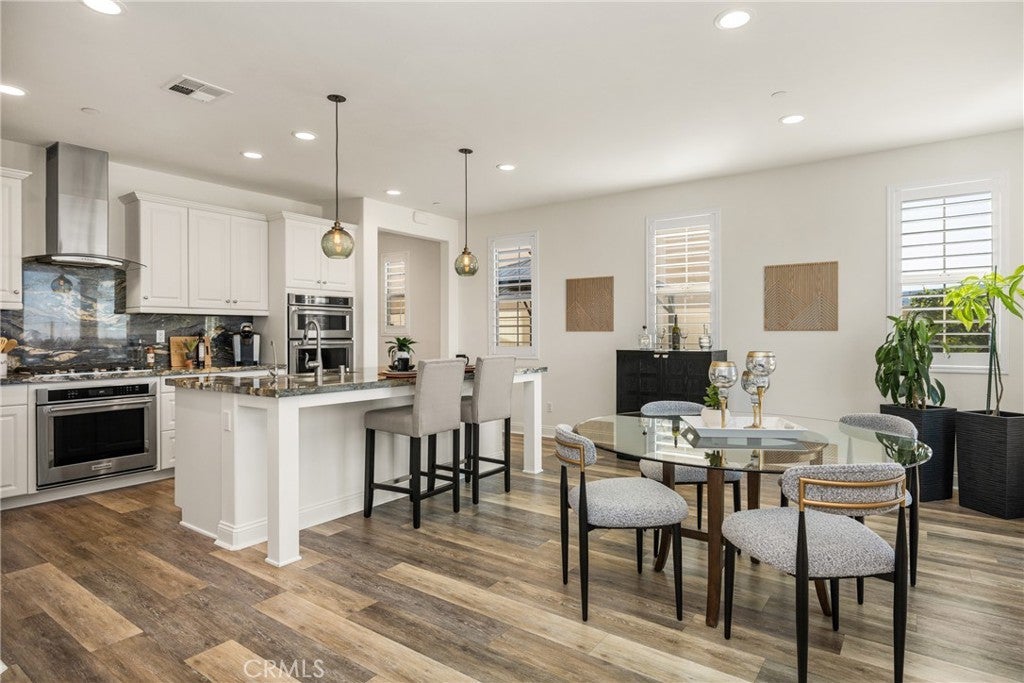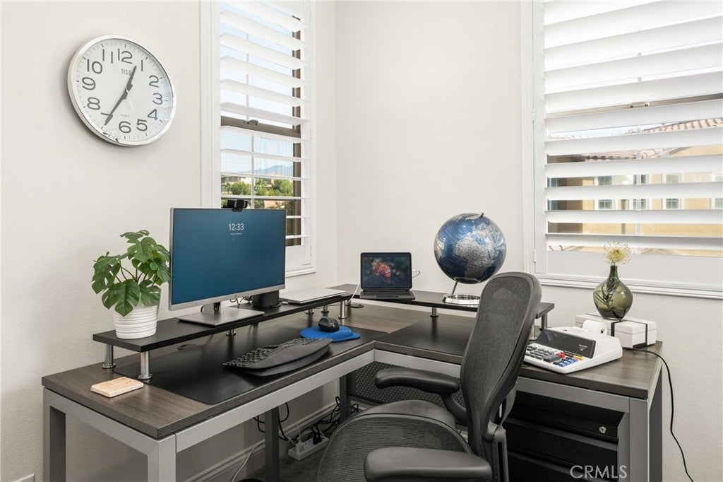 Panoramic canyon and sunset views define this modern Lake Forest residence, where contemporary design and thoughtful upgrades come together to capture the essence of California living. Every detail—from the light-filled entryway and elegant wrought-iron staircase to the open-concept layout—reflects sophisticated comfort and timeless appeal. At the heart of the home, the chef’s kitchen showcases a full backsplash, extended island with seating, custom cabinetry, and chic pendant lights that create a warm evening ambiance. The kitchen opens seamlessly to the dining and living areas with luxury vinyl plank flooring, plantation shutters, and effortless flow to the entertainer’s backyard. Step outside to a resort-style retreat overlooking rolling hills and glowing sunsets, complete with a built-in BBQ with sink, fire table, and covered cabana surrounded by beautiful turf—perfect for relaxing mornings or lively weekend gatherings. On the side of the home, a private dog run with its own shaded gazebo adds charm and function for pet owners. Upstairs, a stylish loft with built-in cabinetry and a custom desk offers the perfect setting for a home office, reading nook, or study space. All three bedrooms are conveniently upstairs, including a serene primary suite that frames hillside views and features a spa-inspired bath with dual sinks, a soaking tub, glass-enclosed shower, and spacious walk-in closet. Additional bedrooms are bright and inviting—one currently used as a fitness office—and share a full bath with dual vanities and modern finishes. A spacious laundry room with added cabinetry completes the upper level. Blending style and efficiency, the home also features a solar energy system, tankless water heater, water softener with reverse osmosis, ceiling fans, a living room surround speaker system, and an epoxy-finished garage. Every detail has been designed for comfort and convenience, from the 32 plantation-shuttered windows to the organized closets and cabinetry throughout. Ideally located near parks, trails, and award-winning schools—and just minutes from shopping, dining, and entertainment—this Encanto view home delivers the perfect balance of luxury, security, and modern California living. Enjoy all the benefits of life inside Encanto, Lake Forest’s premier gate-guarded community with serenity, sophistication, and style.