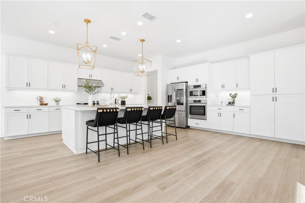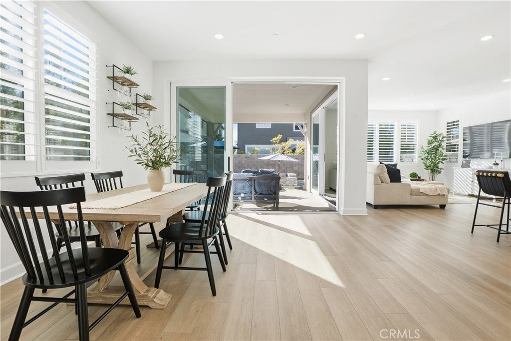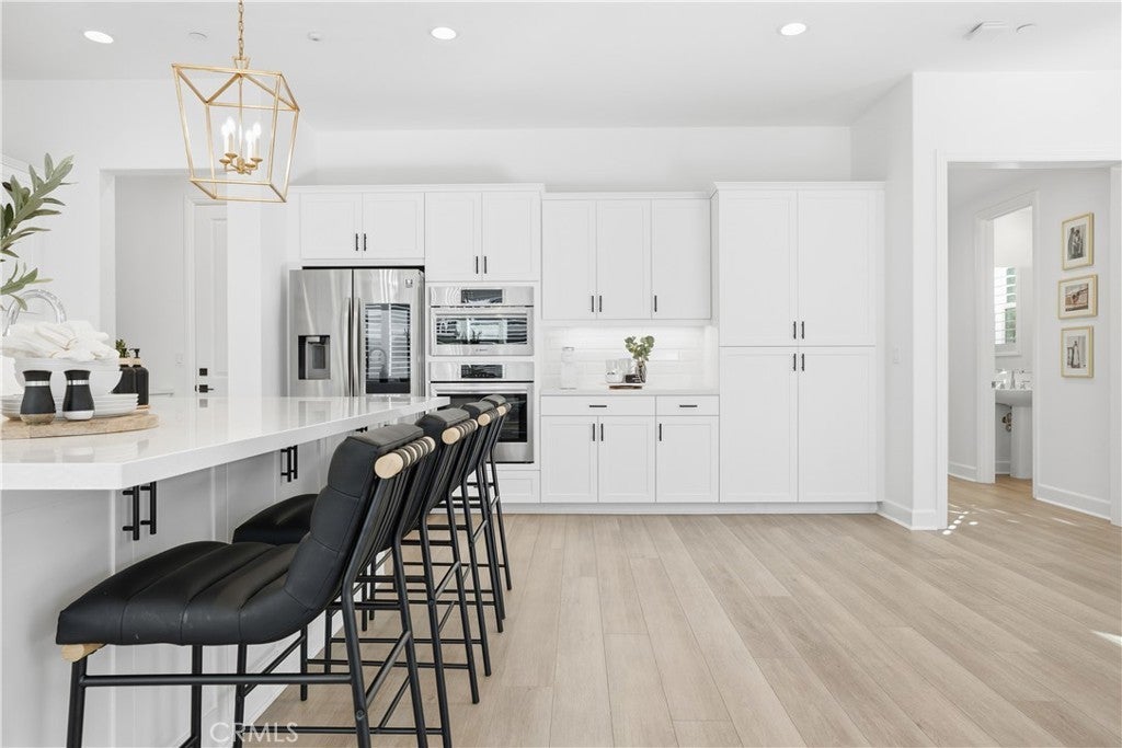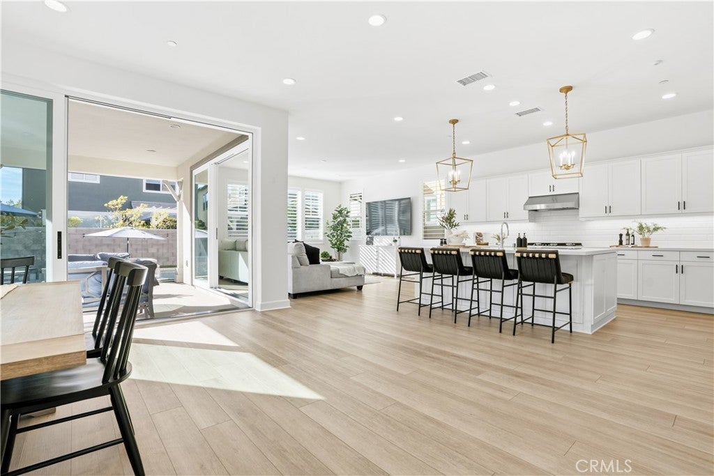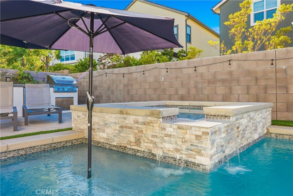 Discover the epitome of elevated California living in this exquisite Sterling Home—a residence that captures the essence of a luxury retreat while offering the comfort and warmth of home. Designed with impeccable taste and attention to detail, this four-bedroom, four-bathroom estate seamlessly blends contemporary sophistication with everyday functionality. A grand entryway opens to an expansive great room with an open floor plan framed by six-panel stacking doors that blur the line between indoor and outdoor living. The chef’s kitchen is a masterpiece, featuring quartz countertops, a large center island, custom white cabinetry, Bosch double ovens, a five-burner gas range with hood, and a charming cappuccino station. Every finish has been thoughtfully curated—from the luxury vinyl plank flooring and plantation shutters, to the custom built-ins and sleek REMOTE CONTROLLED roller shades throughout the home. Upstairs, the primary suite serves as a serene sanctuary, offering a spa-like bath with floor-to-ceiling designer tile, dual vanities with quartz countertops, and a spacious walk-in shower. The upper level also includes an upgraded laundry room and a versatile loft—ideal for a home office, media lounge or secondary living space. The resort-caliber backyard is a true showpiece. Designed for both relaxation and entertaining, it showcases a sparkling saltwater pool and spa, a fully tiled built-in BBQ with dual refrigerators, beer tap, a cozy fire pit, large lawn, and generous covered seating. The remote-controlled pool and spa system make leisure effortless, while the seamless indoor-outdoor flow creates an ambiance of year-round vacation living. Additional highlights include a finished garage with custom cabinetry, epoxy flooring, and 21 PANEL SOLAR SYSTEM. Sterling homes feature wiring for an EV Charger hookup, state-of-the-art EVO Smart Home technology, offering whole-home Wi-Fi, a video doorbell, Wi-Fi thermostat and garage opener, Smart Entry Lock, and Lighting Control. Perfectly positioned within Rancho Mission Viejo, this residence provides premier access to one of RMV’s most desirable parks and is moments from the Sports Park, tennis and pickleball courts, and the popular North Plunge Pool. Experience refined living at its finest—welcome home to Sterling.