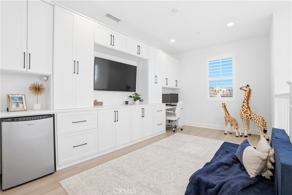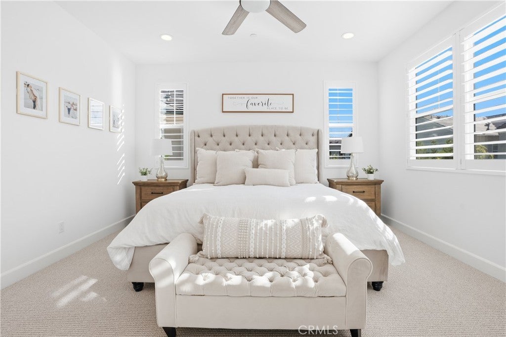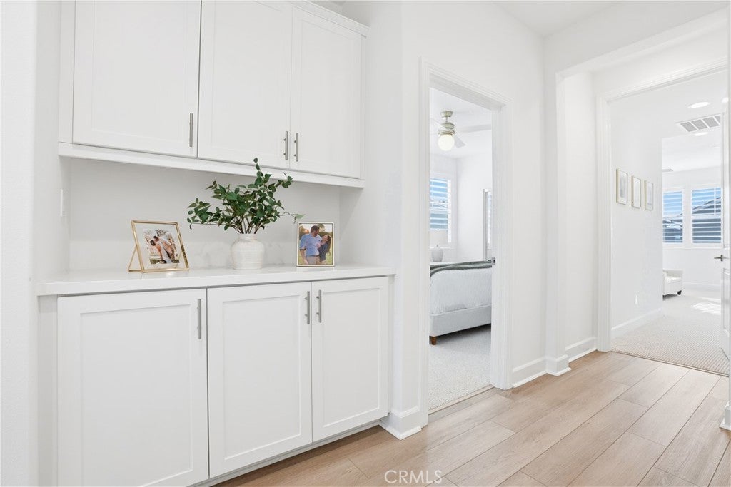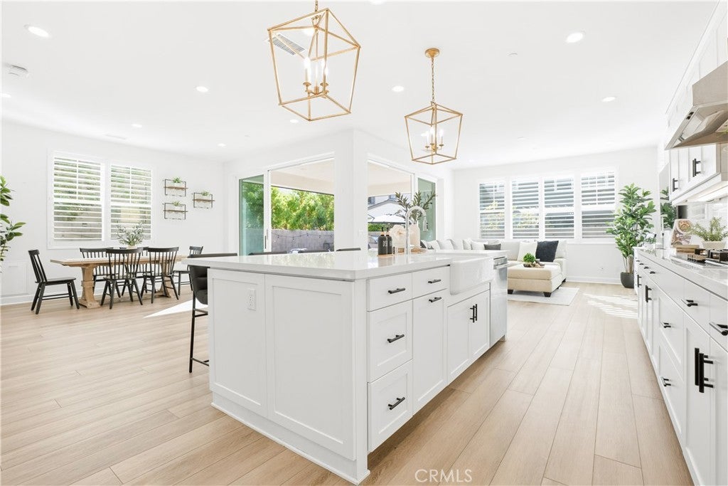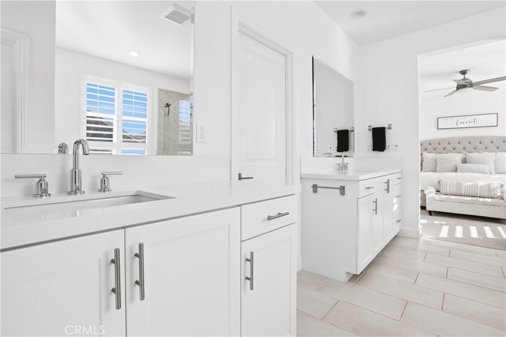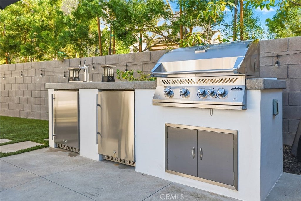 Discover the epitome of elevated California living in this exquisite Sterling Home—a residence that captures the essence of a luxury retreat while offering the comfort and warmth of home. Designed with impeccable taste and attention to detail, this four-bedroom, four-bathroom estate seamlessly blends contemporary sophistication with everyday functionality. A grand entryway opens to an expansive great room with an open floor plan framed by six-panel stacking doors that blur the line between indoor and outdoor living. The chef’s kitchen is a masterpiece, featuring quartz countertops, a large center island, custom white cabinetry, Bosch double ovens, a five-burner gas range with hood, and a charming cappuccino station. Every finish has been thoughtfully curated—from the luxury vinyl plank flooring and plantation shutters, to the custom built-ins and sleek REMOTE CONTROLLED roller shades throughout the home. Upstairs, the primary suite serves as a serene sanctuary, offering a spa-like bath with floor-to-ceiling designer tile, dual vanities with quartz countertops, and a spacious walk-in shower. The upper level also includes an upgraded laundry room and a versatile loft—ideal for a home office, media lounge or secondary living space. The resort-caliber backyard is a true showpiece. Designed for both relaxation and entertaining, it showcases a sparkling saltwater pool and spa, a fully tiled built-in BBQ with dual refrigerators, beer tap, a cozy fire pit, large lawn, and generous covered seating. The remote-controlled pool and spa system make leisure effortless, while the seamless indoor-outdoor flow creates an ambiance of year-round vacation living. Additional highlights include a finished garage with custom cabinetry, epoxy flooring, and 21 PANEL SOLAR SYSTEM. Sterling homes feature wiring for an EV Charger hookup, state-of-the-art EVO Smart Home technology, offering whole-home Wi-Fi, a video doorbell, Wi-Fi thermostat and garage opener, Smart Entry Lock, and Lighting Control. Perfectly positioned within Rancho Mission Viejo, this residence provides premier access to one of RMV’s most desirable parks and is moments from the Sports Park, tennis and pickleball courts, and the popular North Plunge Pool. Experience refined living at its finest—welcome home to Sterling.