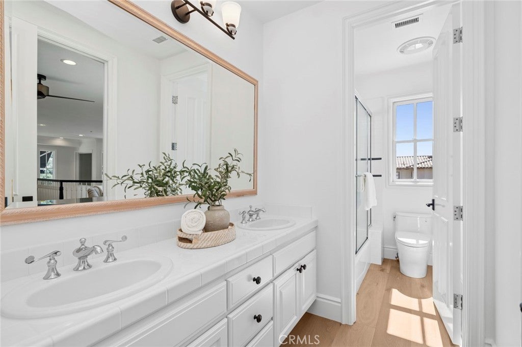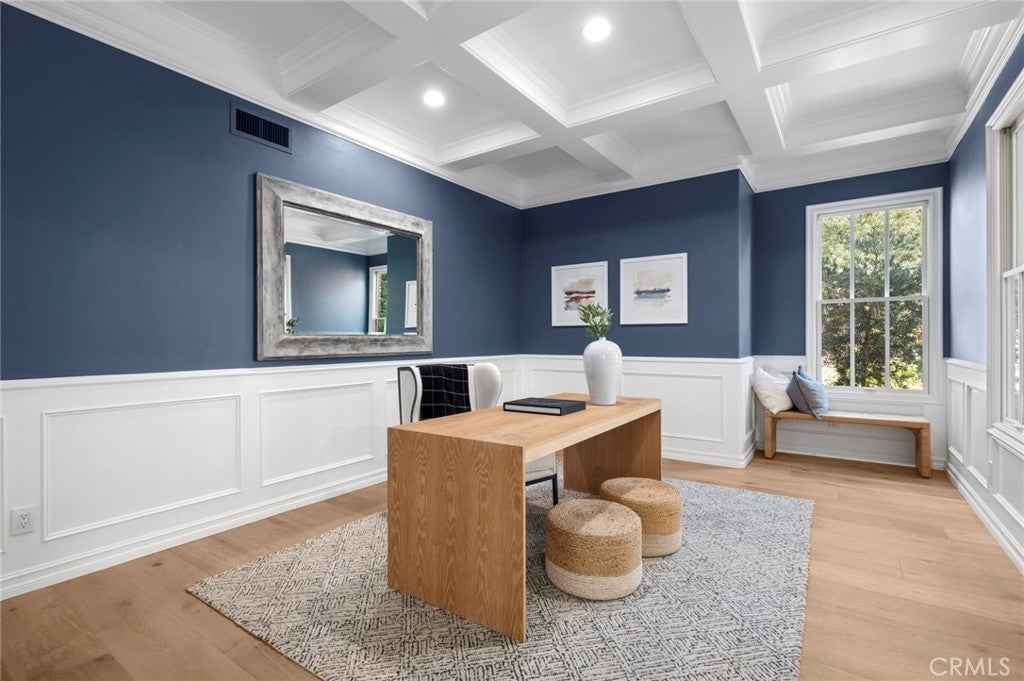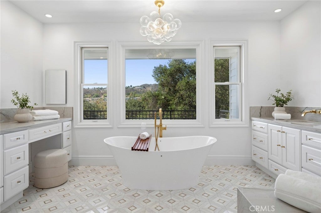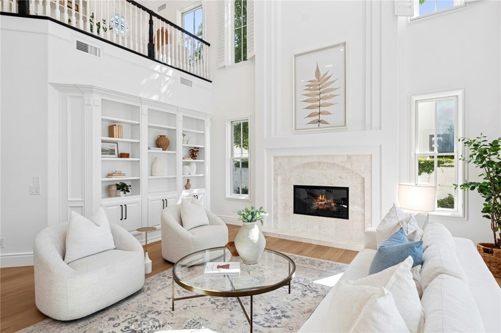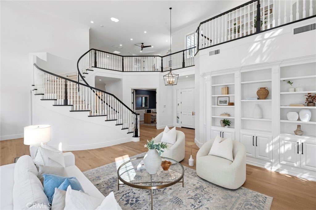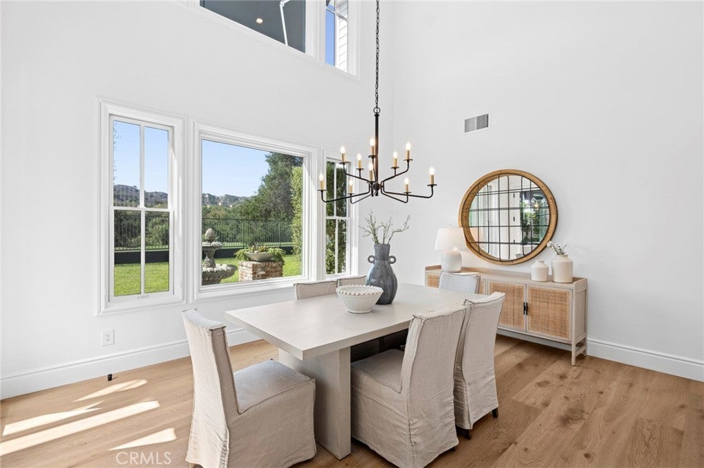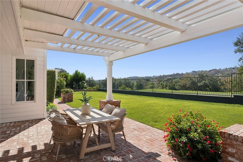 SWEEPING VIEWS And LOCATION! Amazing Sunset and Golf Course Views Overlooking the 18th Fairway of the North course at Coto de Caza. One of only 11 homes on a single loaded cul de sac street with a short walk to the Coto de Caza Golf and Racquet Club. The Simi-custom Home was designed and built by Stonefield Development with a tradition of beautiful and unique architectural design and with exceptional quality features throughout like the solid core 8 ft. wood doors, dual staircases, and walk-out view balcony off the primary bedroom. Three gas-burning fireplaces. The exquisite residence delivers the ultimate in luxury with natural elements in its open light and bright 5000+ sq ft. The residence is graced with a two-story volume ceiling in the Entry, Formal Living, and Dining Rooms. Comforts include 5 spacious bedrooms, 4.5 bathrooms, 4-car garage, Library/Office, and large open upstairs lounge area for the family or office plus A Separate area for reading/ study. Many large Picture windows (9 are new and installed by Anderson). The home has many modern upgraded features, including wide plank wood flooring throughout (except the two staircases), which has beautiful wool carpeting. All new Toto toilets, including a bidet washlet, are in the primary bathroom. Completely remodeled master bath with Newport Brass Fixtures, solid slab stone shower, and counter tops, a free-standing tub for that soothing bath while enjoying the stunning views. The open Kitchen has a large walk-in island with a Viking cook top, two new Viking dishwashers, and a spacious nook with a large picture window to enjoy the views of the golf course and hills. Opening to a great family room with a new floor-to-ceiling custom lime stone fireplace with custom mantel. The French door leads to the partially covered and open patio, a lush backyard with panoramic views. A convenient back staircase leads to the 2nd level, with 4 spacious bedrooms, including the main suite has a wall of windows for the views. a fireplace, and a walk-out balcony. All new Emtec black hardware and new black thresholds throughout, Newer paint inside and out. Epoxy Garage floors and storage cabinetry. All new lighting inside and out. Many electrical outlets were replaced. New awnings on 7 windows, updated landscaping. Some roof areas replaced, new rain gutters were installed, and so much more. Must see to appreciate.