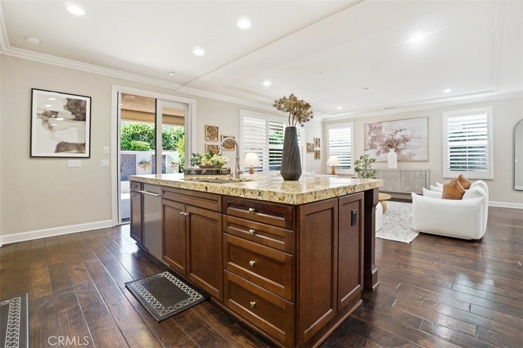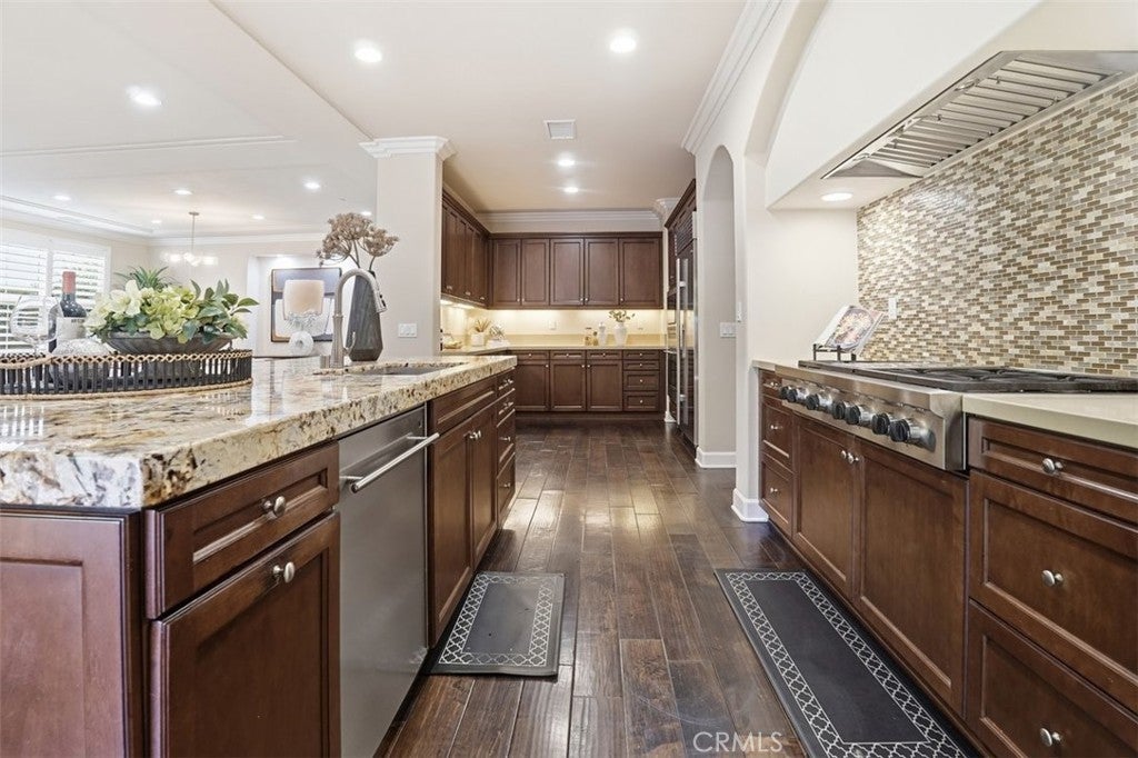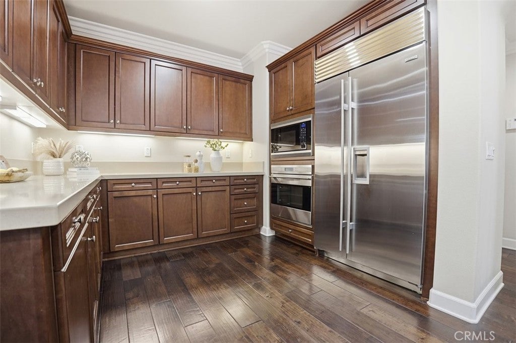 Don't miss out Woodbury's final neighborhood ,La Cresta --The Brookfield Residential home is located in the southeast corner of Woodbury, near Trabuco and Sand Canyon.This stunning home with PAID-OFF Solar Panels and Whole House Soft Water System. Builder upgraded 4-bedroom,5-bath house.Full suite on the ground floor and three bedrooms upstair.The living room is directly beyond the dining room. It has several large windows facing the back and side of the house to bring in a lot of light. The luxury Chef's kitchen, complete with WOLF cooktop, microwave, oven and double-door Sub-Zero refrigerator.Oversized island is huge and can easily seat four, while still accommodating the sink and plenty of prep space. A large kitchen extended area and a large walk-in pantry that offers plenty of storage.The peaceful backyard with water feature and ample patio space with BBQ grill cooktop and mini refrigerator for relaxing and dining outside. Downstair bedroom that could easily function as master suite. The room includes a built-in desk along the wall, a big shower and a generous walk-in closet. Upstairs, offering a great large loft upstair with family theater audio speaker.It serves as a central point for the second floor, with the bedrooms all coming off of it from different sides. Immediately at the top of the stairs is an optional work station with a built-in desk.The laundry room is massive and includes a sink, several cupboards and a huge linen closet. House is just a minute away from the playground and swimming pool, few steps away from jeffery open space trail, park, sport courts, and picnic areas.Woodbury residents will have access to Woodbury's 16 neighborhood parks and gardens, The commons- a 30 acre central gathering place with athletic fields. Easy access to 133 & 5 fwys. Only minutes away from Woodbury Town Center Plaza, Irvine spectrum and great park amenities.