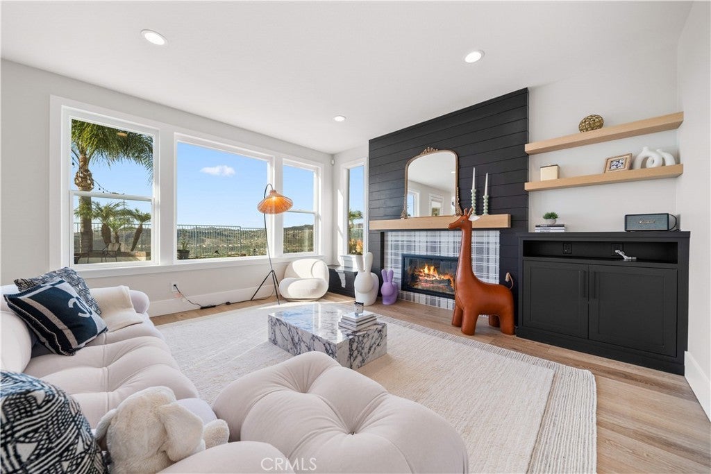 Welcome to 5 Via Taliana — an exceptionally rare offering on one of the most sought-after, view-facing streets in OC. The BEST VIEWS of the rolling hills, city lights all the way to the OCEAN on a clear day! Sitting on an oversized premium lot of over 10,000 square feet, especially hilltop cul-de-sac location. This house making this a truly unique opportunity. Every inch of the home has been meticulously upgraded with high-end finishes, from thoughtfully designed landscaping to luxurious indoor enhancements — blending beauty, comfort, and functionality. The home offers a modern open-concept layout with soaring ceilings, designer lighting, and spacious living areas. The chef’s kitchen is the heart of the home,giant honed marble kitchen island highlight this exquisite home. Organic materials such as real aged French oak floor create a sophisticated ambiance. The open concept living areas with views of the backyard and pool are complete with newly stunning kitchen, which boasts professional grade GE Cafe appliances with 48” range, built in refrigerator, hidden microwave, beverage fridge and custom walk-in pantry. The master bedroom includes a sitting/workout room, 2 spacious walk-in closets, along with an ensuite that is awe inspiring, which displays an extravagant giant glass walled in dual shower enclosure, soaking tub & custom cabinets; all situated to take advantage of the beautiful ambience & views outside. The floor plan is ideal with downstairs, ground floor bedroom, bathroom, separate office and 3-car garage. Additional upgraded features include a whole house water filter, tankless water heater, re-piping throughout & thermostatic valve in master shower for one touch temperature. Residents can enjoy resort-style amenities, including a pool, clubhouse, BBQ area, dog parks, sports courts, and watch the amazing sunset. Best price value in the whole area. Huge back yard with city lights view, you can have sunset view every day!