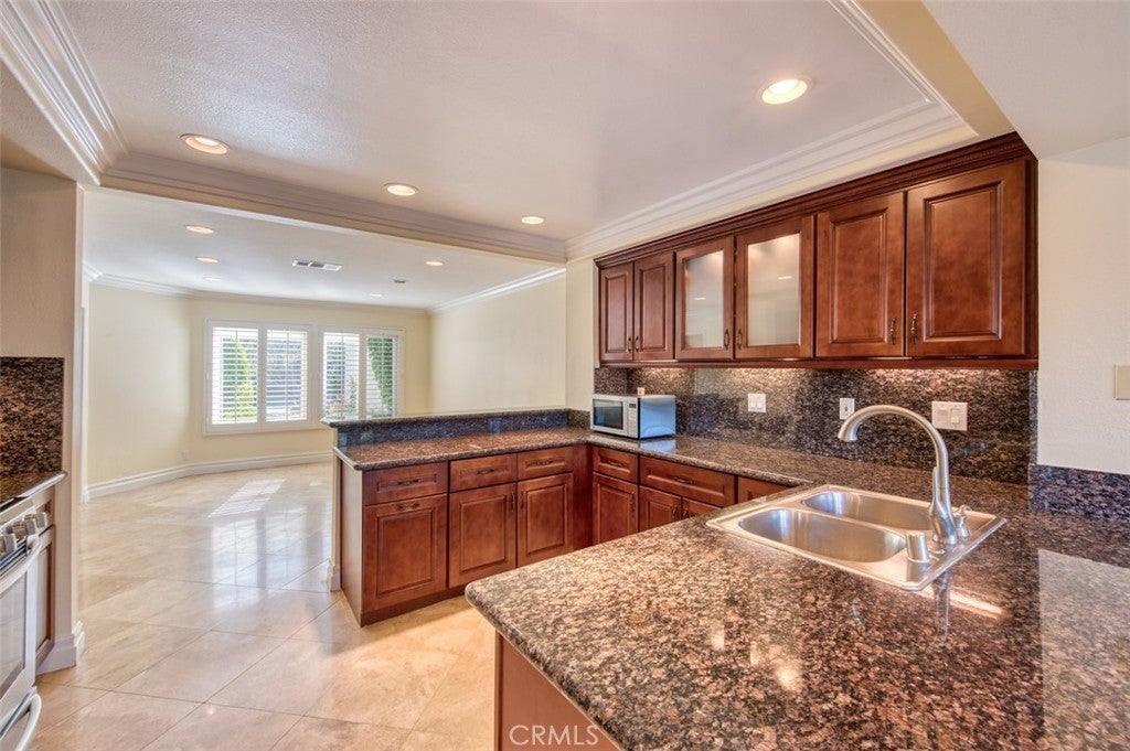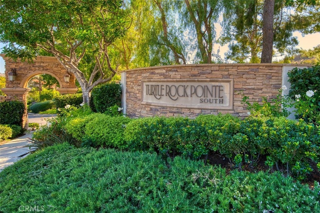 This remodeled Mediterranean style home is on a quiet cul de sac of the gated community of Turtle Rock Pointe. The home is surrounded with beautiful, lush green landscape. The open floorplan offers plenty of natural light and ocean breeze. The foyer invites you to a large living room with soaring ceilings, a custom-made fireplace, a dining room with French windows, travertine flooring, and interior fresh painted wall and ceilings. The gourmet kitchen comes with cherry wood cabinets and stainless-steel appliances and a new Samsung refrigerator. The nook area, dining, and living room are all facing the backyard with a large travertine flooring patio, raised planters, and sitting areas. A brand-new water heater, furnace, and new Epoxy floor. The home comes with an ideal outdoor space for entertaining or relaxing. The beautiful inviting custom-made hardwood staircase has wrought iron railings and leads you upstairs to an open space hallway with hardwood flooring and travertine. A desired location, close to the beach, freeways, John Wayne Airport, Fashion Island, South Coast Plaza and more.