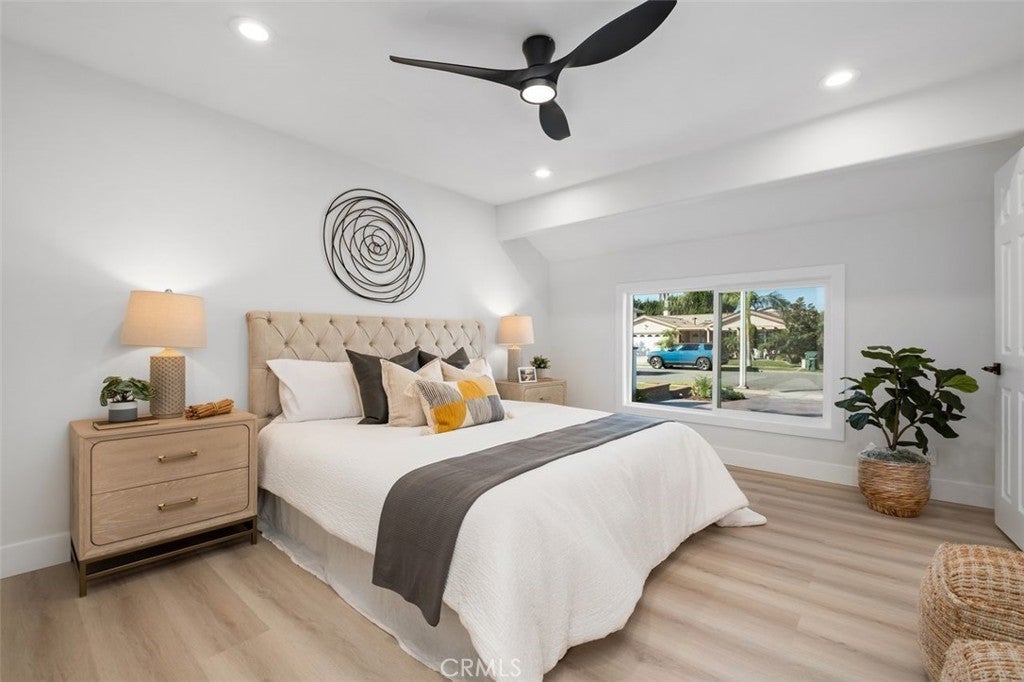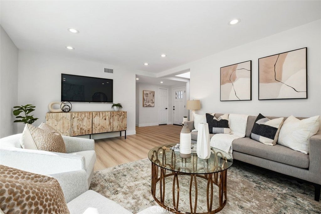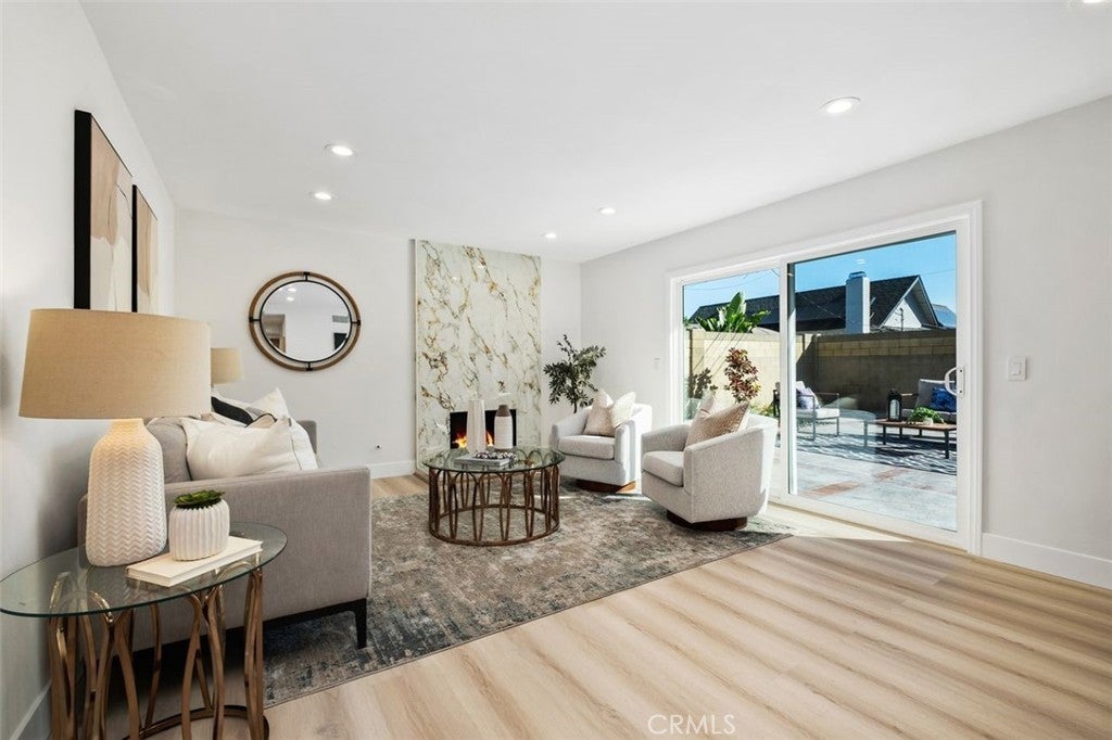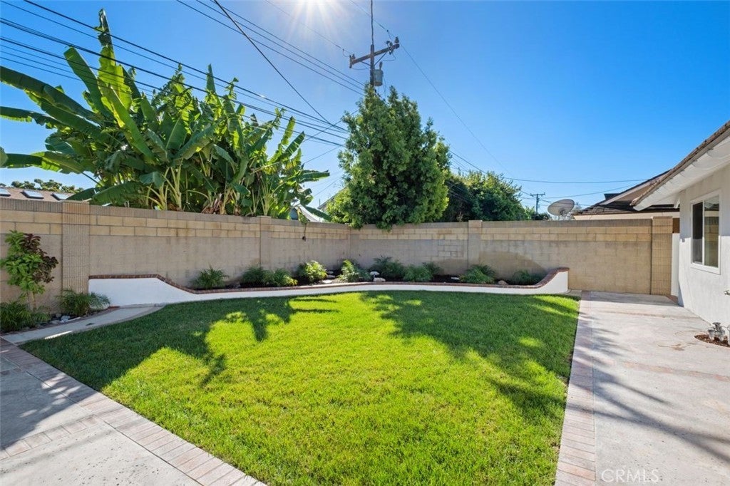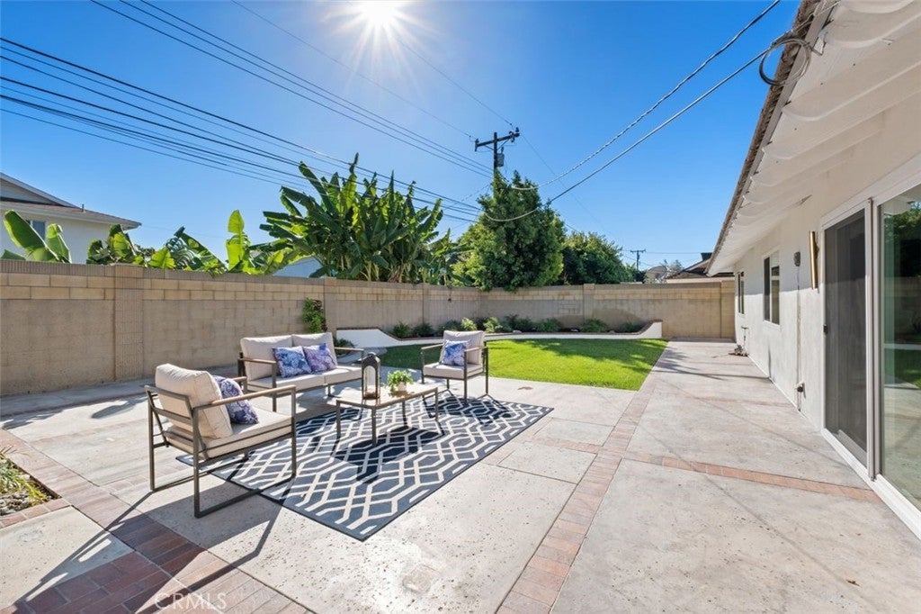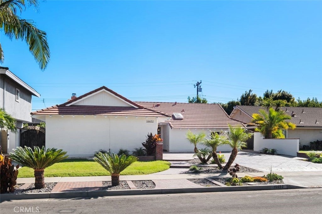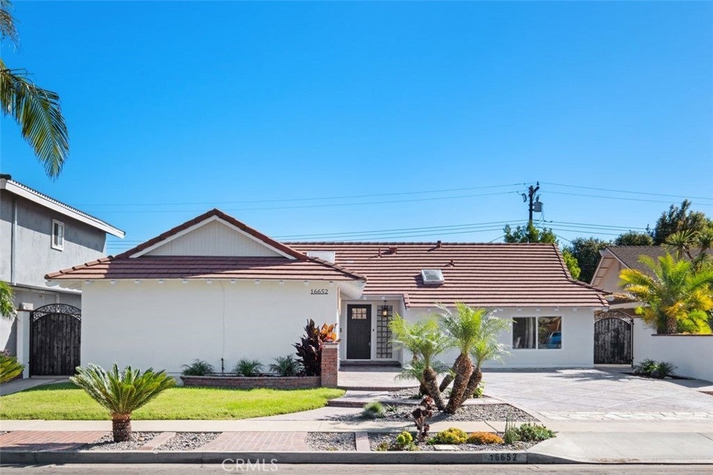 Discover this beautifully remodeled single-level home, offering modern design and open-concept living in a peaceful Huntington Beach neighborhood. Highly sought after for its SINGLE-LEVEL layout, this home has been thoughtfully updated inside and out, with all work, including Building, Electrical, Mechanical, and HVAC/Plumbing, completed under city PERMITS. The interior showcases brand new modern cabinetry, quartz countertops and backsplash, with stainless steel appliances in a bright, upgraded kitchen. Brand new vinyl flooring, recessed lighting, and energy-efficient dual-pane windows and patio doors create a clean, contemporary look throughout. The primary suite features a spacious reconfigured double shower with accent tile wall and elegant finishes, while both bathrooms boast double vanities, frameless glass, and premium fixtures. Other upgrades include new skylights, updated electrical and plumbing systems, a new HVAC system and ducting, and complete interior and exterior paintwork. Enjoy outdoor living in the large, freshly landscaped backyard, complete with new grass, palms, and irrigation, making it a perfect space to relax, entertain, or even add a future pool. With a 2-car attached garage and an oversized driveway, this home provides ample parking, including space for an RV, adding both convenience and value. This modern, turn-key single-level home combines stylish upgrades with comfort and functionality, just minutes from parks, schools, and Southern California's Sunny Beaches.