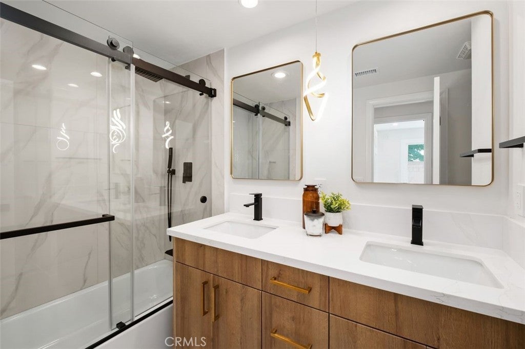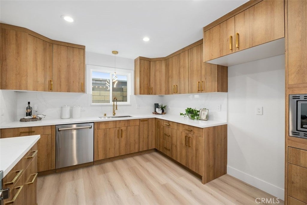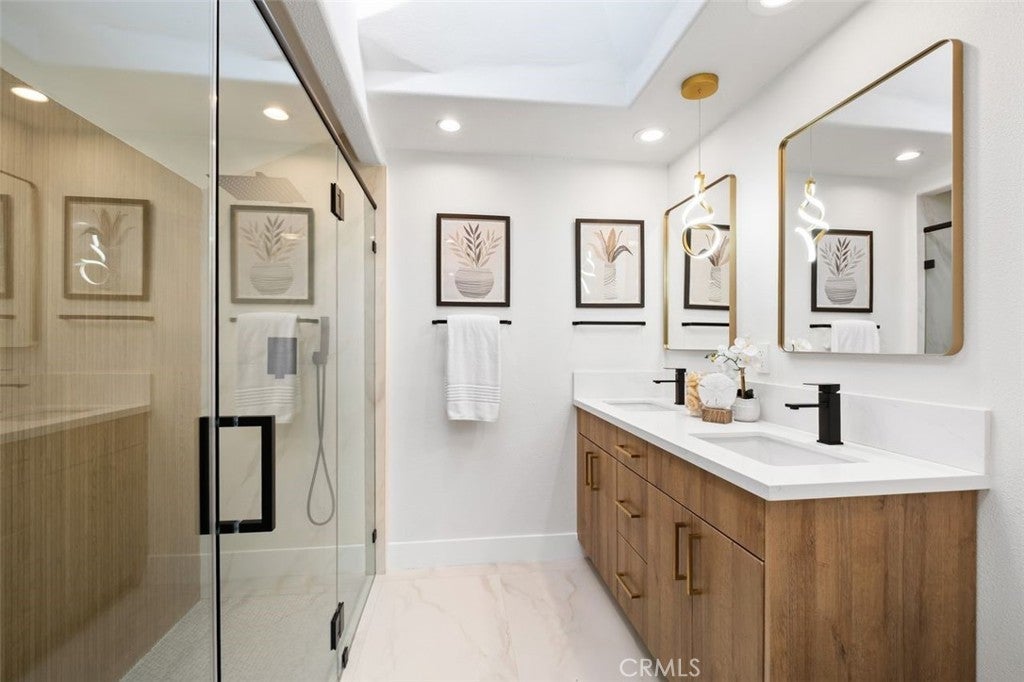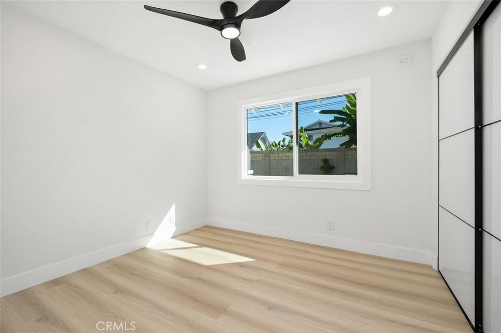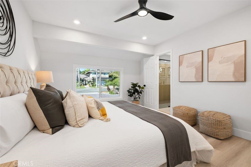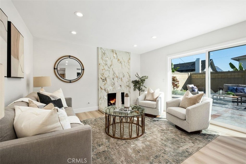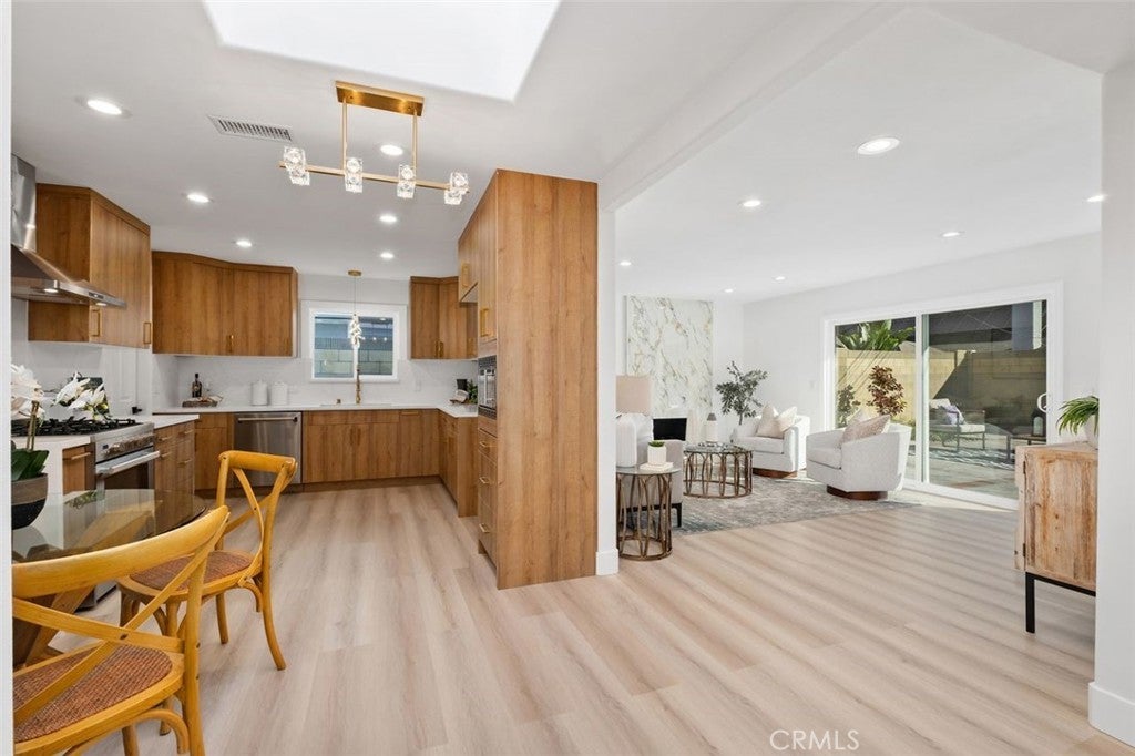 Discover this beautifully remodeled single-level home, offering modern design and open-concept living in a peaceful Huntington Beach neighborhood. Highly sought after for its SINGLE-LEVEL layout, this home has been thoughtfully updated inside and out, with all work, including Building, Electrical, Mechanical, and HVAC/Plumbing, completed under city PERMITS. The interior showcases brand new modern cabinetry, quartz countertops and backsplash, with stainless steel appliances in a bright, upgraded kitchen. Brand new vinyl flooring, recessed lighting, and energy-efficient dual-pane windows and patio doors create a clean, contemporary look throughout. The primary suite features a spacious reconfigured double shower with accent tile wall and elegant finishes, while both bathrooms boast double vanities, frameless glass, and premium fixtures. Other upgrades include new skylights, updated electrical and plumbing systems, a new HVAC system and ducting, and complete interior and exterior paintwork. Enjoy outdoor living in the large, freshly landscaped backyard, complete with new grass, palms, and irrigation, making it a perfect space to relax, entertain, or even add a future pool. With a 2-car attached garage and an oversized driveway, this home provides ample parking, including space for an RV, adding both convenience and value. This modern, turn-key single-level home combines stylish upgrades with comfort and functionality, just minutes from parks, schools, and Southern California's Sunny Beaches.