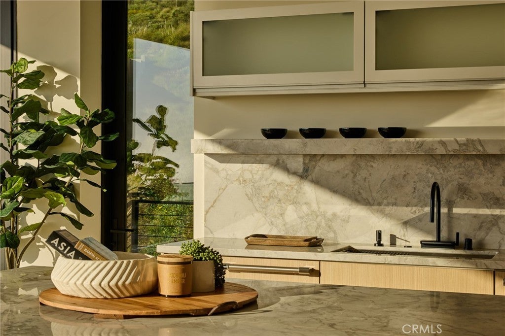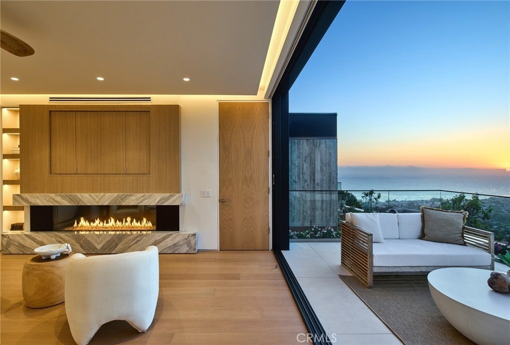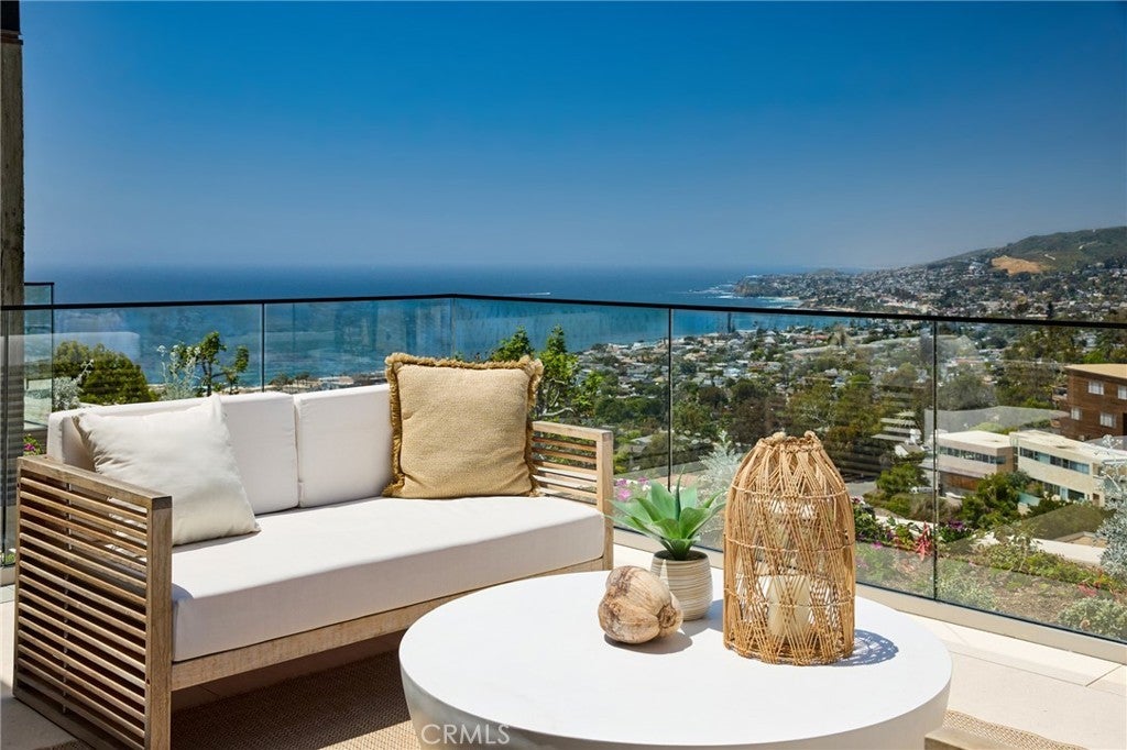 A scenic expanse of coastal life and the sparkling Pacific unfold before a rare 52’ of unobstructed view frontage, crowning this newly constructed Contemporary-style residence. Every aesthetic and structural element was considered in composing this collection of elegant, yet comfortable spaces, along with the value of future opportunities for an expanded domain, incorporating additional living accommodations on-site. The offering includes fully approved plans and permits to build an 850-sq.- ft. dwelling (ADU) with sweeping views and convenient accessible parking located just above the parcel on Crest View. A significant portion of the ADU preparation has already been completed. The 3,215 sq.-ft. home with four bedrooms, four en-suite baths, a powder bath, an open living room and kitchen, and a formal dining room and bar is a feat of technical engineering – carefully executed without a single square foot of wasted space. All of the living areas present experiences enhanced by captivating views through ‘walls’ of glass, and access to generous terraces surrounded by ‘floating’ gardens. An abundant assemblage of amenities were employed to enrich the inhabitants’ lifestyle opportunities – a small selection includes: generous appointment of White Oak, Limestone, imported slab stones, Cleaf Italian cabinetry, and a ‘floating’ system of walls and soffits with concealed lighting; resort-inspired baths in every suite; three Western pocket doors spanning 32’ and 22’; an 8’ linear fireplace in the main living room; Thermador appliances; service pantry equipped with built-in coffee/espresso and microwave/warming; an entry-level guest suite; a stunning primary suite with a statement bath clad almost entirely in book-matched slab stone with a free-standing soaking tub, a walk-in wardrobe, and a 6’ linear fireplace. Additional technical advancements and offerings include construction comprised of 70% concrete and steel with the application of 40 caissons; an elevator servicing all four levels; a 16’ two-car garage with capacity for two lifts for additional vehicles; four-zone HVAC; home automation for light, sound, and window coverings; and a custom-built exterior steel stair enabling access to the uppermost point of the premises – affording a spectacular panorama. This symphony of refined design and architectural sophistication delivers an environment to enjoy the benefits of thoughtful amenities in concert with the splendor of the natural setting.
