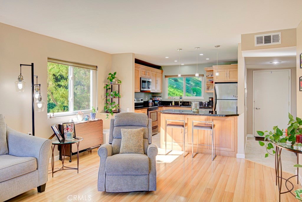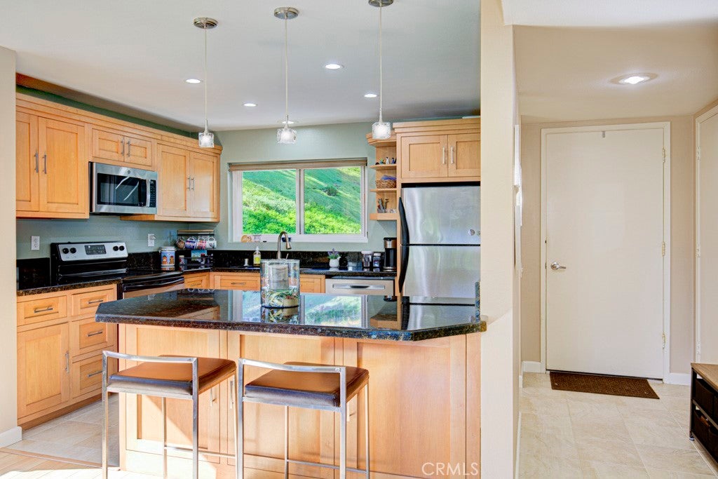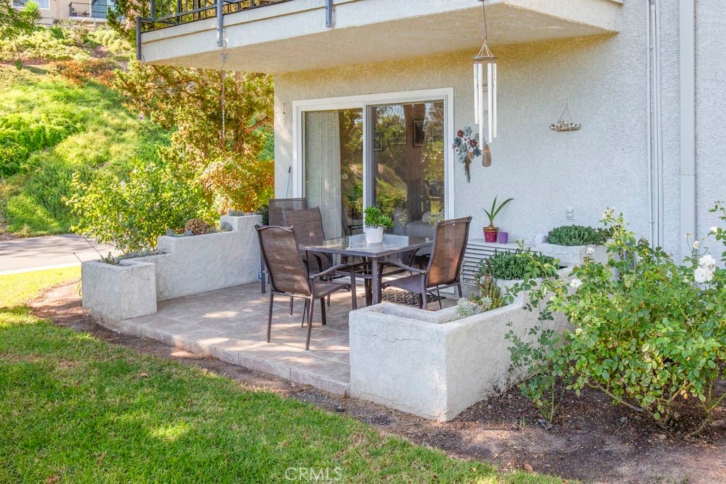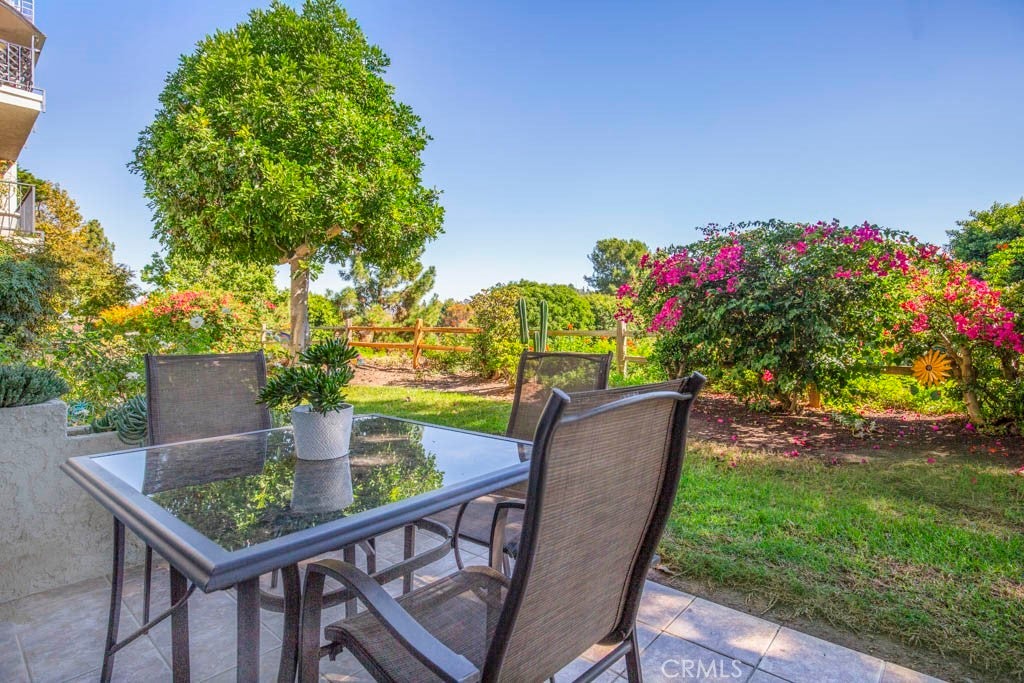 Welcome to 3338-1G Punta Alta – a two-bedroom, two-bath, ground floor end-unit ARAGON residence in the Laguna Woods senior community. This home has been tastefully upgraded to create a charming and inviting living environment. Being an end unit allows for one less common wall and an additional window in the living room. Situated centrally in the “Village”, this residence is far from busy roads and noisy highways. The kitchen has been fully remodeled with the original wall separating the kitchen from the living room replaced by an island that has seating for 2-3 and supplemental cabinet storage. Additional kitchen features include granite countertops, stainless steel appliances, soft-close cabinet doors and drawers and a pots and pans drawer with convenient pull-out shelving. Bonus features throughout include smooth ceilings and dual-pane windows. The rear patio is accessible from the living room via a glass slider and is the ideal location for outdoor entertaining, dining and relaxing. Built-in planters on either side of the patio are a nice added touch. The patio boasts a lovely panoramic view of endless trees stretching into the distance. The primary bedroom shares this gorgeous view through large windows. The assigned carport is close by and offers additional cabinet storage. Do not miss this beautiful home!