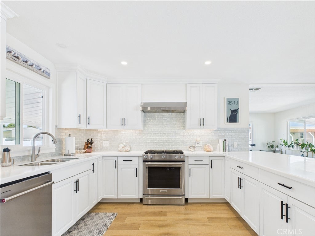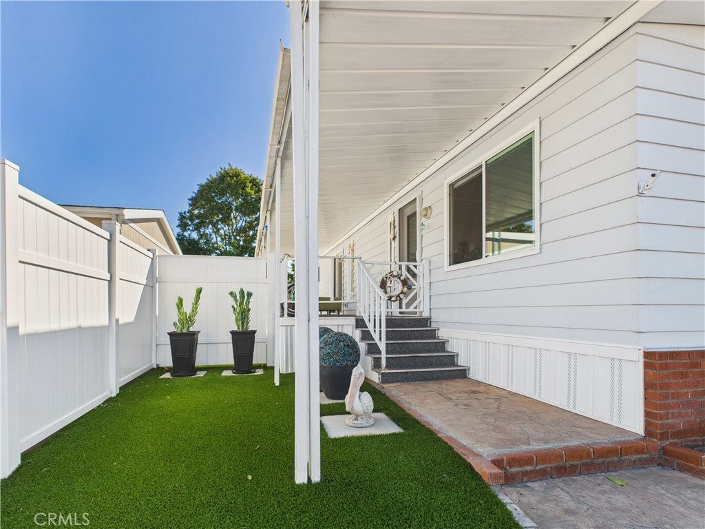 Welcome to this fully renovated home in the highly sought-after Huntington Shorecliffs community of Huntington Beach. Perfectly situated in a prime location within the community, this beautifully updated manufactured home offers convenience and comfort just moments from the beach. The home sits near one of the park’s common areas featuring a spa, barbecue, and seating area ideal for gatherings and relaxation. A pedestrian-only entry and exit gate is located just across the street from a local park and about a block away from Pacific City, offering premier shopping, dining, and entertainment — all within walking distance. Step inside and you’ll find a bright, open floor plan filled with abundant natural light and thoughtfully designed living spaces. The home features new double-pane windows throughout, updated flooring, and a newly remodeled kitchen complete with stainless steel appliances, modern cabinetry, and upgraded counters. Adjacent to the kitchen is a dedicated laundry area with sink and cabinetry for added convenience. The updated bathrooms have been tastefully designed, and both bedrooms feature generous closet space including walk-in options. Enjoy seamless indoor-outdoor living with a large covered side porch, perfect for relaxing or entertaining, which opens to a spacious private patio and yard area. The exterior has been professionally landscaped with low-maintenance design, and the home also includes central A/C, providing year-round comfort. Huntington Shorecliffs residents enjoy a convenient pedestrian gate with direct access to Pacific City, the beach, and nearby shops and restaurants. The community also offers two pools, additional spas, a clubhouse, fitness center, and billiards and poker rooms. This is a wonderful opportunity to enjoy laid-back coastal living with generous indoor and outdoor space, all within one of Huntington Beach’s most desirable manufactured home communities.
