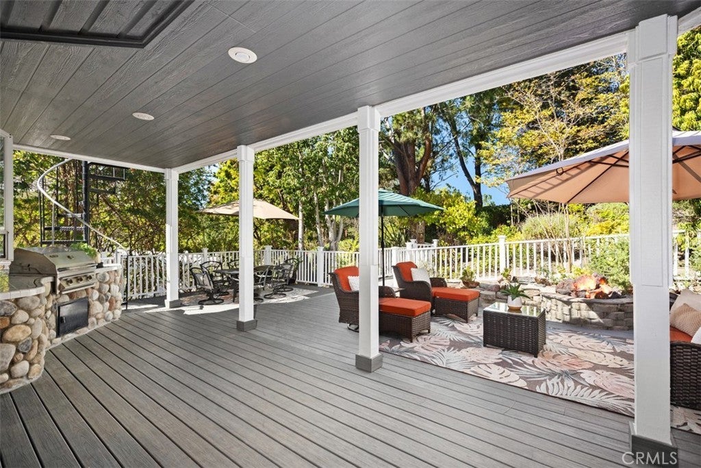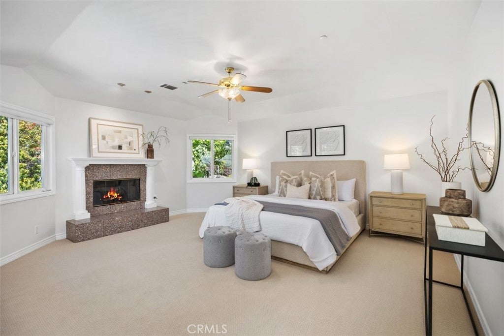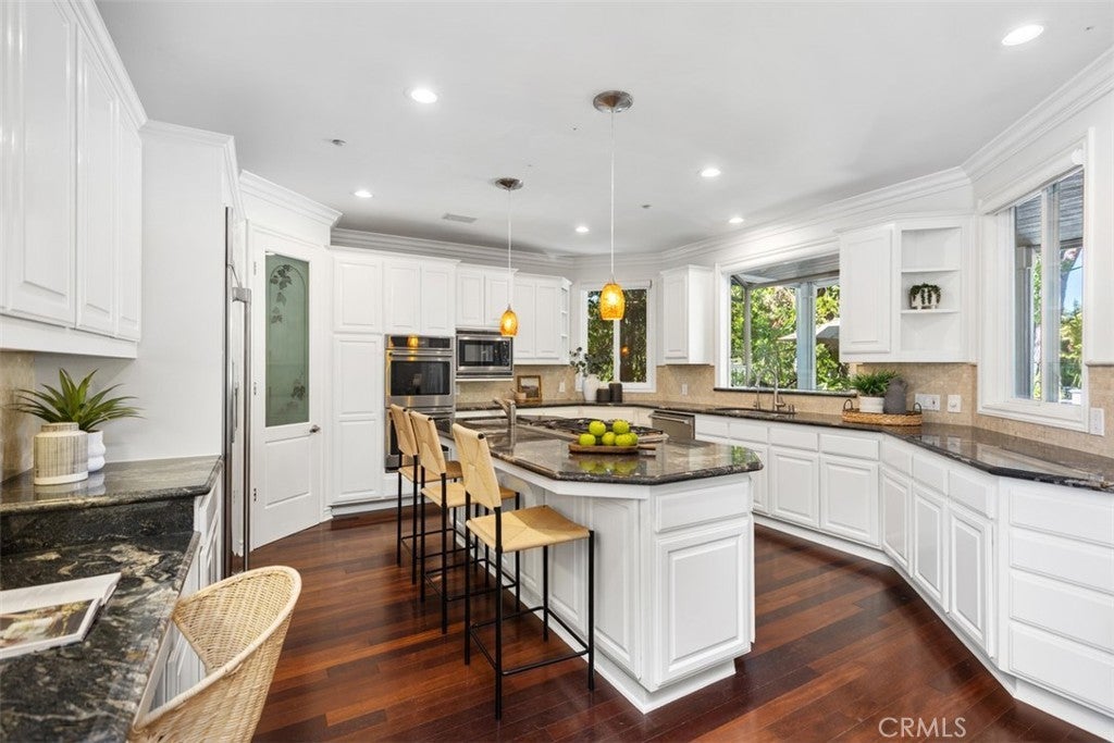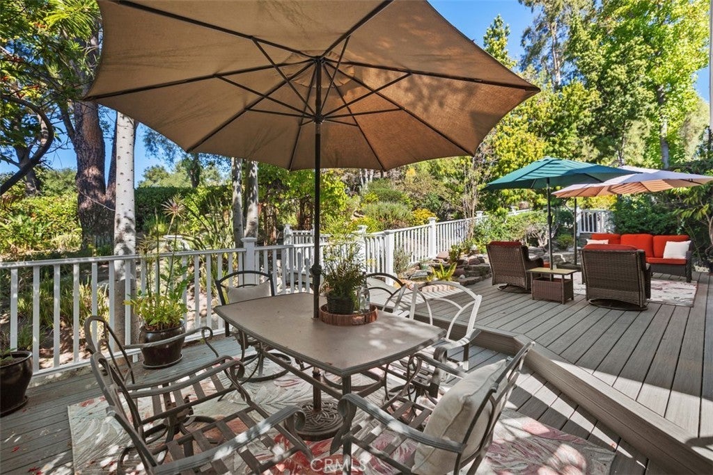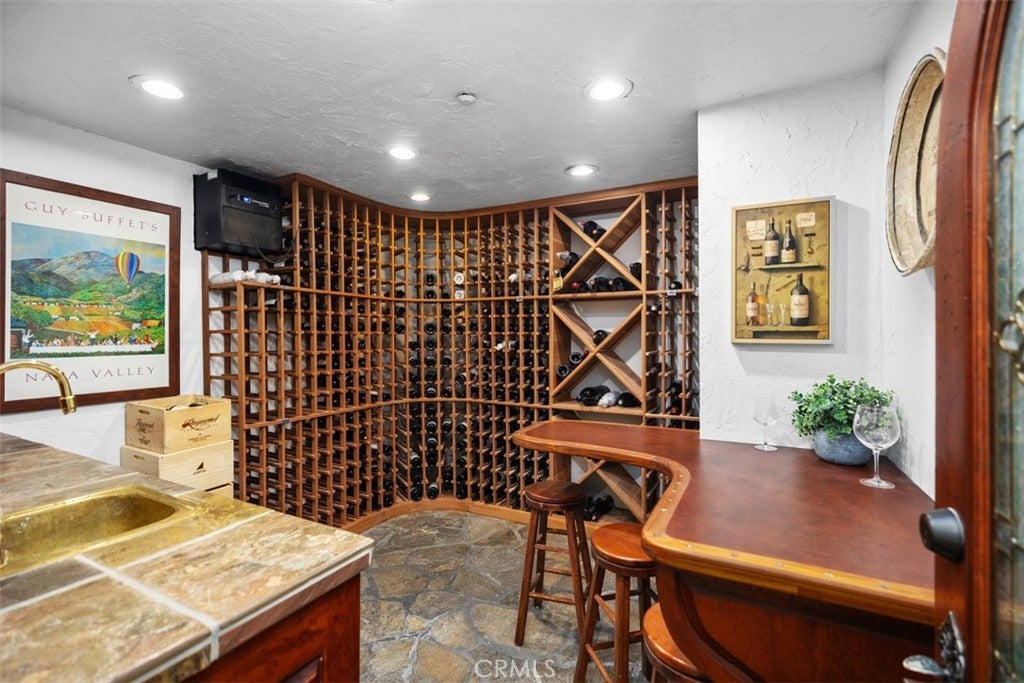 Offered for the first time, this custom 5-bedroom, 4-bath home is tucked within the Village of Coto de Caza, surrounded by mature trees and the natural tranquility this community is known for. A bright and welcoming entry showcases 3 large front windows and a graceful curved staircase, setting an elegant tone from the moment you arrive. The formal living room features a handsome paneled fireplace and a stunning built-in 200-gallon salt water aquarium, complete with high-end filtration system. This creates a one-of-a-kind focal point that brings life and calm to the space. Just beyond is the large formal dining room offering the perfect backdrop for holidays and gatherings. A main level office or bedroom with a full bath provides flexibility for guests or a private workspace. The kitchen is generous in size, with an abundance of counter space, a large pantry, and views of the surrounding trees. It opens to the family room, where a classic brick fireplace adds warmth and character. From here, several doors lead out to the back newly built TREX deck, overlooking the peaceful garden and meandering path beneath mature oaks—a beautiful spot to unwind and enjoy the setting. A back staircase connects the family room to the WhisperKOOL temperature-controlled WINE CELLAR with handcrafted cherrywood cabinetry and a tasting table, ample racking and storage for an extensive collection—perfect for the wine enthusiast or entertainer. The OVERSIZED 3 car garage has an extra DEEP design with extensive cabinetry and storage. Upstairs, the primary suite features a brick fireplace, a walk-in closet, and another private deck overlooking the beautiful backyard. The upstairs laundry room includes a sink and built-in cabinetry for extra storage. There are also 3 more spacious sized bedrooms with generous closet space, complete with en-suite and Jack and Jill bathrooms. Additional highlights include a FULLY paid 5.6 kW solar panel array providing significant energy savings. For an additional membership fee, you can join the Coto De Caza Golf & Racquet Club. This will allow you to take advantage of all of the amenities including an AWARD-WINNING 36 HOLE GOLF COURSE, sports club and pool, tennis, sports classes, restaurants, and so much more. Set in one of Coto de Caza’s most charming and established neighborhoods, this home blends comfort, thoughtful craftsmanship, and the serenity of its natural surroundings—offering a truly special place to call home.