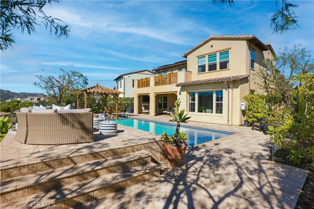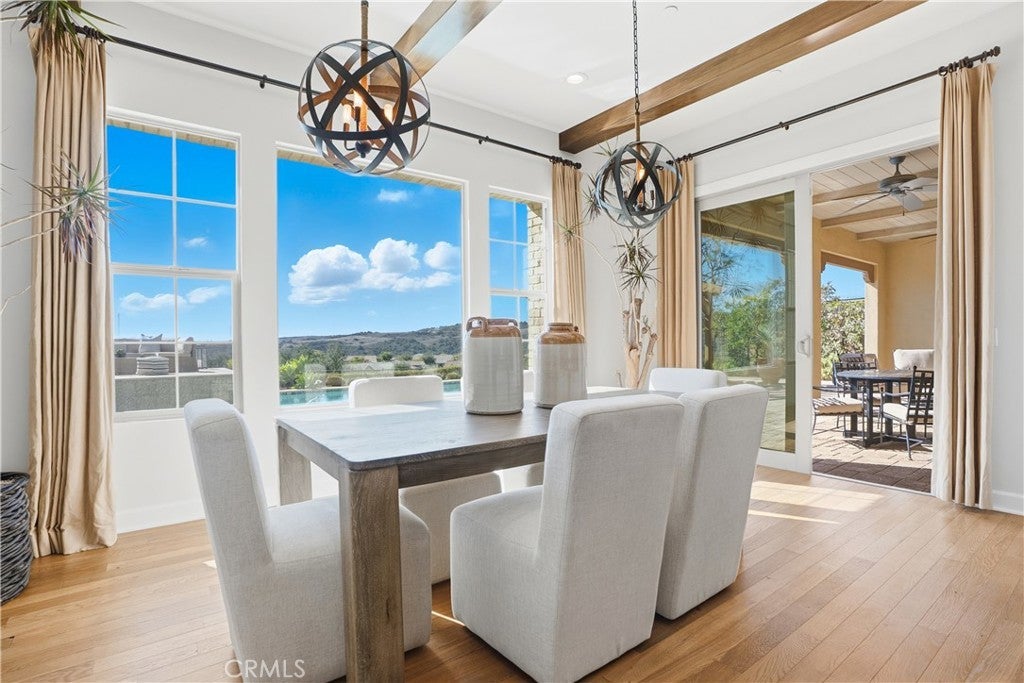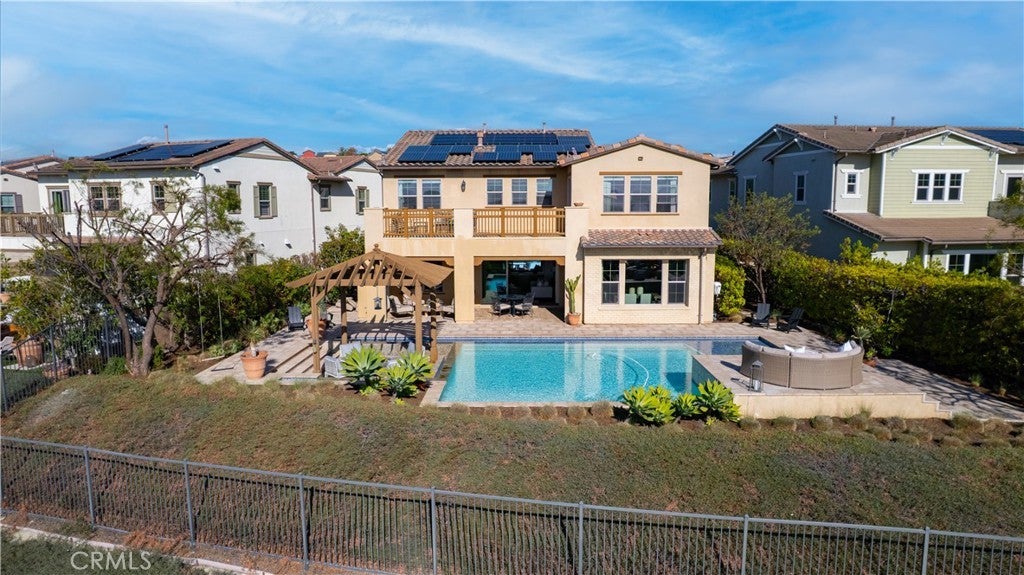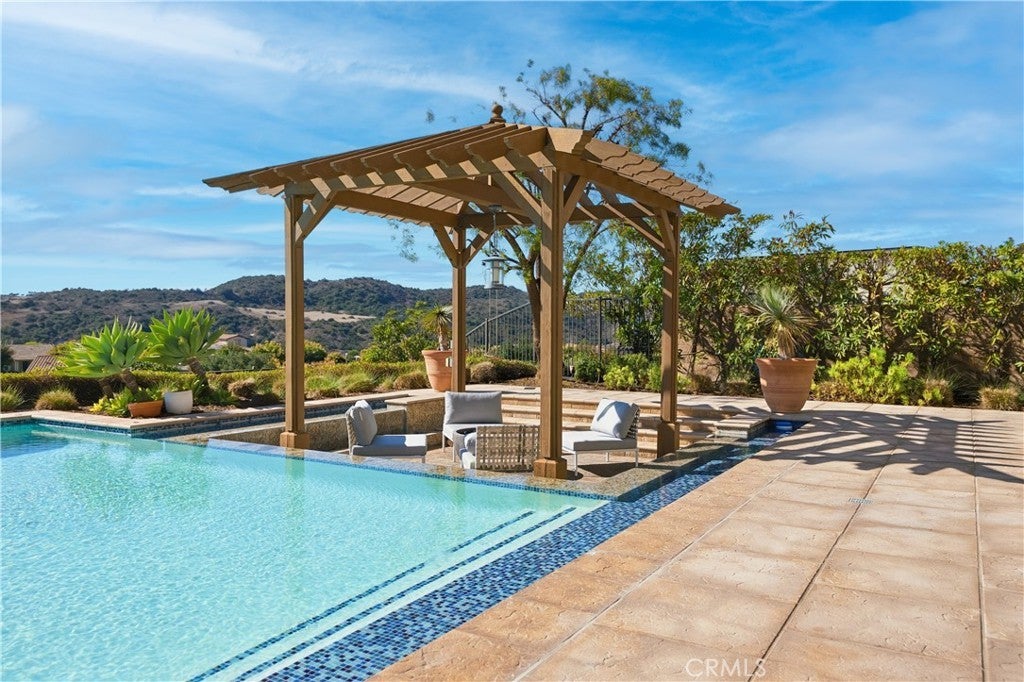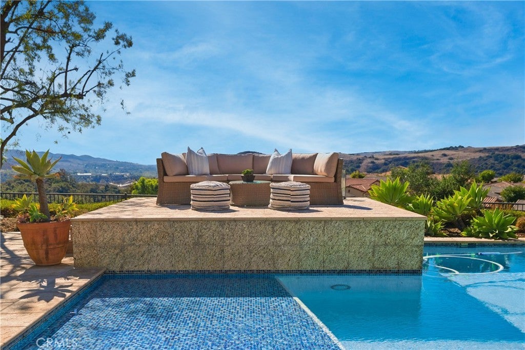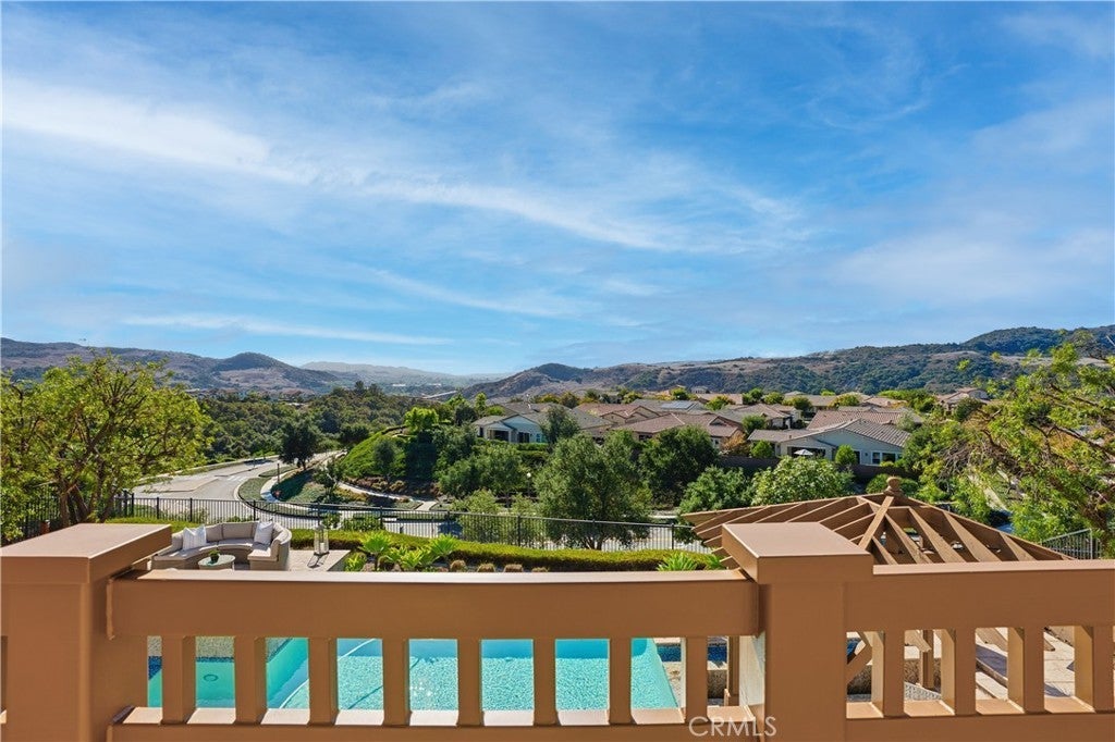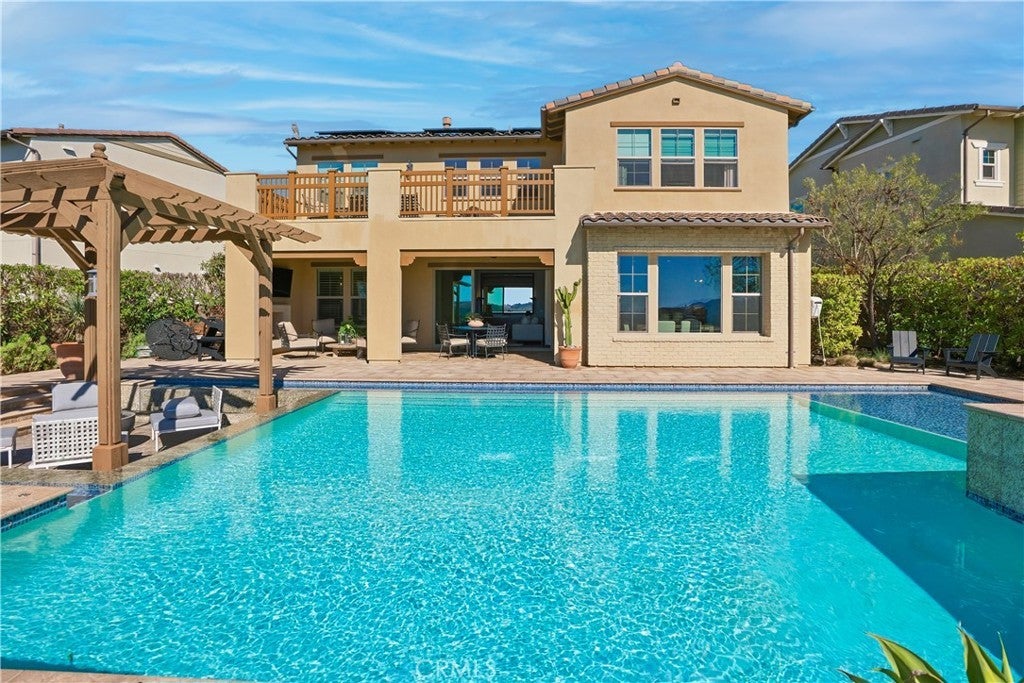 Looking for a pool VIEW home in Aubergine, right here in the award-winning community of Rancho Mission Viejo? This one’s a gem, tucked on one of the quietest view streets in RMV, where ocean breezes roll in every afternoon. It’s the kind of spot that reminds you why life in RMV feels like a staycation every day. This former MODEL HOME defines resort style living at its finest and is set on an 8,379 sq ft ideal lot. This professionally designed Adobe Ranch style model home showcases high-end craftsmanship and resort-style living in the heart of Rancho Mission Viejo. Featuring 4 bedrooms, 4.5 baths, a private office, and an upstairs loft, this residence blends sophistication with everyday comfort. Step inside to a grand entry with a sweeping iron staircase that sets the tone for elegance throughout. The chef’s kitchen impresses with a large kitchen island, walk-in pantry, custom maple shaker cabinetry, stainless steel appliances, upgraded quartz countertops, and a designer tile backsplash. The kitchen flows seamlessly into the spacious great room with fireplace and formal dining area, creating the perfect space for hosting and gathering. Upstairs, each bedroom features its own en-suite bath, while the primary suite offers a true retreat complete with a spa-inspired bath, expansive walk-in closet, and a private balcony overlooking ocean-facing sunsets toward Dana Point. Designed for the ultimate indoor-outdoor lifestyle, stacking glass doors open to an expansive California Room with fireplace and TV, extending to a private backyard oasis featuring a great size pool, sunken fire pit lounge, and panoramic quiet views. Every inch of this Tri Pointe model home is enhanced with designer upgrades, thoughtful details, and curated finishes offering a rare opportunity to own one of Rancho Mission Viejo’s most coveted showcase properties. The interior of the home was just painted as well as new carpet upstairs. Exclusive to Rancho Mission Viejo residents are all amenities in the Villages of Sendero, Esencia, Rienda, and future Villages. There are community amenities for all from breath-taking resort-style pools and spas, Esencia school K-8, community farms, fitness centers, guest house, putting green, bocce ball courts, tennis and pickle ball courts, playgrounds, coffee shop, fire pits, an arcade and so much more!
