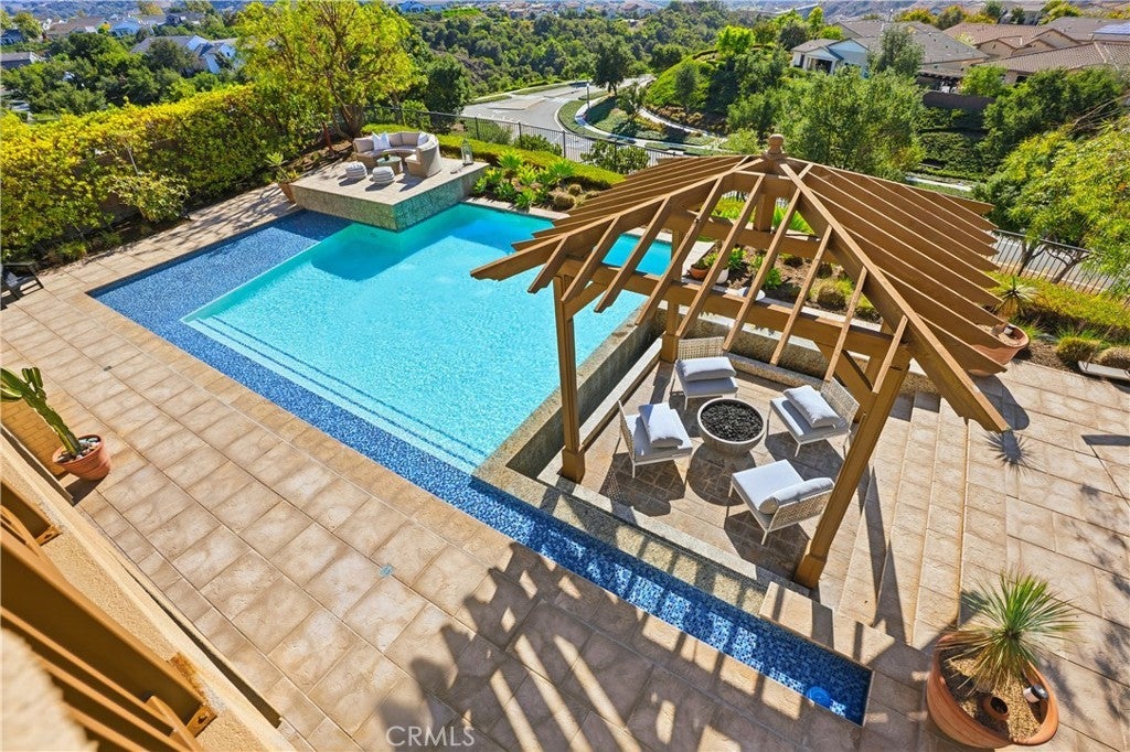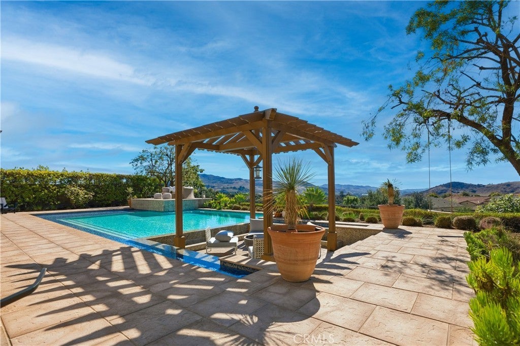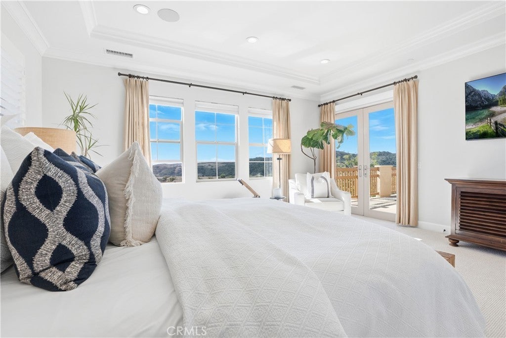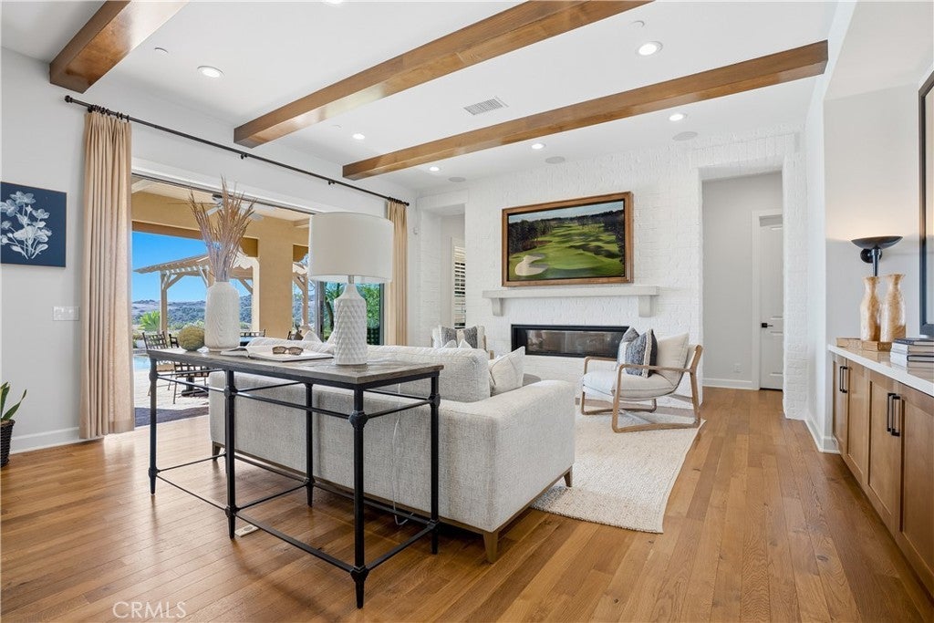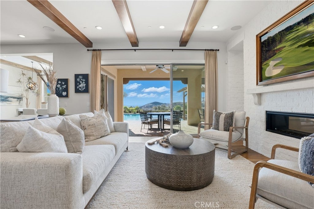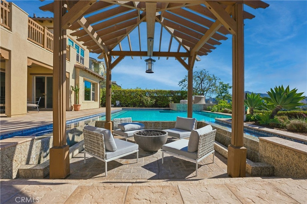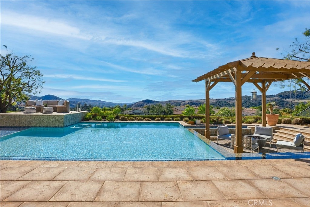 Looking for a pool VIEW home in Aubergine, right here in the award-winning community of Rancho Mission Viejo? This one’s a gem, tucked on one of the quietest view streets in RMV, where ocean breezes roll in every afternoon. It’s the kind of spot that reminds you why life in RMV feels like a staycation every day. This former MODEL HOME defines resort style living at its finest and is set on an 8,379 sq ft ideal lot. This professionally designed Adobe Ranch style model home showcases high-end craftsmanship and resort-style living in the heart of Rancho Mission Viejo. Featuring 4 bedrooms, 4.5 baths, a private office, and an upstairs loft, this residence blends sophistication with everyday comfort. Step inside to a grand entry with a sweeping iron staircase that sets the tone for elegance throughout. The chef’s kitchen impresses with a large kitchen island, walk-in pantry, custom maple shaker cabinetry, stainless steel appliances, upgraded quartz countertops, and a designer tile backsplash. The kitchen flows seamlessly into the spacious great room with fireplace and formal dining area, creating the perfect space for hosting and gathering. Upstairs, each bedroom features its own en-suite bath, while the primary suite offers a true retreat complete with a spa-inspired bath, expansive walk-in closet, and a private balcony overlooking ocean-facing sunsets toward Dana Point. Designed for the ultimate indoor-outdoor lifestyle, stacking glass doors open to an expansive California Room with fireplace and TV, extending to a private backyard oasis featuring a great size pool, sunken fire pit lounge, and panoramic quiet views. Every inch of this Tri Pointe model home is enhanced with designer upgrades, thoughtful details, and curated finishes offering a rare opportunity to own one of Rancho Mission Viejo’s most coveted showcase properties. The interior of the home was just painted as well as new carpet upstairs. Exclusive to Rancho Mission Viejo residents are all amenities in the Villages of Sendero, Esencia, Rienda, and future Villages. There are community amenities for all from breath-taking resort-style pools and spas, Esencia school K-8, community farms, fitness centers, guest house, putting green, bocce ball courts, tennis and pickle ball courts, playgrounds, coffee shop, fire pits, an arcade and so much more!