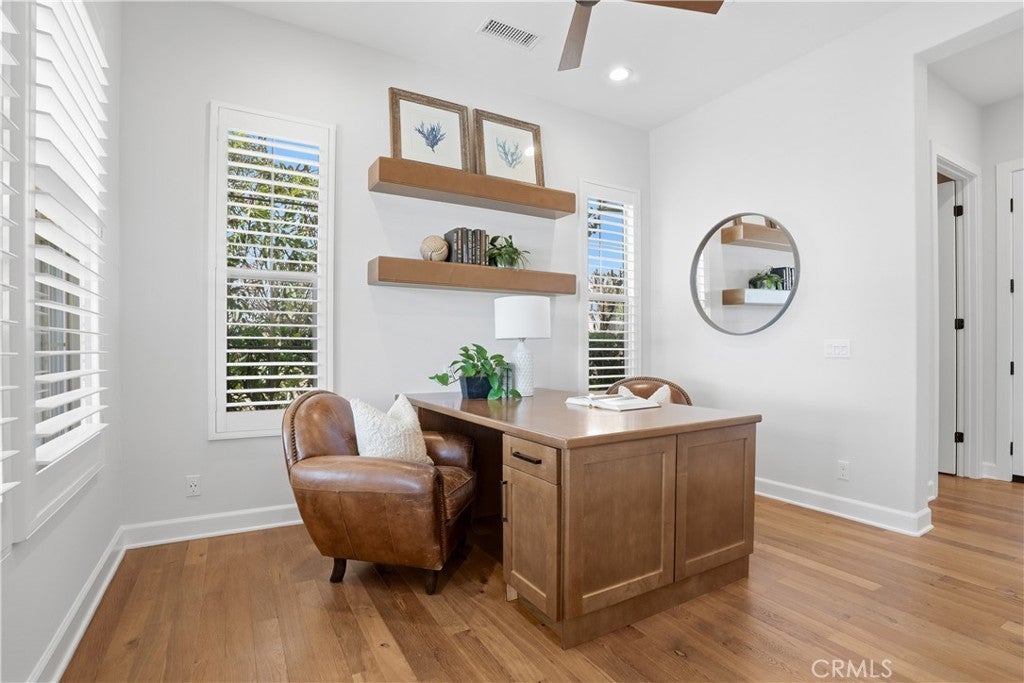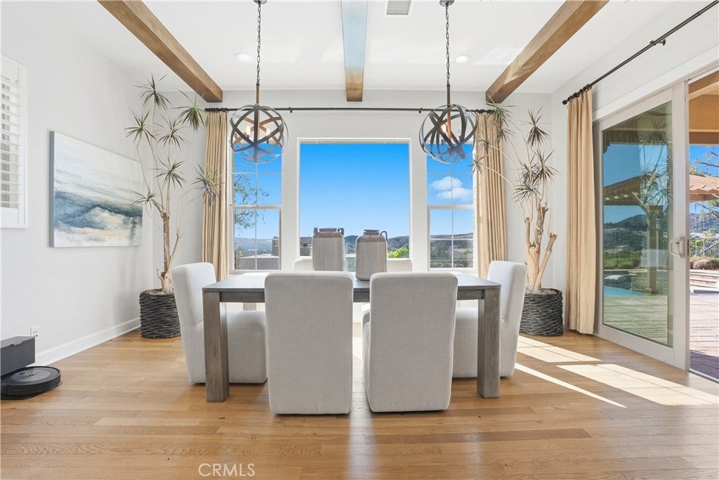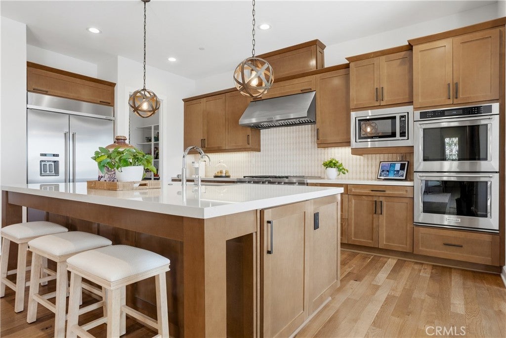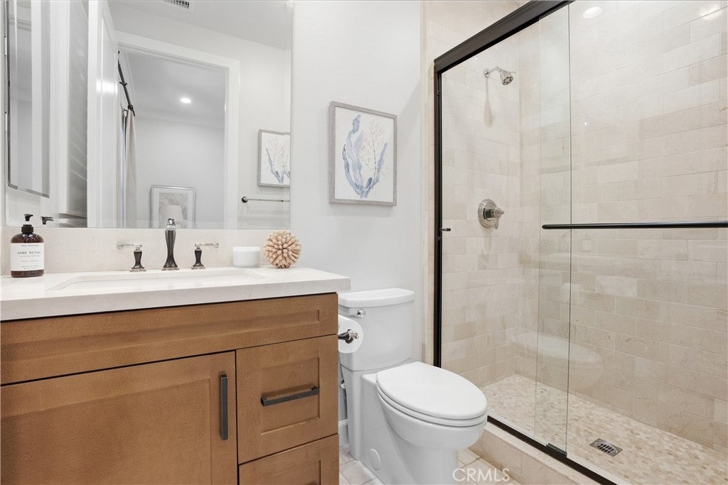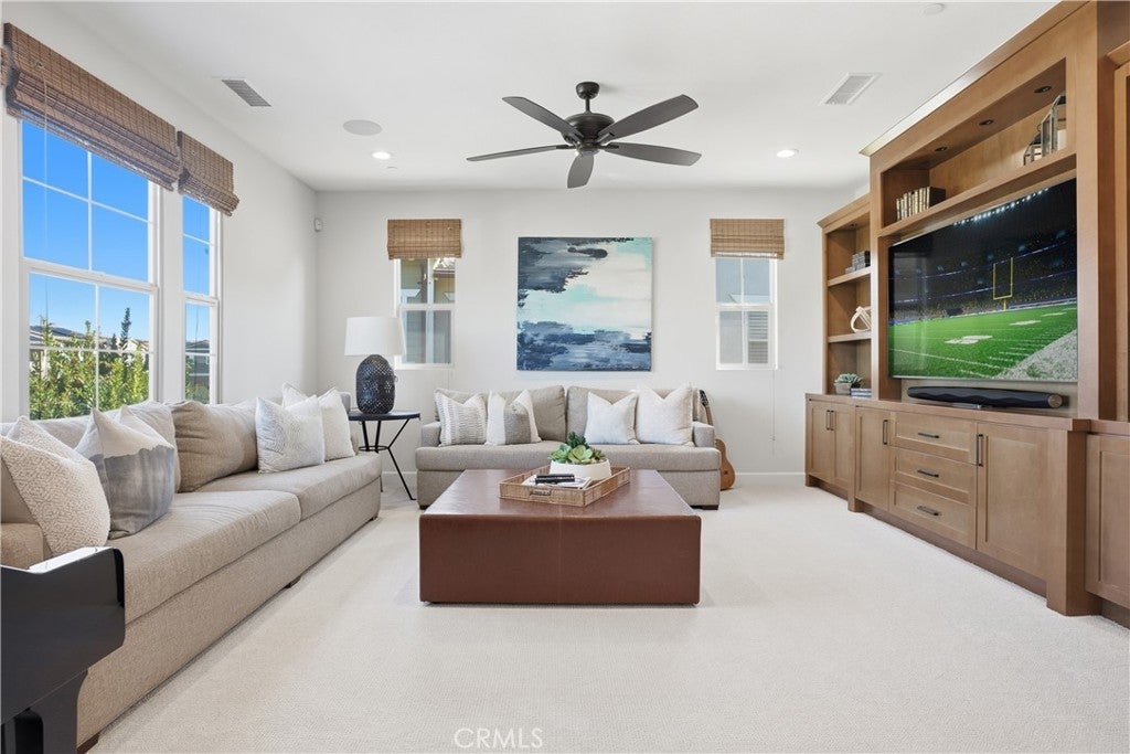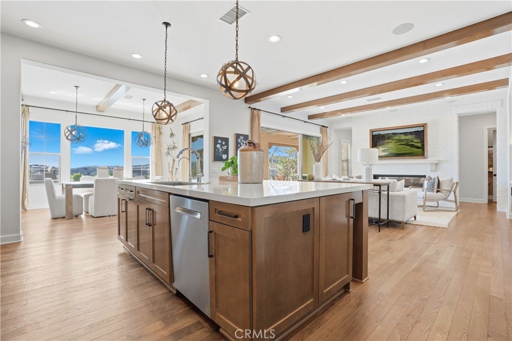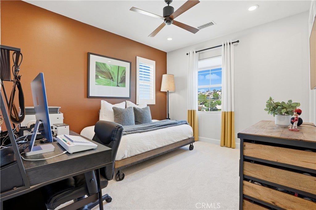 Looking for a pool VIEW home in Aubergine, right here in the award-winning community of Rancho Mission Viejo? This one’s a gem, tucked on one of the quietest view streets in RMV, where ocean breezes roll in every afternoon. It’s the kind of spot that reminds you why life in RMV feels like a staycation every day. This former MODEL HOME defines resort style living at its finest and is set on an 8,379 sq ft ideal lot. This professionally designed Adobe Ranch style model home showcases high-end craftsmanship and resort-style living in the heart of Rancho Mission Viejo. Featuring 4 bedrooms, 4.5 baths, a private office, and an upstairs loft, this residence blends sophistication with everyday comfort. Step inside to a grand entry with a sweeping iron staircase that sets the tone for elegance throughout. The chef’s kitchen impresses with a large kitchen island, walk-in pantry, custom maple shaker cabinetry, stainless steel appliances, upgraded quartz countertops, and a designer tile backsplash. The kitchen flows seamlessly into the spacious great room with fireplace and formal dining area, creating the perfect space for hosting and gathering. Upstairs, each bedroom features its own en-suite bath, while the primary suite offers a true retreat complete with a spa-inspired bath, expansive walk-in closet, and a private balcony overlooking ocean-facing sunsets toward Dana Point. Designed for the ultimate indoor-outdoor lifestyle, stacking glass doors open to an expansive California Room with fireplace and TV, extending to a private backyard oasis featuring a great size pool, sunken fire pit lounge, and panoramic quiet views. Every inch of this Tri Pointe model home is enhanced with designer upgrades, thoughtful details, and curated finishes offering a rare opportunity to own one of Rancho Mission Viejo’s most coveted showcase properties. The interior of the home was just painted as well as new carpet upstairs. Exclusive to Rancho Mission Viejo residents are all amenities in the Villages of Sendero, Esencia, Rienda, and future Villages. There are community amenities for all from breath-taking resort-style pools and spas, Esencia school K-8, community farms, fitness centers, guest house, putting green, bocce ball courts, tennis and pickle ball courts, playgrounds, coffee shop, fire pits, an arcade and so much more!