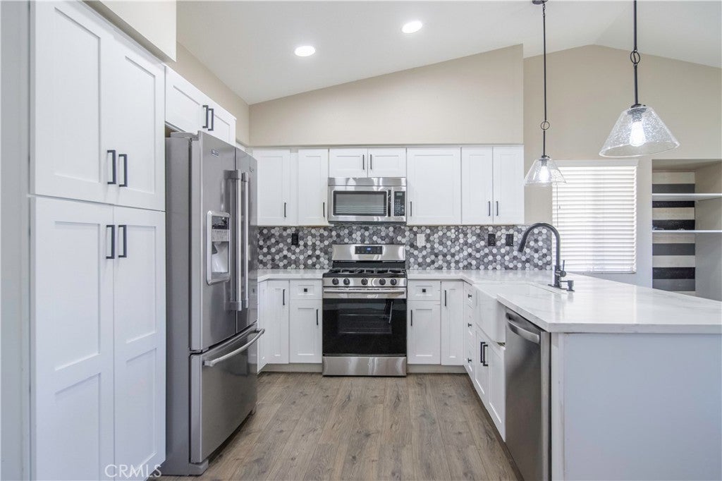 Welcome to this beautifully updated 4-bedroom, 2-bath ranch-style home located in a peaceful and picturesque Hemet neighborhood. With upgraded flooring throughout and high ceilings that create a bright and airy atmosphere, this home offers the perfect blend of comfort and style. The updated kitchen features modern finishes and an open layout ideal for everyday living and entertaining. The spacious primary suite includes an en suite bathroom for added privacy and convenience. The oversized 700 sq. ft. three-car garage also offers ample space for vehicles, storage, or workshop use. Theres even room for your travel trailer, toy hauler, and boat on the oversized driveway and side yard. Step outside to a large backyard—perfect for outdoor living, gardening, or creating your dream retreat. Located in an idyllic neighborhood with a welcoming atmosphere, this home delivers exceptional value and lifestyle and won't be for sale for long!