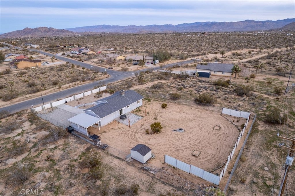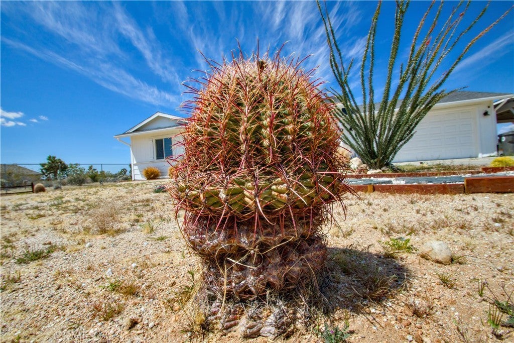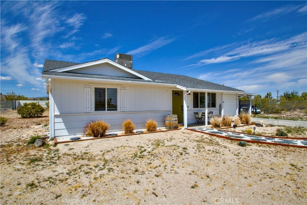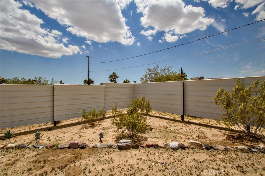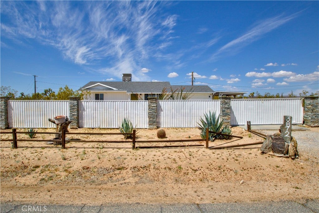 Charming 2-Bedroom Home on Expansive 20,000 Sq. Ft. Lot in Yucca Mesa! Discover this beautifully updated 2-bedroom, 1-bath home situated on a spacious nearly half-acre lot in the sought-after Yucca Mesa area! Boasting 1,008 sq. ft. of living space, this fully fenced property offers both privacy and charm. Step inside to a bright and open living area featuring stylish wood-look tile flooring throughout. The thoughtfully designed open-concept kitchen showcases quartz countertops, sleek cabinetry, a stove, microwave, and ample storage. Both bedrooms are generously sized with large closets, while a sliding glass door leads to a vast backyard, perfect for relaxing or entertaining. The outdoor space is an oasis for enjoyment, complete with a fire pit, horseshoe pit, seating areas, a chicken coop, and a storage shed. The property also includes an attached 2-car garage with direct access plus a carport for additional parking. Recent upgrades include a new septic tank, roof, water heater, and HVAC system (installed in 2020). Whether you're looking for a primary residence, investment property, or vacation home, this gem is a must-see!