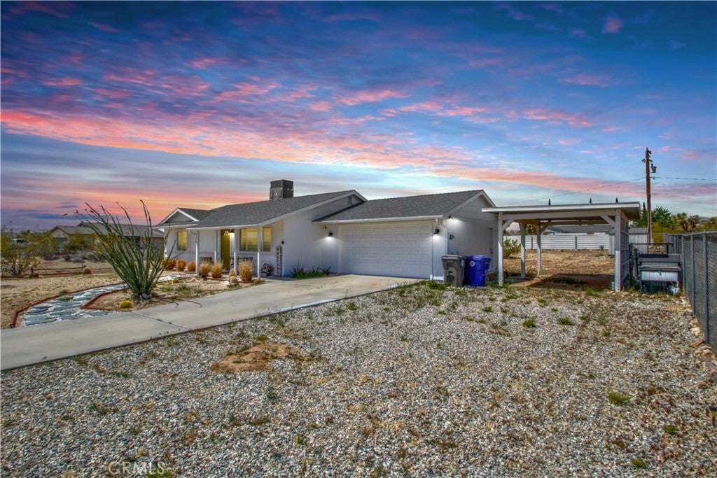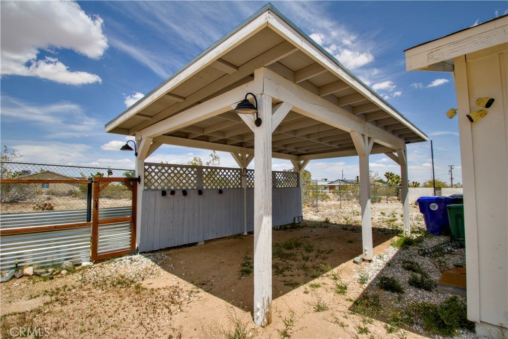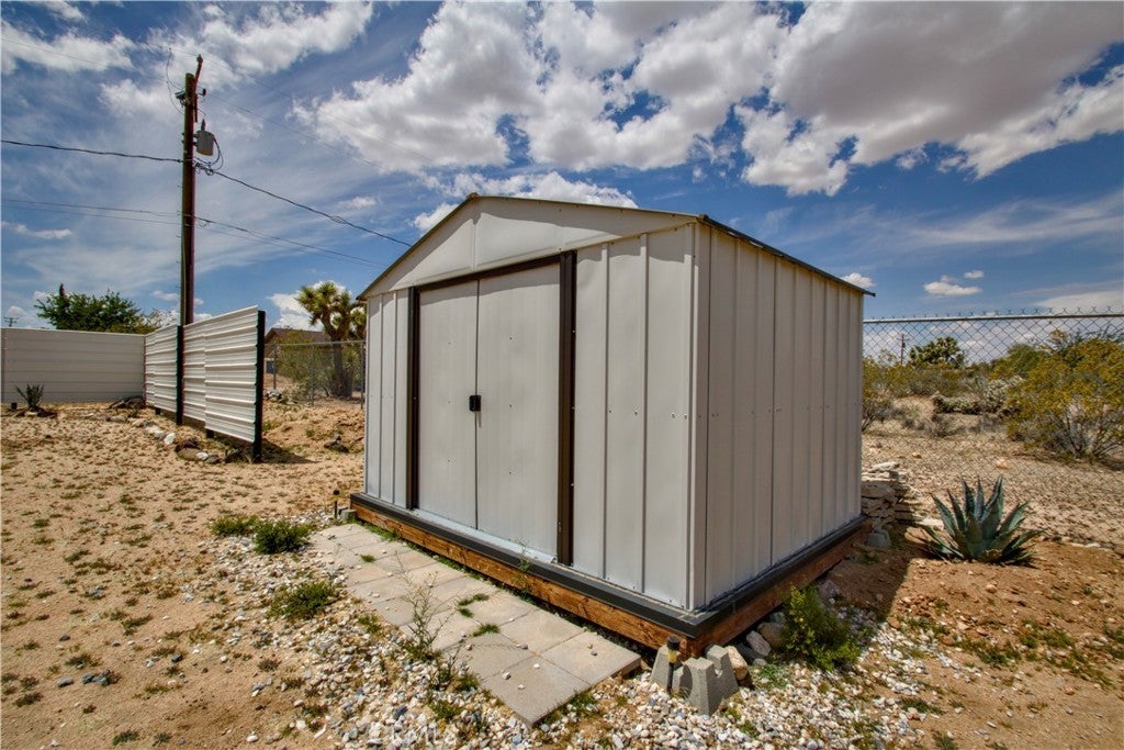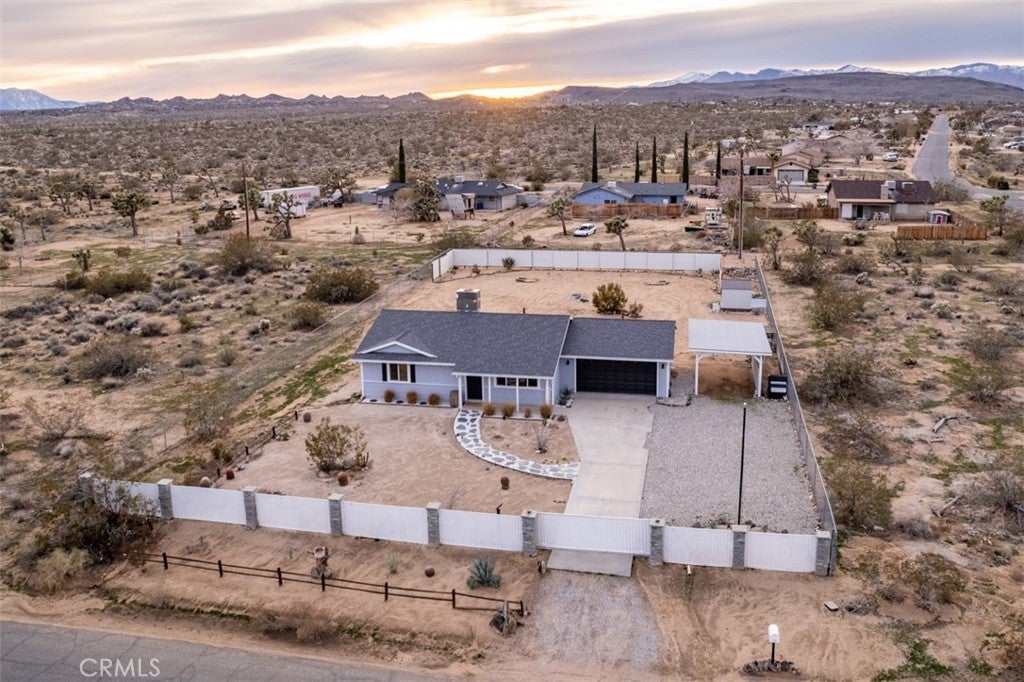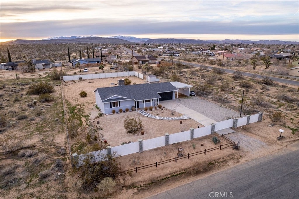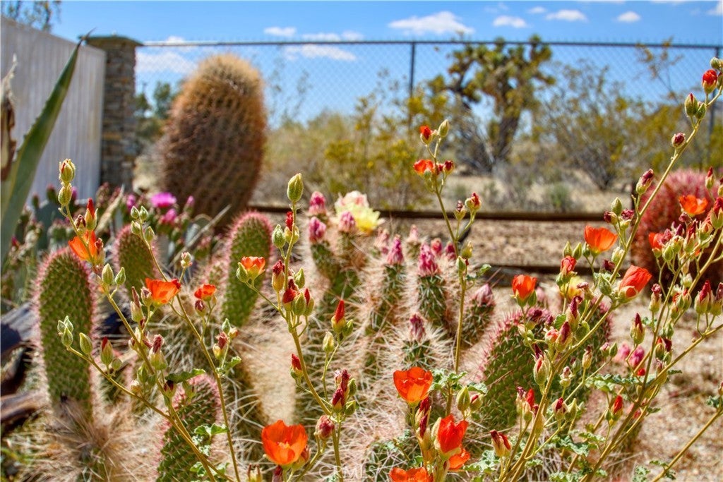 Charming 2-Bedroom Home on Expansive 20,000 Sq. Ft. Lot in Yucca Mesa! Discover this beautifully updated 2-bedroom, 1-bath home situated on a spacious nearly half-acre lot in the sought-after Yucca Mesa area! Boasting 1,008 sq. ft. of living space, this fully fenced property offers both privacy and charm. Step inside to a bright and open living area featuring stylish wood-look tile flooring throughout. The thoughtfully designed open-concept kitchen showcases quartz countertops, sleek cabinetry, a stove, microwave, and ample storage. Both bedrooms are generously sized with large closets, while a sliding glass door leads to a vast backyard, perfect for relaxing or entertaining. The outdoor space is an oasis for enjoyment, complete with a fire pit, horseshoe pit, seating areas, a chicken coop, and a storage shed. The property also includes an attached 2-car garage with direct access plus a carport for additional parking. Recent upgrades include a new septic tank, roof, water heater, and HVAC system (installed in 2020). Whether you're looking for a primary residence, investment property, or vacation home, this gem is a must-see!