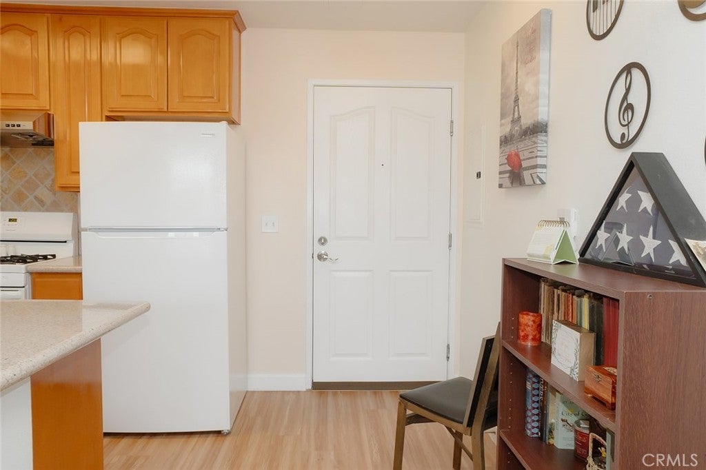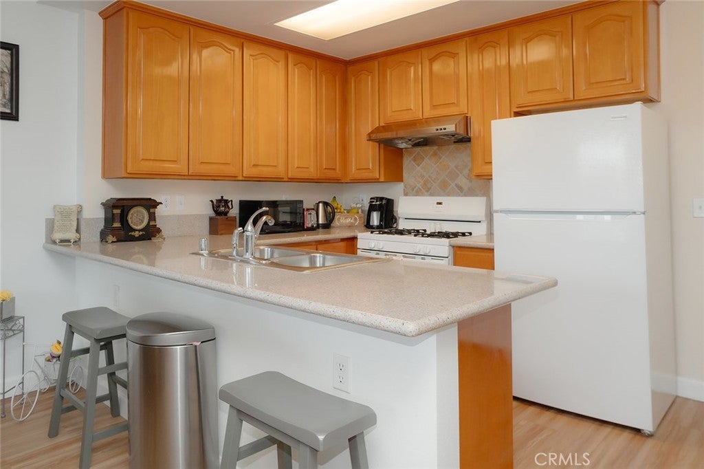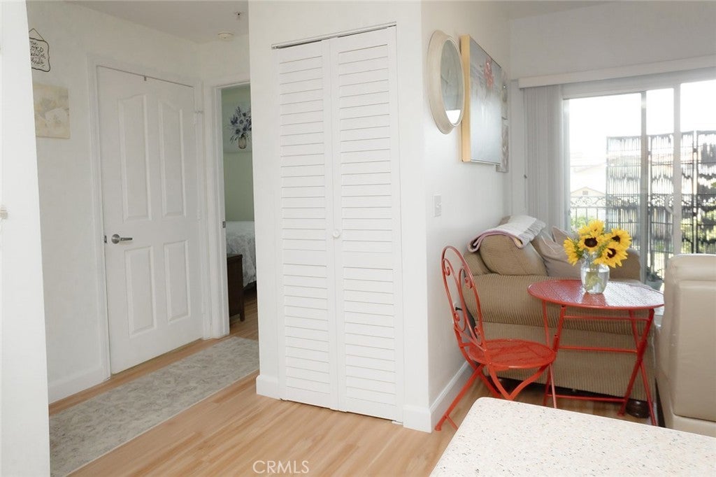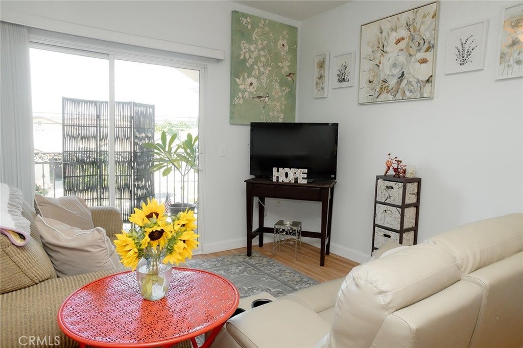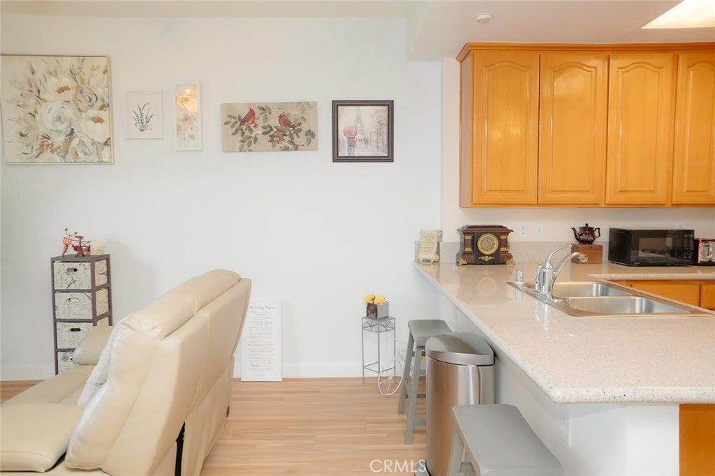 Welcome to this 55+ SENIOR Community with only 62 units that RARELY come available. This beautiful, nicely upgraded 2Bed/1Bath upper corner unit is in the quiet and gated community of “New Man Horizons”. This hidden gem is tucked between a residential neighborhood and the Oasis Shopping Plaza which the community provides secured access into the Plaza for residents (no driving needed to grocery store, banks, restaurants, etc.!) The interior space boasts Smooth High Ceilings, Recessed Lights, Central Heat/Air, Dual Pane Windows and Laminate Flooring. Your Kitchen has custom lacquered cabinetry w/Granite Countertops and large breakfast counter. NEWER Frigidaire Refrigerator, Dishwasher and Gas Oven with a Stainless Hood Vent w/lights, tile backsplash and Stainless Sink. Both bedrooms are good size with raised panel closet doors and faux wood window coverings. Your bathroom is very spacious and is in-between the bedrooms giving additional privacy to each room. The bath area LARGE and has a step-in shower with tile walls, stained glass window, a high-boy, and vanity. The living room has a ceiling fan and slider door to your sitting balcony. Patio deck has ceramic tiles and is large enough for a small table and chairs for morning coffee. A Front-Loading LG Washer/Dryer is included. ***ADDED BONUS***: The unit has fire sprinklers and a built-in emergency response system that notifies First Responders in the event of an emergency inside the unit. HOA amenities include landscaping, grounds maintenance and a clubhouse/recreation room. WATER, TRASH, SEWER & INTERNET ARE PAID BY HOA. Property includes 1-Car covered carport space (that is steps from unit) with large storage cabinets **Space 59** which you can see your Carport Space from your bedroom window. You can go up the exterior stairway to get to unit OR you can enter the glass doors on lower level and take the ELEVATOR upstairs. (See Pic #4 for visual directions). Building has a lovely Foyer entry with community mailboxes and elevator. Complex is fully gated (including the parking and carports) for added security. Adjoined Plaza includes 99 Ranch Grocery Market, coffee shops, eateries, Bank, UPS Store, retail stores and an outdoor seating area by fountain to relax & read in the sunshine, steps from the unit. The landscape is well maintained, with nice walking paths, lush foliage and palm trees. Complex borderlines Orange County and is less than 5 minutes to Cerritos Mall and the 605 & 91 Fwy.