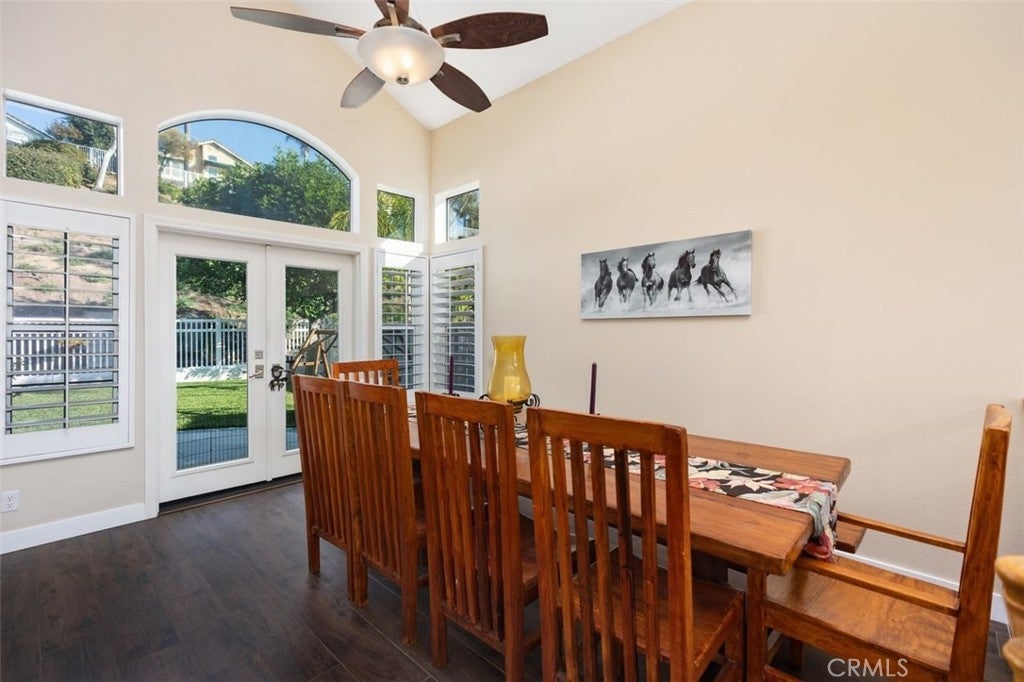 Are you looking for a special updated home in a wonderful community of Portola Hills? This home is the one you want to check out first. Huge Price Reduction!! Owner has lived in here for over 25 years and have cared for this beautiful JM PETERS home. Freshly painted Interior, this is a beautifully updated home where classic charm meets modern comfort. From the moment you enter, you’ll notice the newer floors and the soaring ceilings in the formal living and dining rooms, creating a bright and welcoming space to gather with family and friends. The cozy fireplace adds a perfect touch of character and warmth. Just around the corner, the spacious kitchen offers plenty of space to cook and connect, with stainless steel appliances, ample cabinetry, a casual middle island, and lots of windows brings in natural light. The adjacent inviting family room opens through sliding glass doors to the backyard and large side yards, making it easy to enjoy indoor-outdoor living year-round. Downstairs, you’ll find a versatile main floor bedroom and full bath—great for guests, or a home office, or a quiet retreat. Upstairs, the primary suite offers a peaceful escape with high ceilings, , and a spacious en-suite bath featuring dual vanities, a large walk-in shower, freestanding tub, and two walk-in closets—all lit by soft, stylish lighting. Two additional upstairs bedrooms, including one oversized room, share a generous remodeled full bath. Outside, the covered patio is perfect for relaxing or entertaining while taking in the beautifully landscaped yard . Desirable HOA amenities provide access to fabulous community pool and tennis facilities to enjoy. In addition, access to hiking trails, shopping and great schools make every day feel a little more special. Short distance to Portola Elementary School. This home has. been repiped, Vinyl fence and gates have been added, Newer A/C. system.