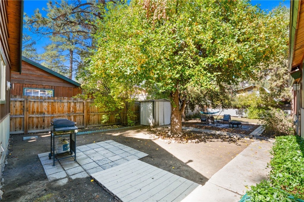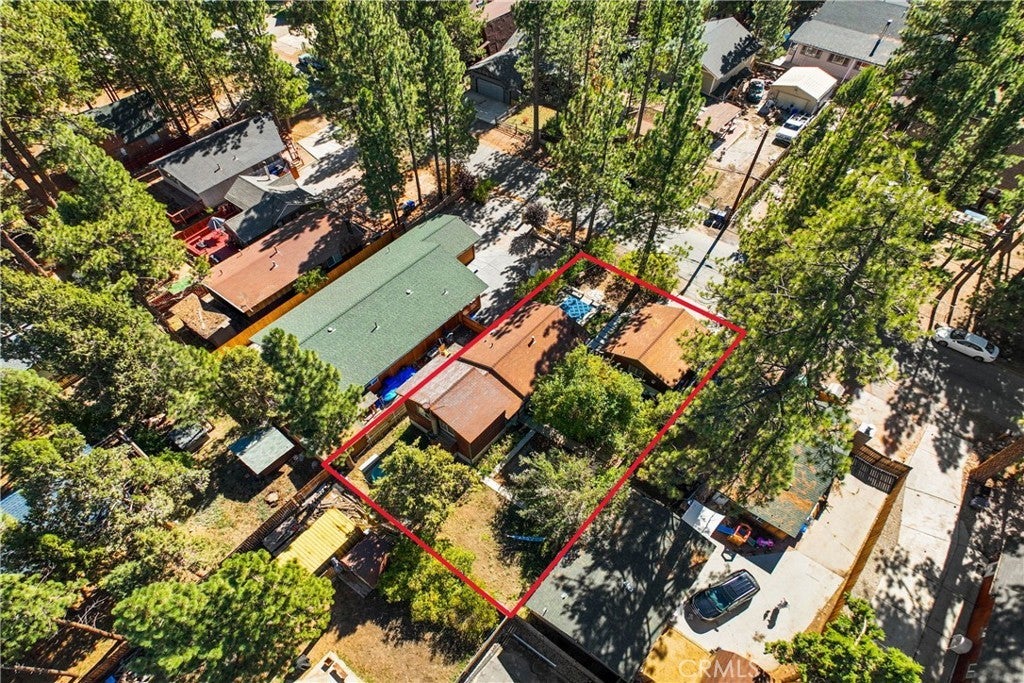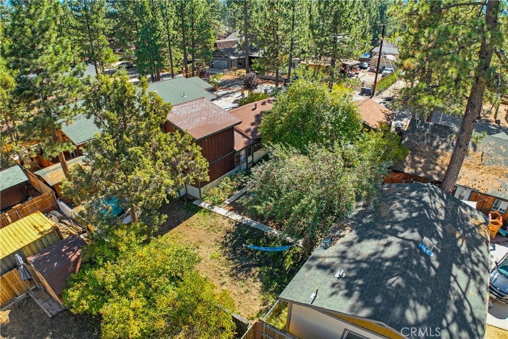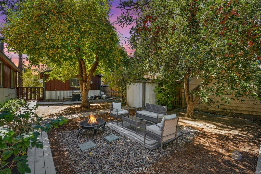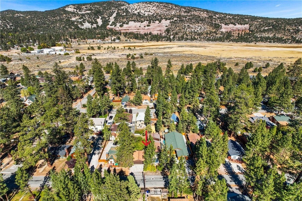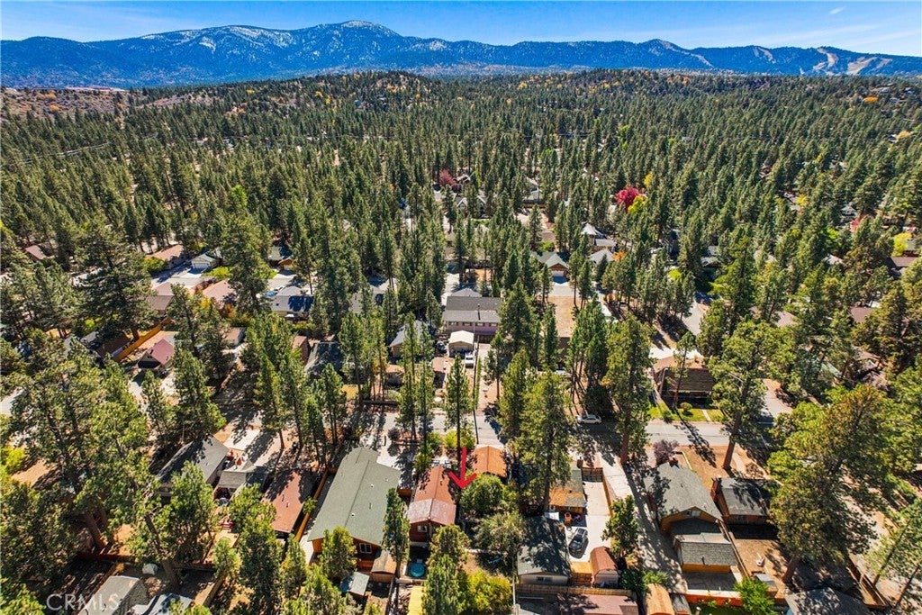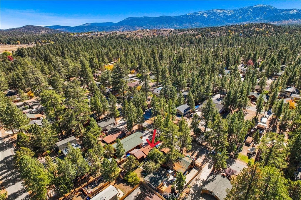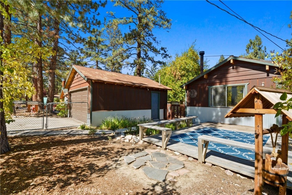 This charming and quaint mountain cabin offers 2 bedrooms, 1 bath, and approximately 1,064 sq ft of living space on a flat and spacious 5,000 sq ft lot with a detached 2-car garage. Surrounded by mature pine trees and natural beauty, the setting is serene and picturesque, perfect for those seeking a peaceful getaway, a second home, or a smart investment opportunity such as an Airbnb or short-term rental. As you enter the gated front yard, you’re greeted by custom walkways, lush greenery, and an expansive front porch with built-in benches—an inviting space to relax and take in the crisp mountain air. Inside, the cabin’s warm and rustic character shines through with wood-beamed ceilings, tongue-and-groove paneling, and two cozy wood-burning stoves—one in the dining area and another framed by a striking brick fireplace in the family room, creating inviting spaces to gather and unwind. The kitchen features raised-panel maple cabinets, easy-care countertops, and a custom tile backsplash that adds charm and color, seamlessly opening to the dining area for comfortable gatherings. Downstairs, you’ll find a cozy bedroom and a full bath with a light wood vanity, integrated sink, and designer tile tub-shower surround, blending rustic appeal with modern function. Upstairs, the vaulted wood-beam ceilings continue in the peaceful second bedroom, where large windows frame tranquil treetop views and a bold accent wall adds a touch of contemporary flair. Out back, the fully fenced yard offers the perfect outdoor retreat, complete with mature trees that provide shade and privacy, a sitting area ideal for entertaining, and plenty of open space for pets, kids, or gardening. The property features an herb garden with mint, oregano, sage, rosemary, and lavender, along with fruiting raspberry bushes and two apple trees, adding to the home’s mountain charm. A hammock invites lazy afternoons beneath the trees, while the spa pad provides a relaxing space to unwind under the stars. The detached garage offers ample storage, workshop potential, or even the opportunity to convert it into an ADU for added income or guest space. Located just minutes from Big Bear Lake, hiking trails, and local shops and dining, this home combines rustic character, comfort, and versatility—capturing the true essence of mountain living.