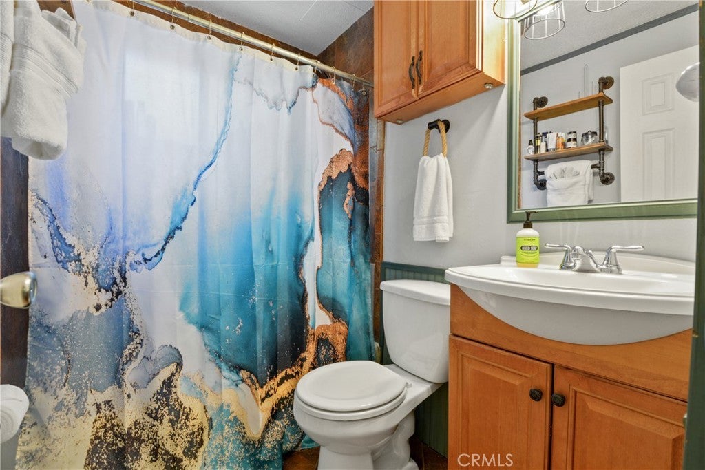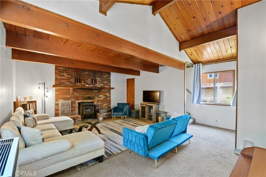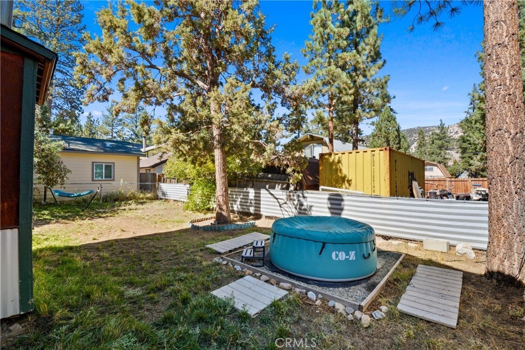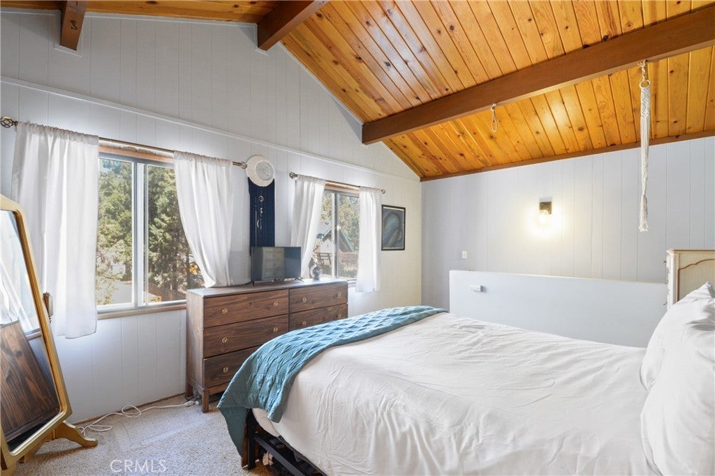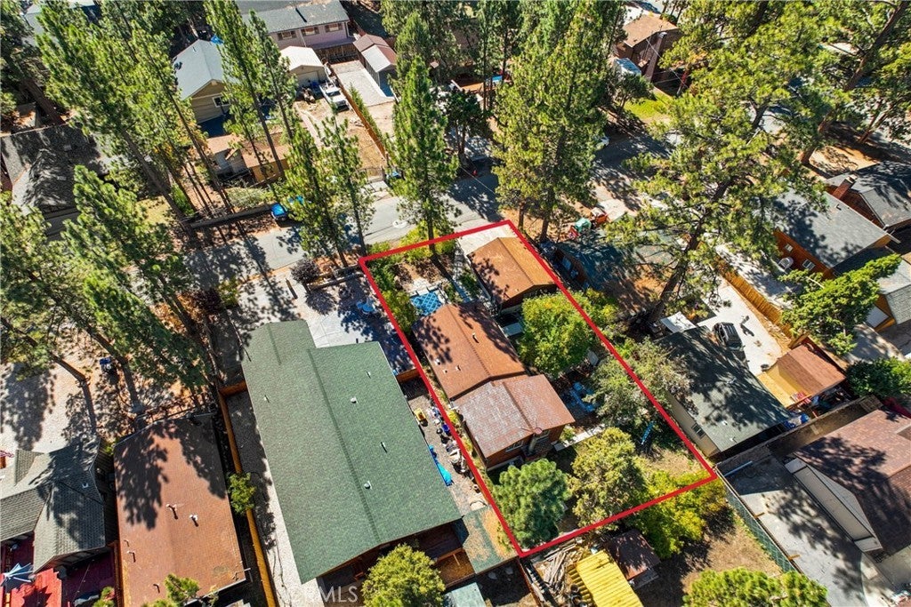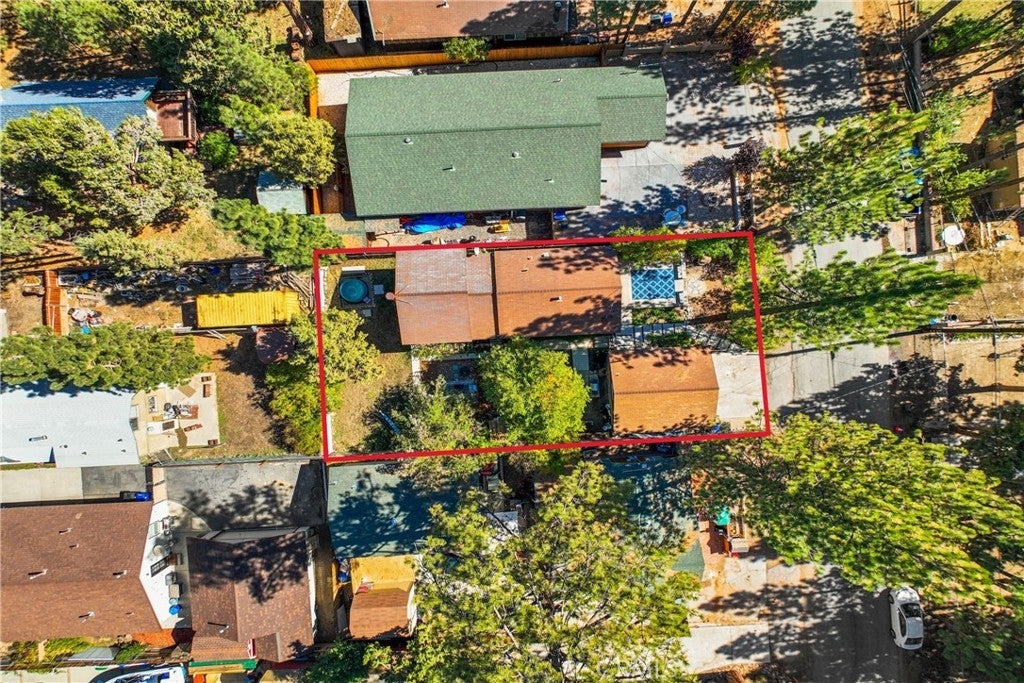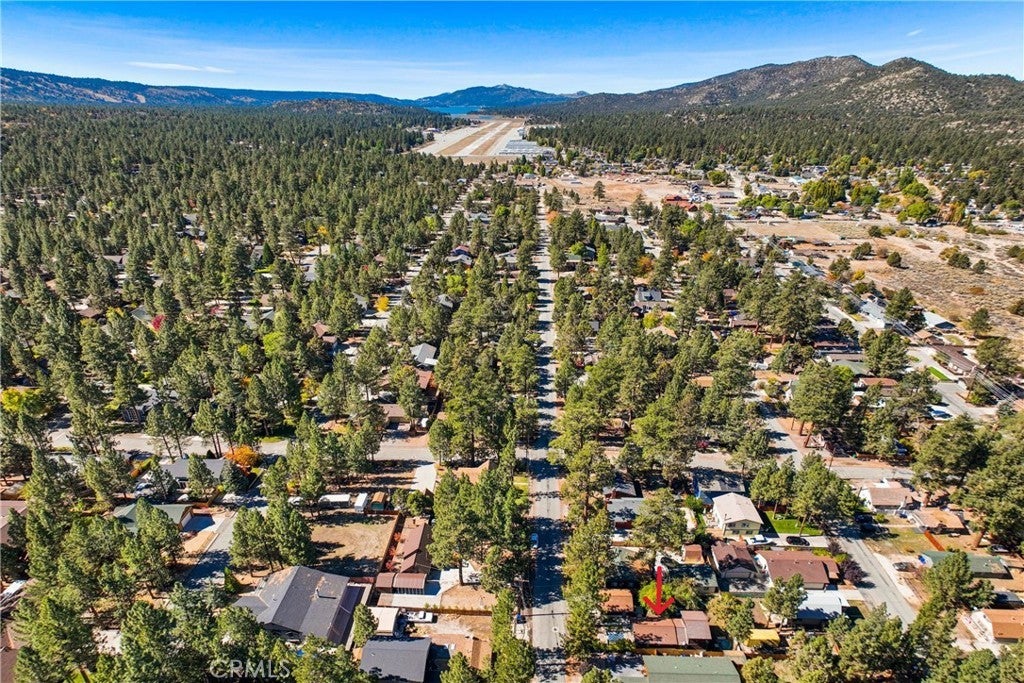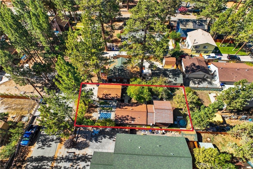 This charming and quaint mountain cabin offers 2 bedrooms, 1 bath, and approximately 1,064 sq ft of living space on a flat and spacious 5,000 sq ft lot with a detached 2-car garage. Surrounded by mature pine trees and natural beauty, the setting is serene and picturesque, perfect for those seeking a peaceful getaway, a second home, or a smart investment opportunity such as an Airbnb or short-term rental. As you enter the gated front yard, you’re greeted by custom walkways, lush greenery, and an expansive front porch with built-in benches—an inviting space to relax and take in the crisp mountain air. Inside, the cabin’s warm and rustic character shines through with wood-beamed ceilings, tongue-and-groove paneling, and two cozy wood-burning stoves—one in the dining area and another framed by a striking brick fireplace in the family room, creating inviting spaces to gather and unwind. The kitchen features raised-panel maple cabinets, easy-care countertops, and a custom tile backsplash that adds charm and color, seamlessly opening to the dining area for comfortable gatherings. Downstairs, you’ll find a cozy bedroom and a full bath with a light wood vanity, integrated sink, and designer tile tub-shower surround, blending rustic appeal with modern function. Upstairs, the vaulted wood-beam ceilings continue in the peaceful second bedroom, where large windows frame tranquil treetop views and a bold accent wall adds a touch of contemporary flair. Out back, the fully fenced yard offers the perfect outdoor retreat, complete with mature trees that provide shade and privacy, a sitting area ideal for entertaining, and plenty of open space for pets, kids, or gardening. The property features an herb garden with mint, oregano, sage, rosemary, and lavender, along with fruiting raspberry bushes and two apple trees, adding to the home’s mountain charm. A hammock invites lazy afternoons beneath the trees, while the spa pad provides a relaxing space to unwind under the stars. The detached garage offers ample storage, workshop potential, or even the opportunity to convert it into an ADU for added income or guest space. Located just minutes from Big Bear Lake, hiking trails, and local shops and dining, this home combines rustic character, comfort, and versatility—capturing the true essence of mountain living.