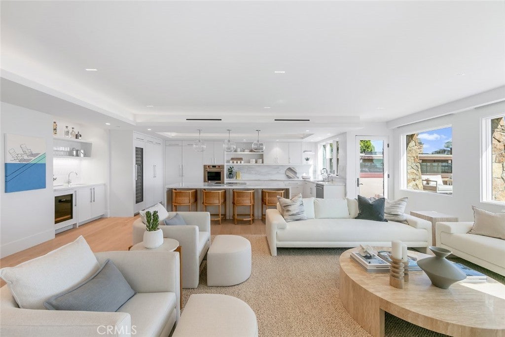 Few places along the California coastline are as coveted or as discreet as Breakers Drive. Tucked behind private gates above the sands of Big Corona Beach, this rare oceanfront enclave is known to only a fortunate few, and opportunities to purchase here are exceedingly limited. Introducing 3130 Breakers Drive, EXTENSIVELY RECONSTRUCTED, REIMAGINED AND NEVER LIVED IN POST RENOVATION. This OCEANFRONT RESIDENCE harmonizes architectural refinement with an effortless coastal lifestyle in the heart of Corona del Mar. TAKEN DOWN TO THE STUDS and EXPANDED under the direction of DMA Designs with curated interiors by Sandra Vila of SVDH Studio, the home showcases sweeping ocean, coastline and Newport Harbor jetty views from nearly every level, including the kitchen, family room, dining area, oceanfront terraces and private primary suite. An inviting entry with stone flooring and tailored paneling sets a sophisticated tone, accented by designer lighting and concealed storage for beach essentials. The open-concept kitchen captures dramatic blue-water vistas and features custom cabinetry, polished Calacatta marble, Wolf induction range and convection oven, paneled Sub-Zero refrigeration and wine storage and a large island designed for both daily living and entertaining. The adjoining family room is finished with French oak flooring, architectural wood accents and invisible surround sound. This space opens to an elevated Ipe wood viewing deck that appears to float above the shoreline and provides an unforgettable setting for sunsets and ocean breezes. The upper level is dedicated to the ocean-view primary suite, a private retreat with exposed beams, bifolding doors to a private terrace and a spa-caliber bath wrapped in Calacatta marble with an oversized glass-enclosed shower. The lower level offers two guest bedrooms with built-in details and a beautifully appointed bath. Modern comfort is elevated through a Savant smart-home system that controls lighting, sound, climate and shades, along with all-new mechanical, plumbing and electrical systems. An elevator services all levels and the property includes a garage plus carport parking. Private beach access is exclusive to residents of this gated community. With its premier oceanfront setting and refined coastal design, 3130 Breakers Drive presents a rare offering along one of Southern California’s most iconic stretches of coastline.