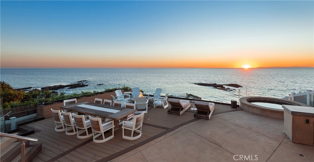 Perched above the pristine Totuava Beach with private steps leading directly to the sand, this gated estate embodies the pinnacle of coastal Orange County luxury. Situated on a rare 21,000-square-foot lot, the property features a newly remodeled main residence and a separate guest house, both designed to maximize breathtaking, unobstructed views of the Pacific Ocean, Catalina Island, and vibrant sunsets. The main residence offers three spacious bedrooms, an open-concept layout, and walls of glass that seamlessly blend indoor and outdoor living, allowing the striking blue waters to serve as your everyday backdrop. Designer finishes elevate every corner, creating a sophisticated yet inviting retreat. The detached guest house is equally impressive, boasting its own private entrance, a full kitchenette, one bedroom, and a beautifully appointed full bathroom. Crafted with the same attention to detail as the main residence, it offers privacy and comfort for guests or extended family. What truly sets this estate apart is the private beach bungalow nestled directly on the sand. Complete with running water and electricity, this one-of-a-kind space is perfect for unwinding after a day by the ocean or entertaining with ease. Outdoor living is a dream with a fire pit, spa, built-in barbecue area, and multiple seating areas designed for gatherings of all sizes. Ample parking is a rare treasure on Laguna Beach's coastline, but this property exceeds expectations with a four car garage and a massive motor court accommodating up to six additional vehicles. From the panoramic views to the luxurious amenities, every detail of this property has been thoughtfully curated for effortless entertaining and serene beachfront living.