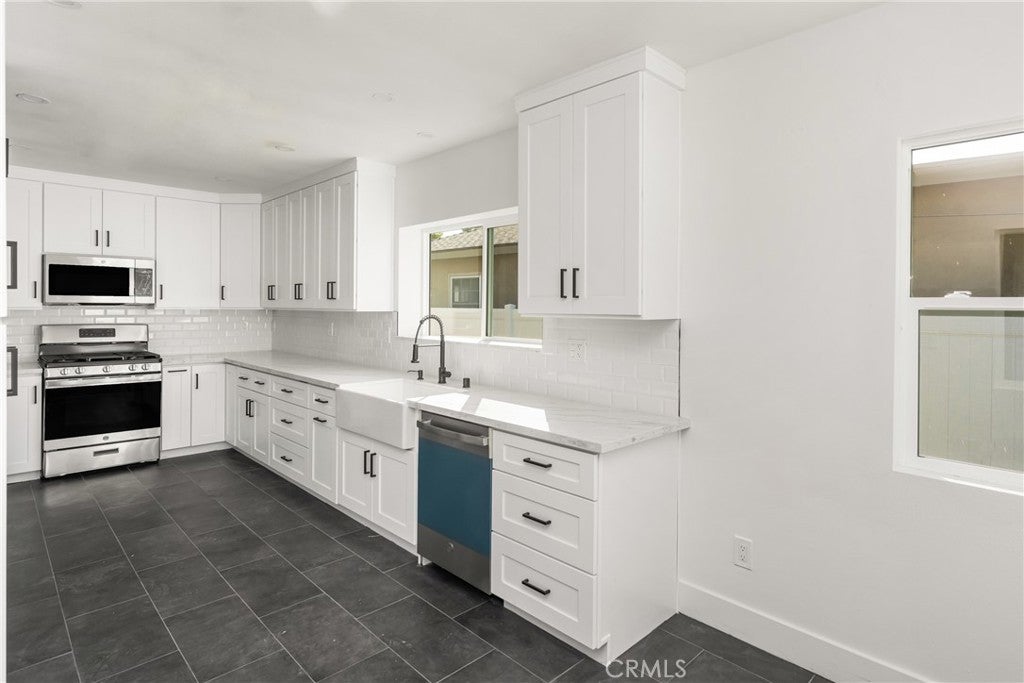 MAJOR PRICE REDUCTION! Welcome to your new, fully renovated Long Beach home! As you walk in you're greeted by a light filled open floor plan with new windows and doors, fresh paint, and wood flooring. The generously sized living room features a beautiful picture window and cozy fireplace. The oversized kitchen features all new shaker cabinets, beautiful quartz counters, white subway tile backsplash, and new stainless steel appliances. There are two large bedrooms. The bathroom feature new floors, new tile shower surround, new toilet, and new vanity with two sinks. Additional upgrades include all new energy efficient dual pane windows, brand new HVAC system, new tankless water heater, and upgraded 200-amp electrical panel. The house has been completely rewired and has new copper piping throughout. The exterior features a new roof, refreshed landscaping with new irrigation system, and new vinyl fencing with street and alley access providing parking for multiple cars. Hurry, this one won’t last long!