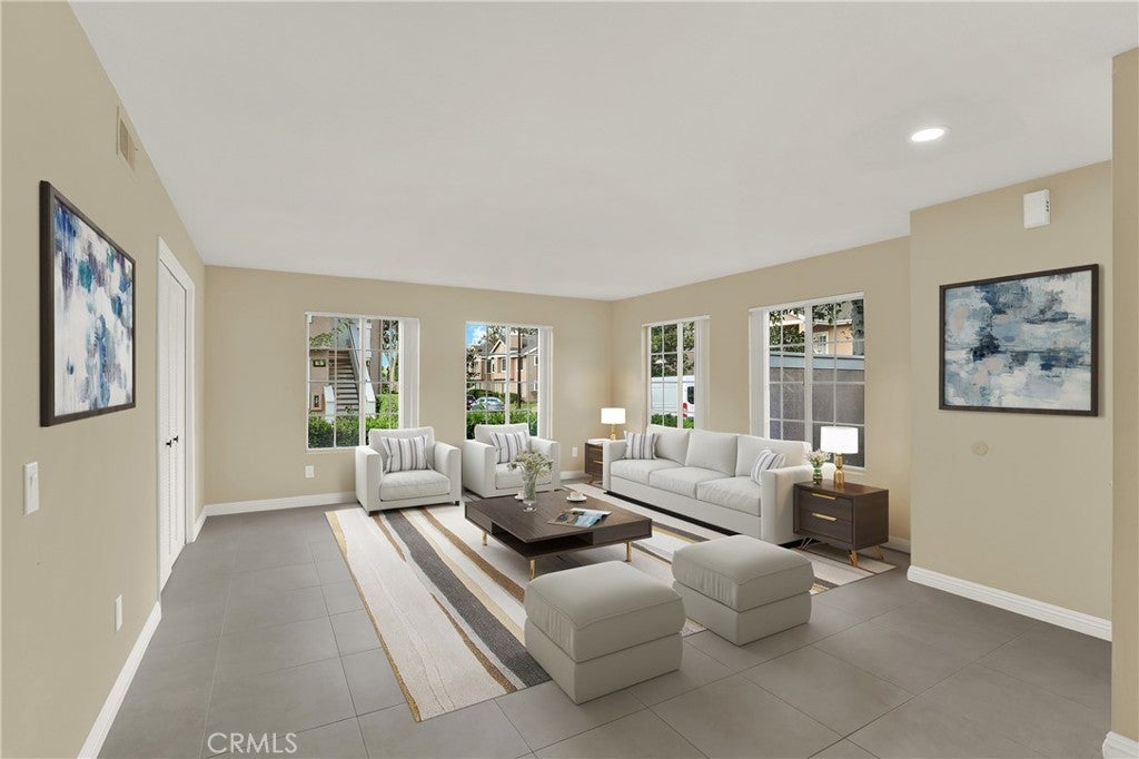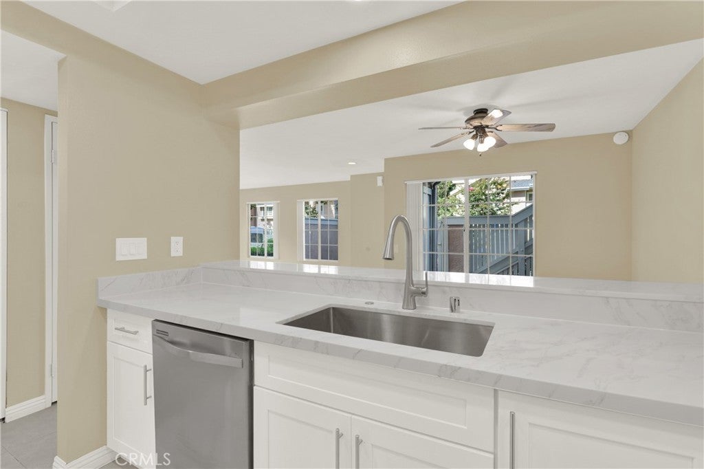 A wonderful opportunity to live in Irvine's Woodbridge community. This beautiful condo has 2 bedrooms, 1.25 bathrooms, approx. 1,022, located on the first floor. Kitchen has been completely remodeled. Brand new cabinets/vanity and quartz countertops in kitchen/bathroom/primary bedroom. Large primary bedroom with walk-in closet and vanity with sink. Second bedroom has floor to ceiling mirror closet doors. It can also be used as an office/den/playroom. New recessed lights. Washer/Dryer hookup inside. Large storage by the front patio. Outlets, Switches, and Vertical Blinds were just replaced less than 3 years ago. Conveniently located near schools (Woodbridge Highschool), numerous shopping centers, supermarkets, restaurants, banks, parks (Windjammer Park, Mike Ward Community Park), Woodbridge South Lake, and more. Easy access to the 405 and 5 Freeway and 261/133 Toll Roads.