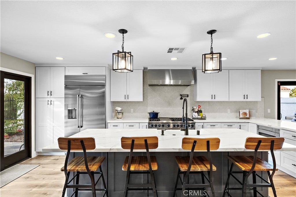 Welcome to 31841 Via Puntero, a stunning reimagining of modern luxury nestled in one of San Juan Capistrano’s most desirable neighborhoods of Los Corrales neighborhood. The home spans 2,136 square feet of refined living space on an impressive 10,042 square foot lot, offering a perfect blend of sophistication, comfort, and California-Spanish charm. Every inch of this home has been thoughtfully redesigned, showcasing an elevated attention to detail and timeless design. Step inside and you’re immediately met with a bright, open floor plan that radiates warmth and natural light through brand-new windows and doors. The flow of the space is effortless, creating a harmonious balance between functionality and beauty. At the heart of the home lies the fully upgraded kitchen, an entertainer’s dream flowing from interior to exterior seamlessly. Outfitted with custom cabinetry, high-end finishes, and a professional-grade Viking range, this space is both inspiring and practical. Whether you’re preparing a casual meal or hosting a dinner party, the kitchen’s bespoke design ensures every moment feels special. Throughout the home you will find new flooring, designer lighting, and modern architectural touches which create a cohesive and inviting atmosphere. Each room has been curated to feel open yet intimate, refined yet comfortable. The primary suite serves as a peaceful retreat, complemented by a beautifully remodeled bathroom that feels like a private spa. Step outside and experience your own private oasis. Come experience Los Corrales with No HOA. The expansive yard offers endless potential for outdoor living, dining, and entertaining. Whether under the stars or in the sunshine, this tranquil setting is perfect for hosting gatherings or simply enjoying the serenity that surrounds you.