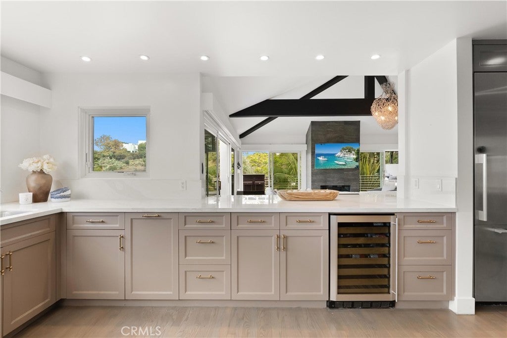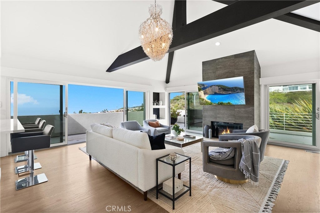 Nestled within a serene, private cul-de-sac in one of Laguna Beach’s most coveted neighborhoods, this exquisite 4-bedroom, 3.5-bathroom residence offers sweeping ocean views and the perfect blend of timeless design and modern luxury. The interiors are graced with custom lighting from Van Egmond, a renowned Dutch designer celebrated for sculptural artistry and craftsmanship. Recently replaced Anderson windows and doors flood the home with natural light, while $50,000 in electric blinds (all under transferable warranty) provide convenience and comfort throughout. The kitchen has been thoughtfully updated with new counters, stove, faucet, and sink, complemented by a premium Tynet 13-stage water filtration system. Additional upgrades include a new water heater, refinished upstairs floors, and other modern enhancements that elevate daily living. The primary suite is a serene retreat featuring a steam room and breathtaking ocean vistas. Modern comforts include a Vivint security system (fully paid, optional monitoring) and meticulously maintained landscaping. Outdoors, the property is a private sanctuary with 18 fruit trees, a Jacuzzi, and a custom art installation, all framed by a large, extended gated driveway. Every detail of 766 Pelican Drive harmonizes elegance, innovation, and coastal living for a truly one-of-a-kind Laguna Beach experience.
