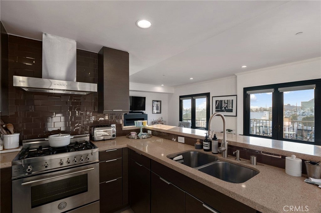 Experience the Essence of West Hollywood Living. Step into a dream PENTHOUSE retreat where style meets sophistication. Perched on the top level of the glamorous building, this light-filled, SINGLE-LEVEL, front-facing residence on the 4th floor offers unmatched privacy with only one shared wall and panoramic views. Just moments from the allure of Melrose Place, you’ll find yourself surrounded by high-fashion boutiques, the vibrant Sunday Farmers Market, quaint cafes and the city's most iconic destinations. The building itself radiates classic Hollywood charm, blending timeless elegance with modern safety and serenity. Inside, a spacious living area welcomes you with walls of light streaming through French doors, opening to balconies showcasing breathtaking vistas of sparkling city lights and the iconic Hollywood Hills—a view as enchanting as the city it embraces. The kitchen is a true chef’s delight, boasting top-of-the-line appliances that combine both form, function with a view of the city. A dedicated dining area perfectly complements the culinary space, setting the stage for unforgettable gatherings. When the celebrations wind down, retreat to the expansive master bedroom, a sanctuary of comfort and calm, complete with a luxurious ensuite bathroom designed for ultimate relaxation. Two additional bedrooms provide ample room for family or guests, each offering its own blend of warmth and privacy. For added convenience, this residence features an individual laundry room with a brand-new washer and dryer—adding a touch of practicality to this luxurious home. Convenience meets exclusivity with two private, secure parking spots in a subterranean garage, and a secure elevator that takes you directly to the penthouse on the 4th level for ultimate ease and privacy. Generous guest parking ensures visitors always feel welcome. Best of all, the building’s private rooftop garden—on the same level as the penthouse—is a serene oasis. Complete with gorgeous chaise lounges, this open-air retreat invites you to bask in the sun, unwind in comfort, or savor the brilliance of sunsets over the Hollywood skyline. This penthouse is more than a home; it’s a lifestyle—a light-filled haven that’s a must-see for those young at heart and a must-have for those who embrace life with discerning enthusiasm.