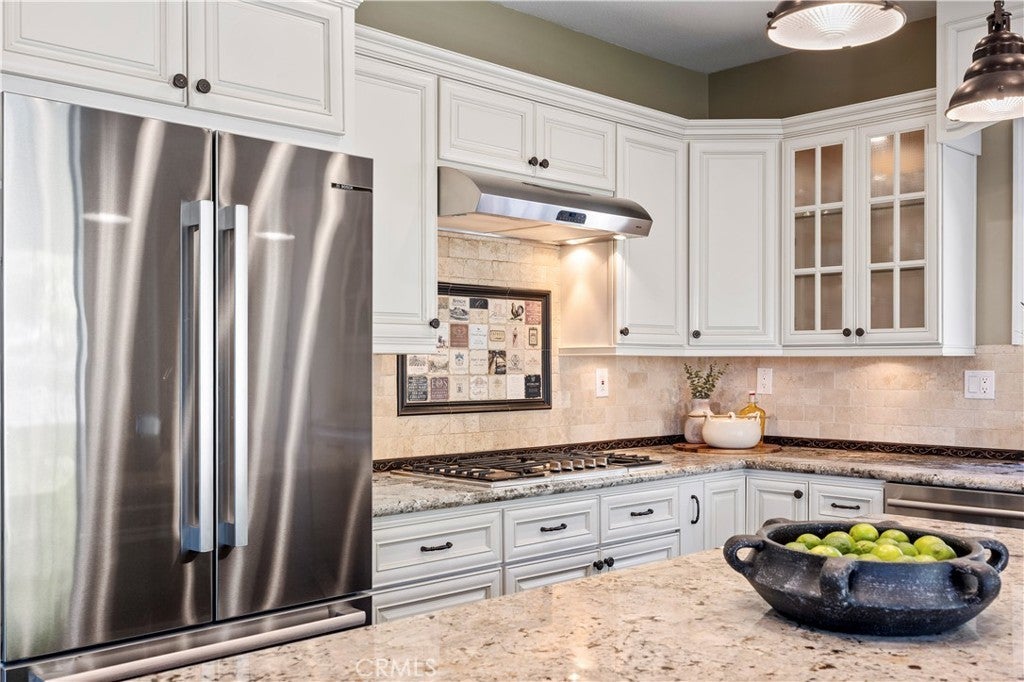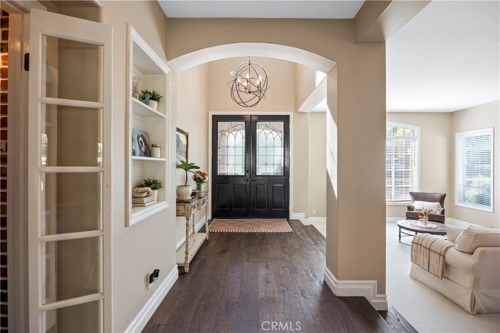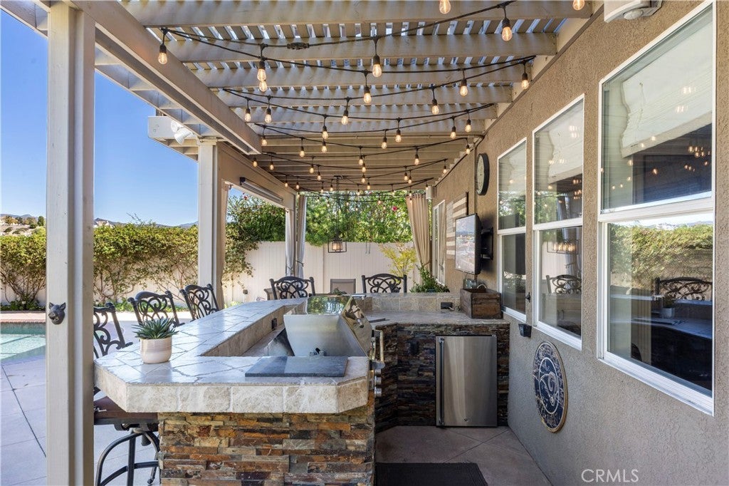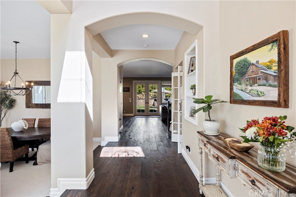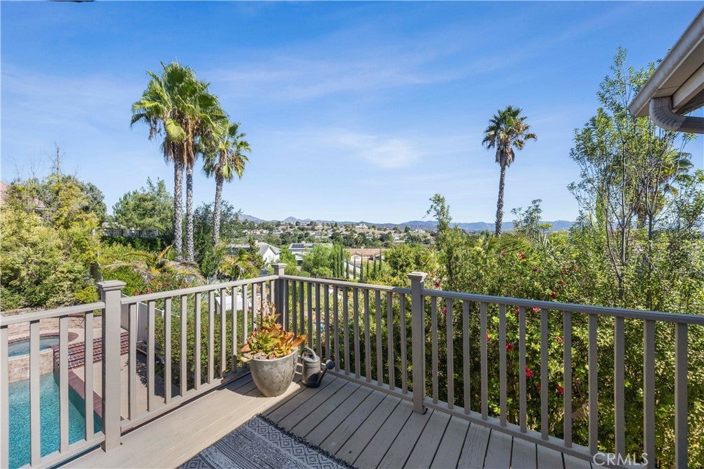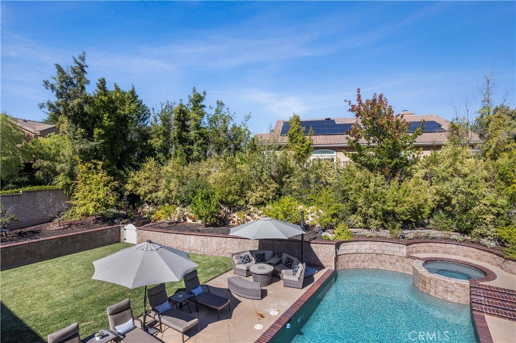 Welcome to your private resort-style retreat! This stunning 5-bedroom + huge bonus room,3 full bath home is located in the highly desirable community of Stonecliffe. Situated on a beautifully manicured corner lot with incredible curb appeal and beams with pride of owndership. Double door entry welcomes you into an inviting, light-filled interior with high ceilings and an open layout. The expansive kitchen is a chef's dream, featuring a large center island, abundant storage, custom cabinetry, and a spacious eating area that opens to the family room, perfect for both everyday living and entertaining. Enjoy cozy evenings by the fireplace or host memorable gatherings with ease. This home also features a main-floor bedroom and a full bath, ideal for guest or multigenerational living. The formal dining room boasts French doors that open to a charming garden patio, while the wine room also adds a special touch. Upstairs, the luxurious primary suite features a large private balcony with beautiful, panoramic views. The additional bedrooms are spacious and a large bonus room provides endless possibilities-game room, home theater, or home office. Hardwood floors, French doors, custom built-ins, neutral plush carpet, several fruit trees, and incredible attention to detail await. Step outside to your resort-style yard, an entertainer's paradise with a sparkling pool and spa, built-in BBQ & bar, plenty of lounging & dining areas, and still a large grass area. Whether you're hosting summer BBQs or enjoying peaceful nights at home, this dream yard has it all. Truly a rare opportunity to own a home that offers luxury, comfort & lifestyle all in one perfect package. No mello roos, sought-after schools, and hiking/biking trails nearby.