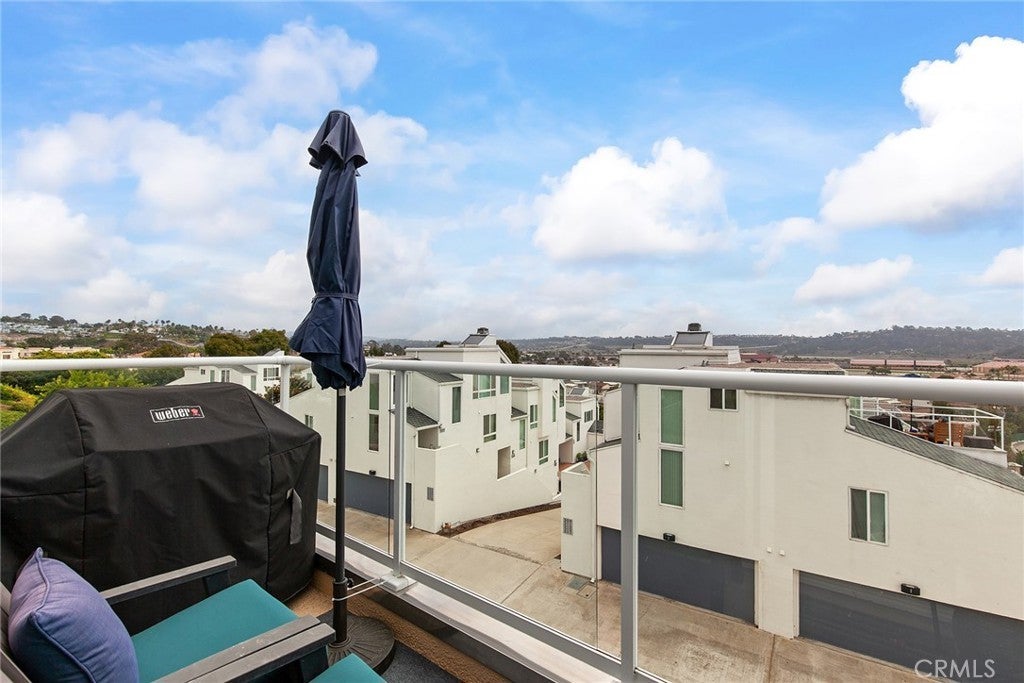 Welcome home to this gorgeous, light, bright and turn-key, end-unit townhome! Featuring expansive 180-degree panoramic views, spanning from the lush hillsides eastward, to the Del Mar Racetrack southward, and finally to the breathtaking white-water ocean vistas of “Dog’s Beach” westward. The open living room is engulfed in natural light with large windows and skylights, complemented by a cozy fireplace. The adjacent dining area offers equally majestic views and opens onto a sitting balcony perfect for enjoying ocean views and breezes. The gourmet kitchen features granite counters, a Bosch dishwasher, KitchenAid appliances, and recessed lighting, all overlooking the hills and racetrack. Downstairs, the primary bedroom features plantation shutters, with a walk-in closet and a primary bath adorned in crema marfil marble with a glass block walk-in shower. A second ensuite bedroom features oak wood floors, plantation shutters, and an updated bathroom with crema marfil marble. Additional highlights include a detached 2-car garage with washer/dryer, immediate access to a pool, spa, and exercise room, and a convenient lock-and-leave design. Situated in the esteemed Saratoga West community, this townhome offers an exceptional location just steps from the beach, Cedros design district, restaurants, library, shops, and renowned Solana Beach schools. If you are looking for luxury, convenience and a quintessential San Diego lifestyle, this is it!